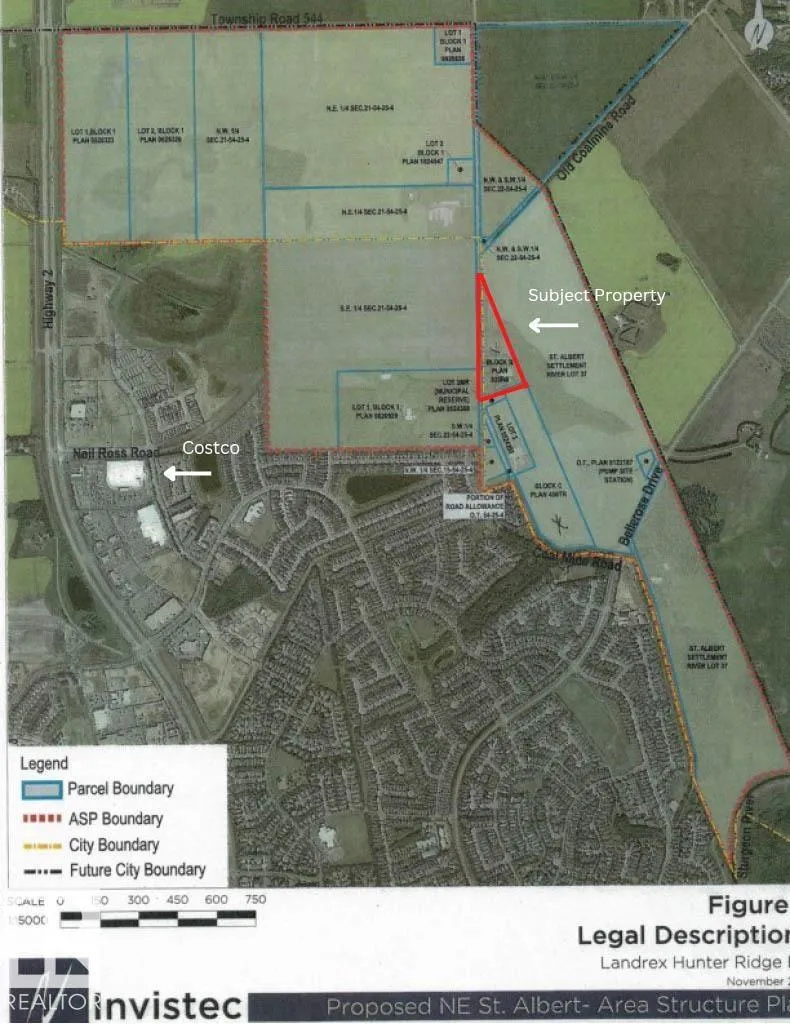 Recently Annexed Acreage in NE St. Albert This heavily treed 9.21-acre property offers a rare chance to enjoy country living right within city limits. Located in northeast St. Albert, just 1 km east of Costco (as the crow flies), the land combines privacy, space, and convenience.The property includes an older home, multiple outbuildings, and two large shops measuring 24 x 46 and 26 x 60. Full services are already in place, along with a spacious cleared building site surrounded by mature trees, ideal for creating your dream home.Zoning allows for several discretionary uses, including a home-based business, making this a flexible option for both personal and investment use.Thereâs also an added bonus for investors: the property currently generates $2,500 per month in income.Situated across from Erin Ridge North and just one block from established development, this location offers strong future potential while still delivering a quiet, private setting (id:27476)