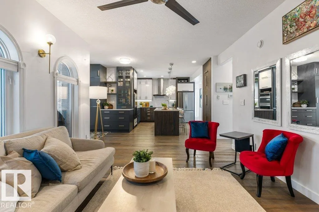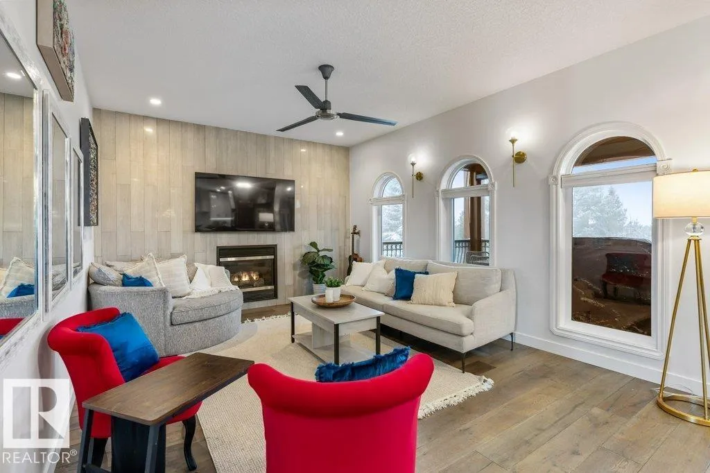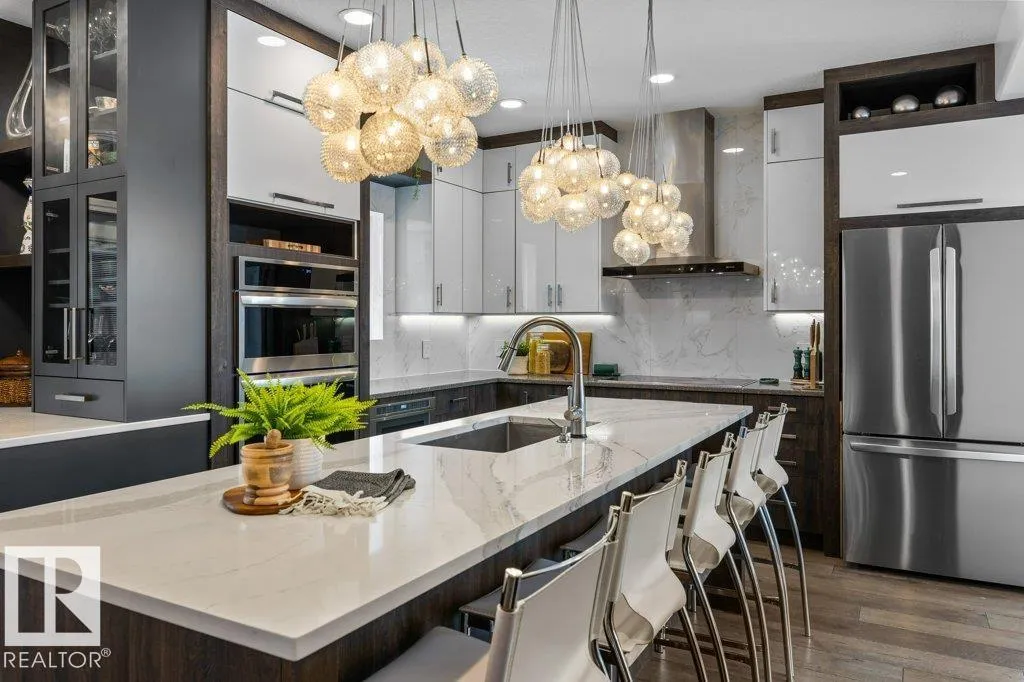 Welcome to Kingswood, where this stunning 2-storey home is designed for effortless, elevated living. Natural light fills the main floor, highlighting a gourmet kitchen with quartz counters, high-end appliances and a custom coffee bar, seamlessly flowing into the formal living and dining areas, cozy family room and main floor den. Step outside to the motorized screened deck, perfect for year-round enjoyment. Start mornings with coffee and unwind with sunset views from one of two decks. An ELEVATOR offers convenient access to every level. Upstairs features 4 spacious bedrooms, including a beautiful primary suite with ensuite, custom walk-in closet and private deck with city views. The fully finished walkout basement is built for entertaining with a rec room, wet bar and steam shower, leading to a covered patio and professionally landscaped yard with irrigation and firepit. Complete with main floor laundry, oversized double attached garage, dog run, new doors and permanent lighting. A rare find in Kingswood! (id:27476)