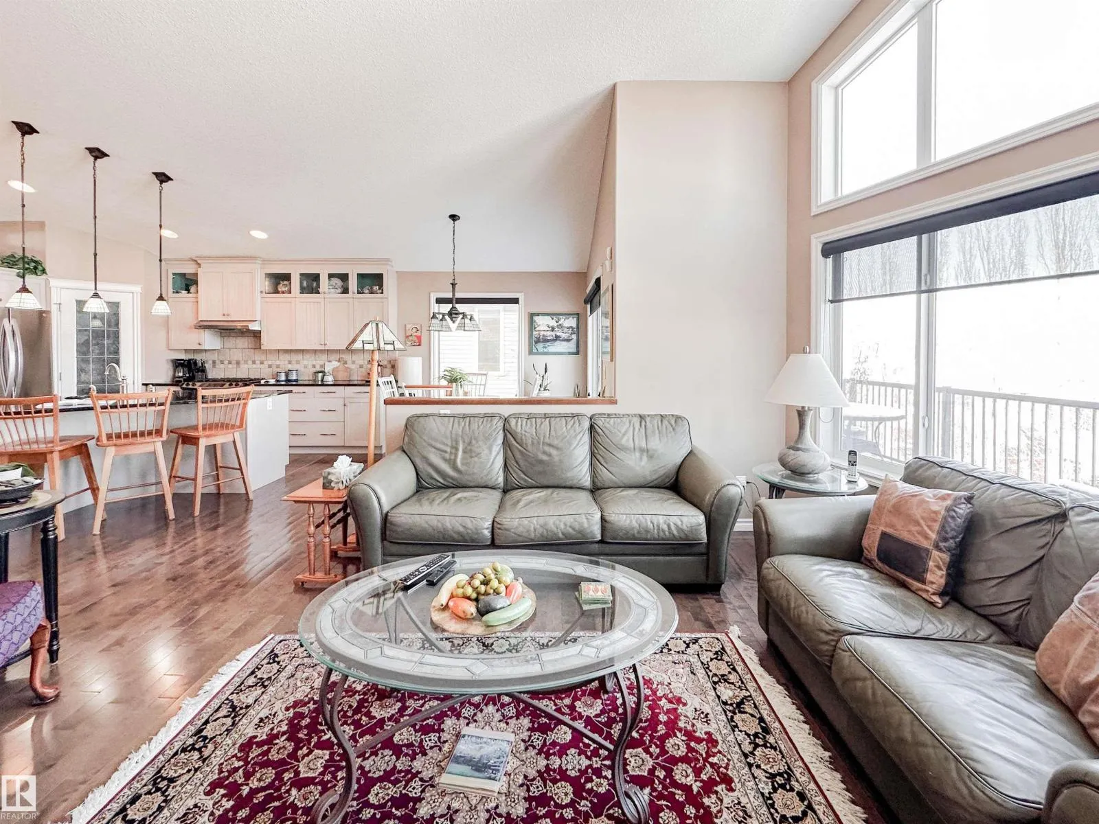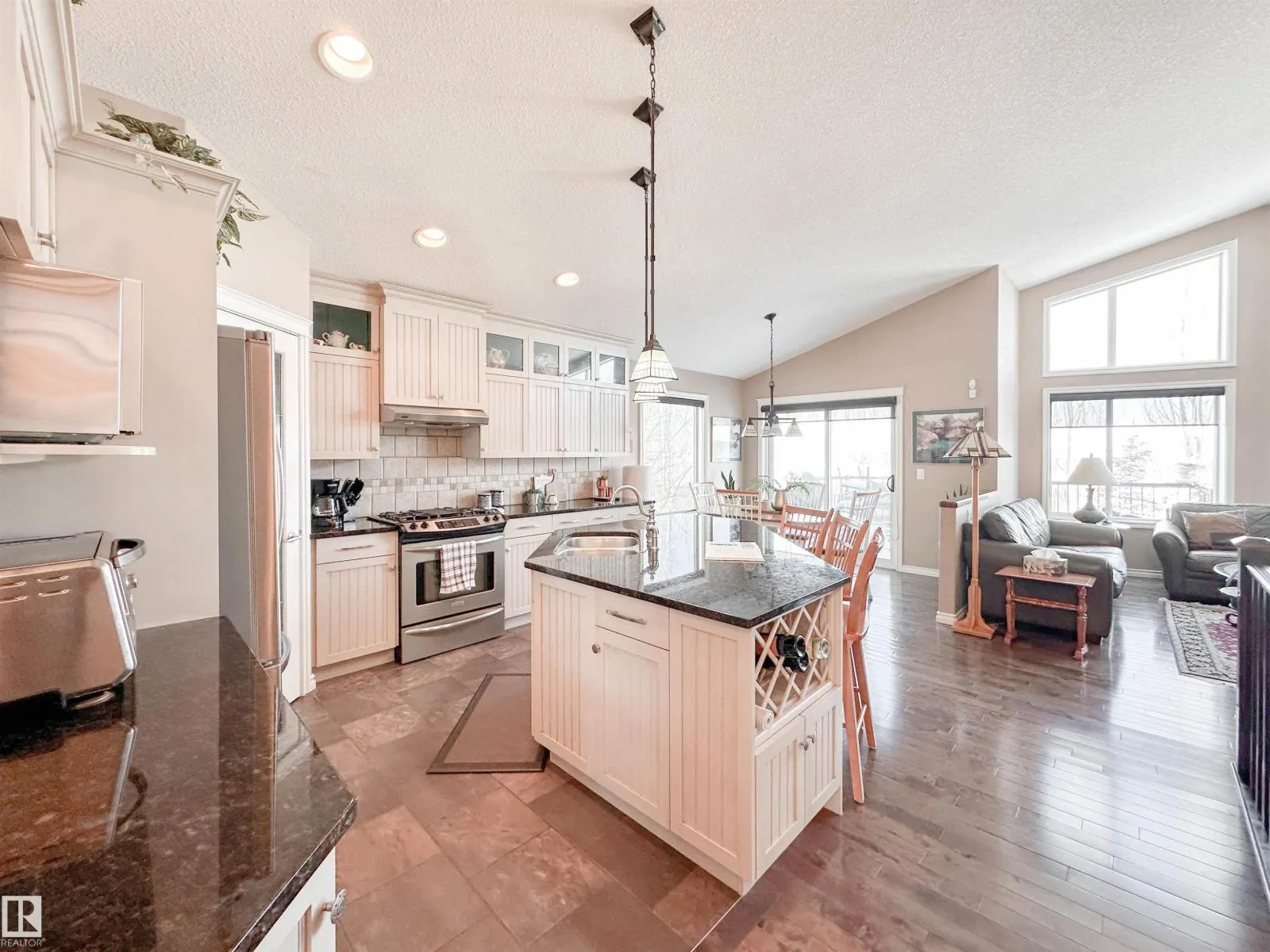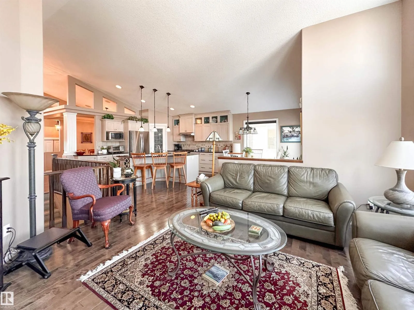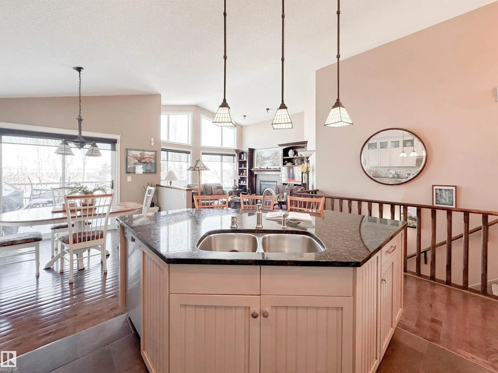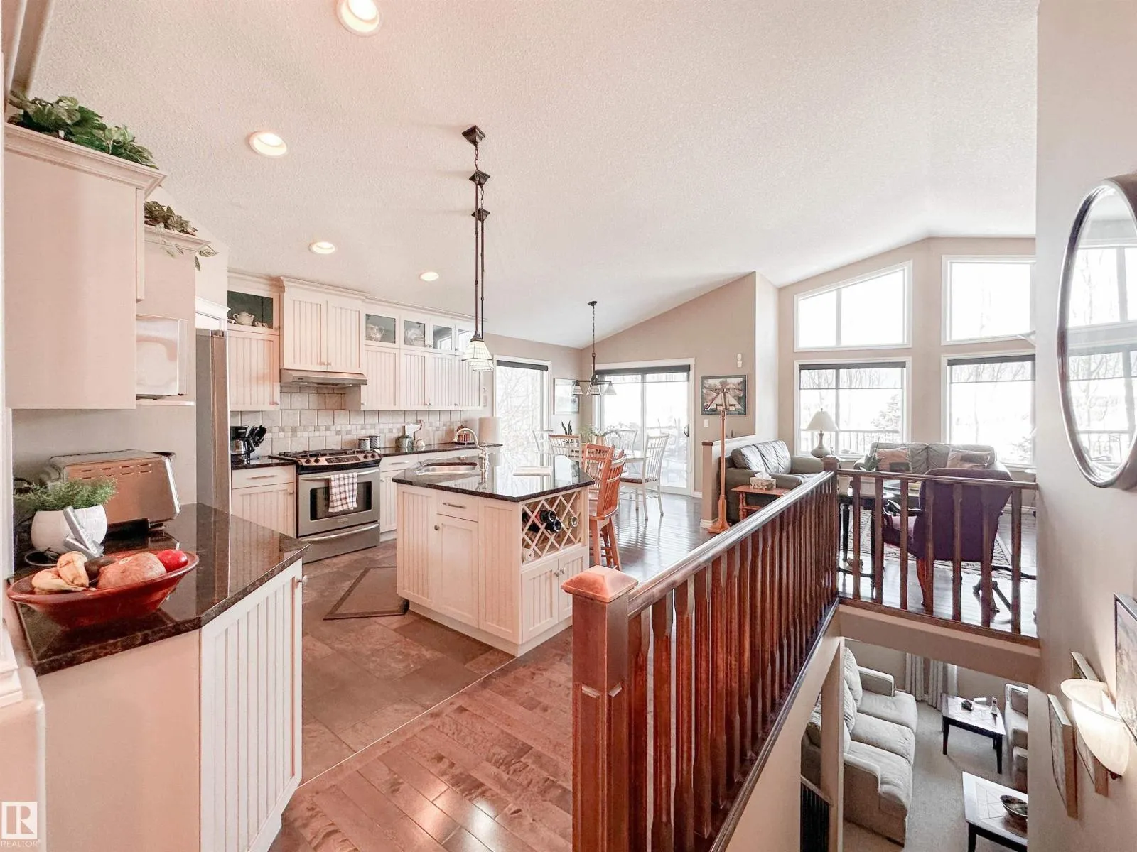 Welcome to this beautiful walk-out bungalow in Oakmont with incredible river valley views and over 2,700 sq ft of living space! From the moment you walk in, youâll love the natural light, warm hardwood floors, and open layout that makes this home feel both spacious and inviting. The kitchen is perfect for hosting with rich cabinetry, granite countertops, and stainless steel appliances, flowing effortlessly into the nook area and spacious living room w/ soaring windows, vaulted ceiling & gas fireplace. Step out onto the upper balcony and take in the peaceful views. The primary suite offers a relaxing retreat with a 5-piece ensuite and walk-in closet. A den, formal dining, powder room, & main floor laundry add convenience. Downstairs, the FF walk-out basement features a large living room/rec room, wet bar, 2 bedrooms, and a full bath. Enjoy the private, low-maintenance yard surrounded by mature trees! (id:27476)