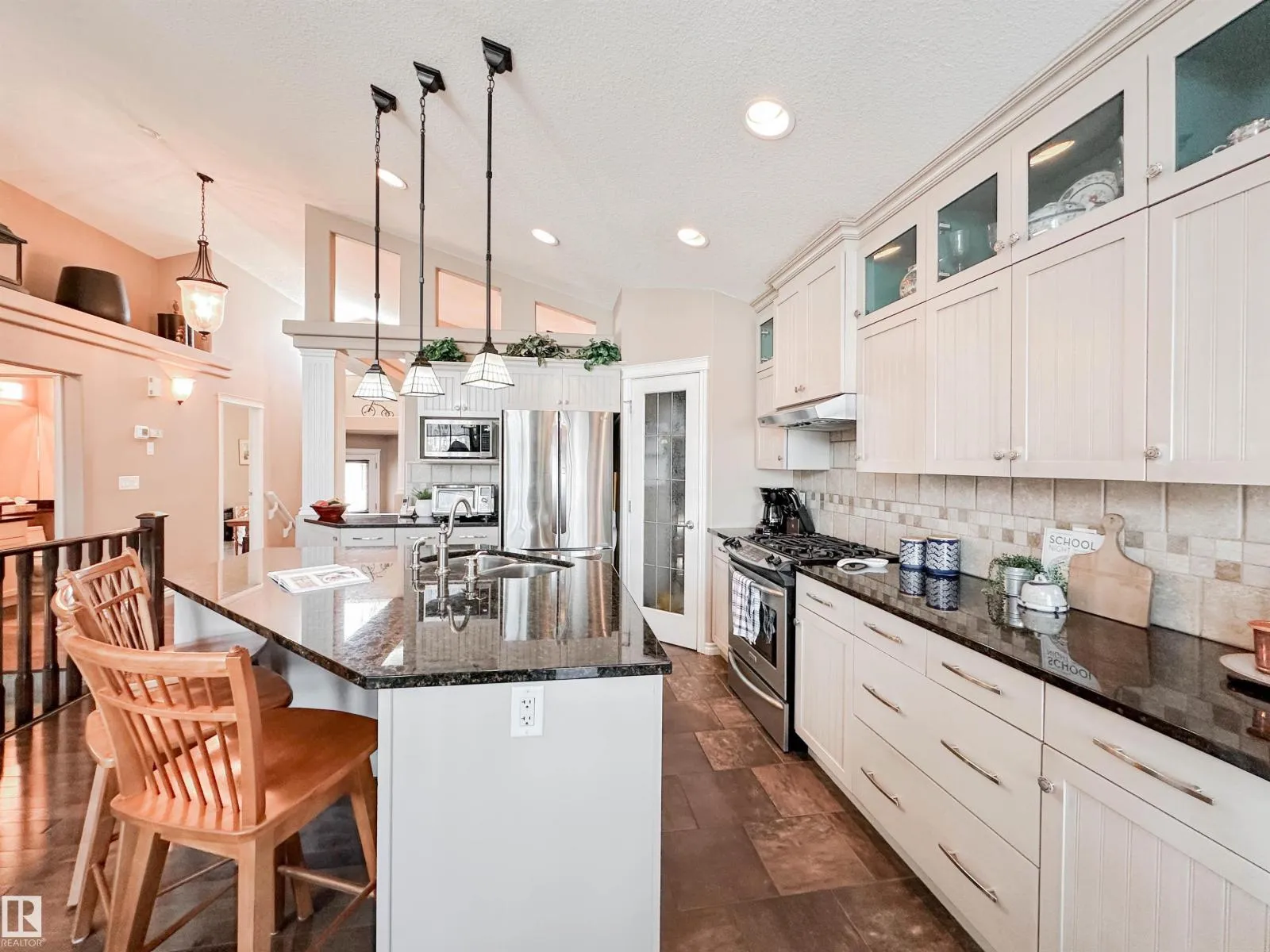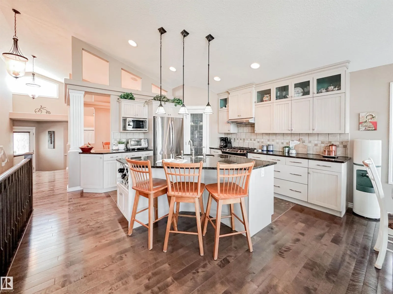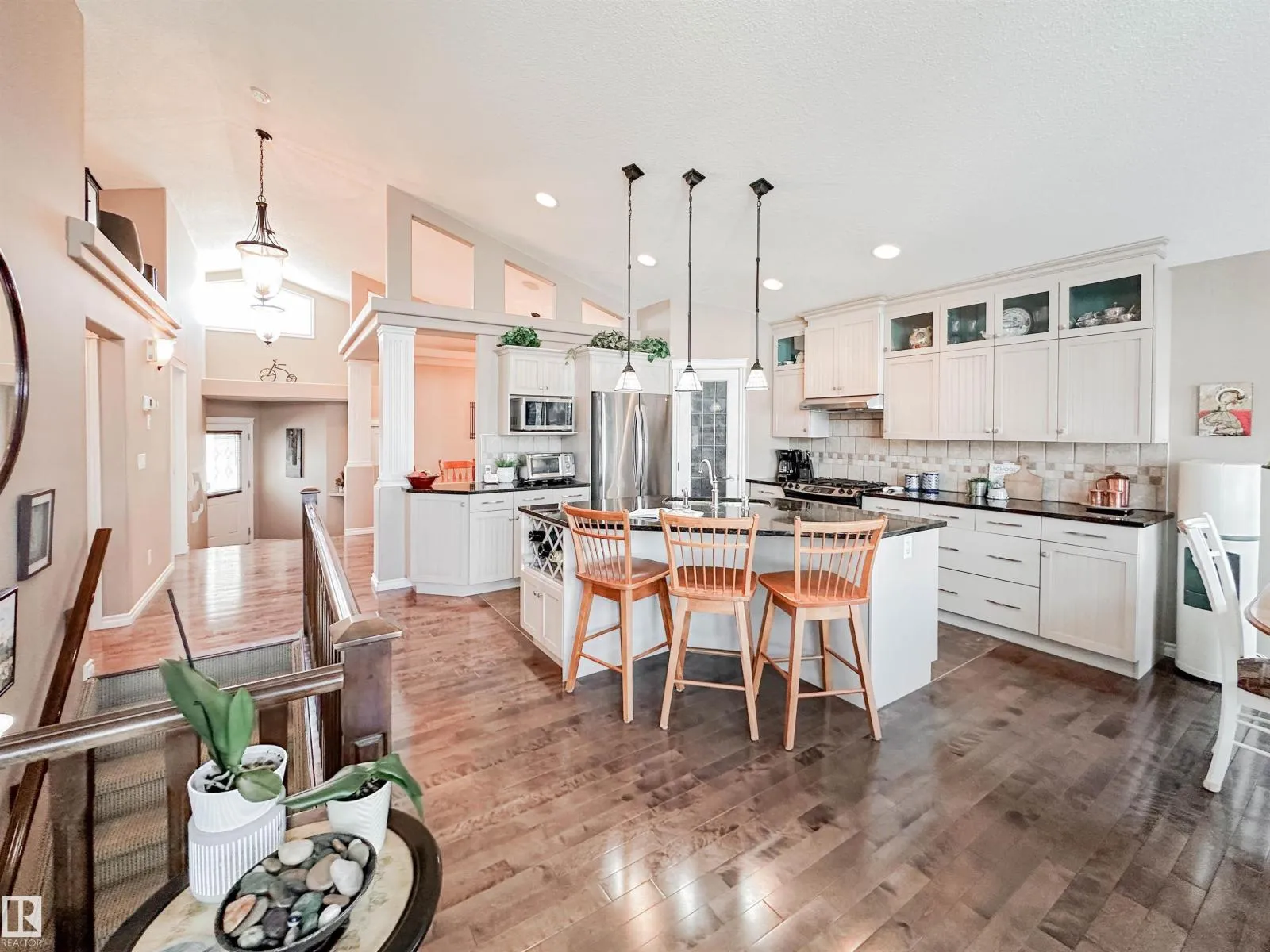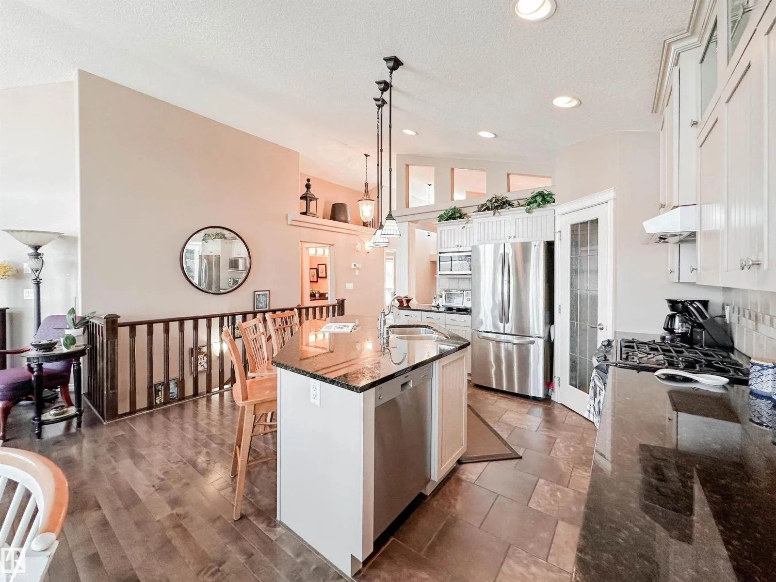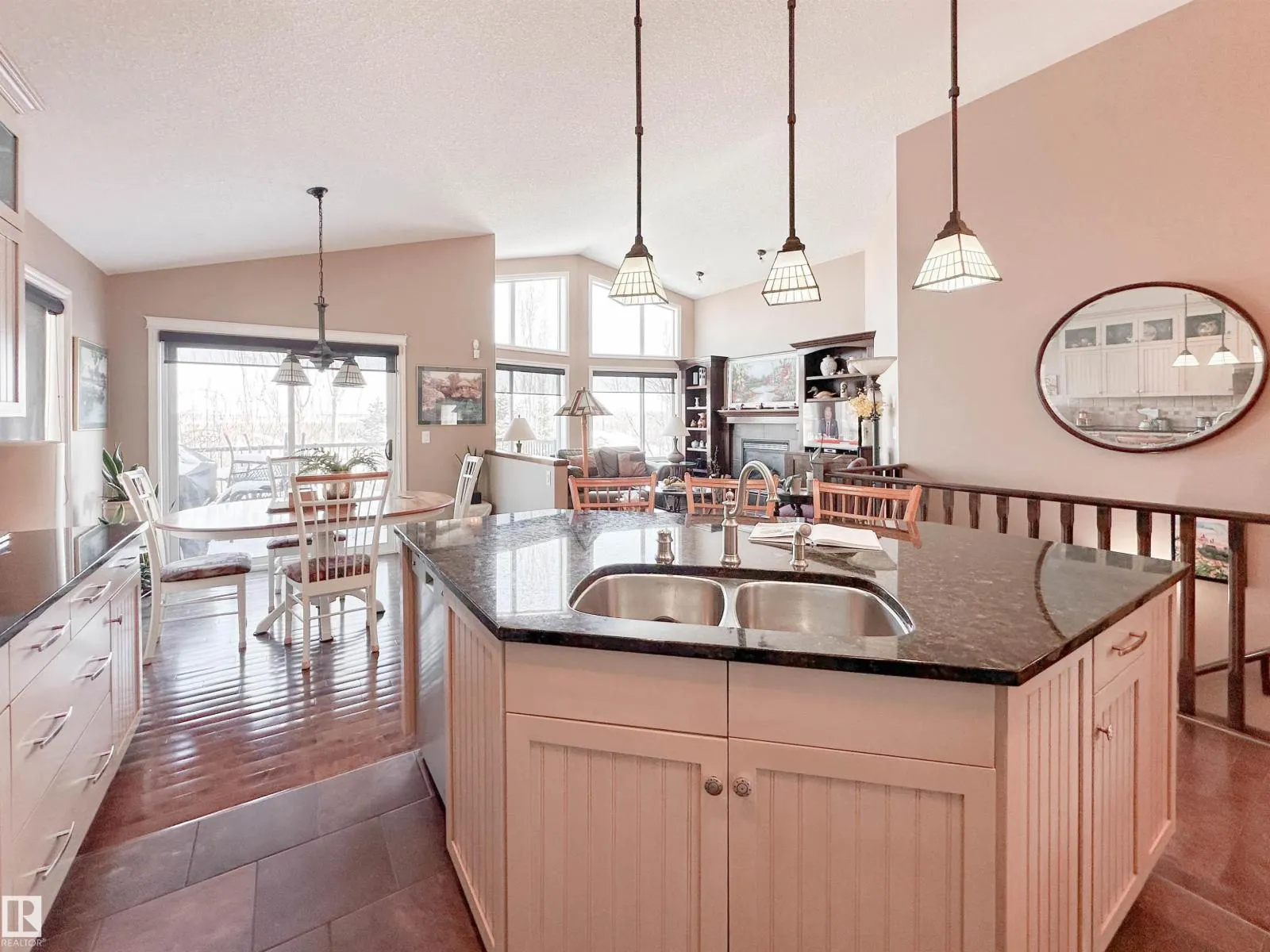Welcome to this beautiful walk-out bungalow in Oakmont with incredible river valley views and over 2,700 sq ft of living space! From the moment you walk in, youâll love the natural light, warm hardwood floors, and open layout that makes this home feel both spacious and inviting. The kitchen is perfect for hosting with rich cabinetry, granite countertops, and stainless steel appliances, flowing effortlessly into the nook area and spacious living room w/ soaring windows, vaulted ceiling & gas fireplace. Step out onto the upper balcony and take in the peaceful views. The primary suite offers a relaxing retreat with a 5-piece ensuite and walk-in closet. A den, formal dining, powder room, & main floor laundry add convenience. Downstairs, the FF walk-out basement features a large living room/rec room, wet bar, 2 bedrooms, and a full bath. Enjoy the private, low-maintenance yard surrounded by mature trees! (id:27476)