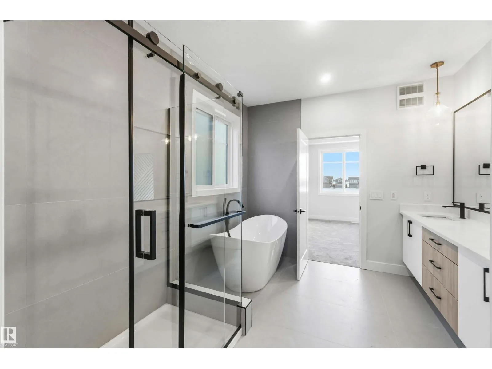 Beautiful 2-storey home backing onto a scenic walking path with peaceful views. Main floor features an open-concept kitchen, spacious living and dining areas, plus a bedroom with an adjacent full bathâperfect for guests or a home office. Upstairs offers 3 bedrooms, including a luxurious primary suite with a spa-inspired ensuite: soaker tub, oversized shower, double vanity, and walk-in closet. Each upstairs bedroom has access to a full bathroom. Oversized garage and located close to schools, parks, shopping, and major roads. Ideal for families seeking space, comfort, and everyday convenience. (id:27476)