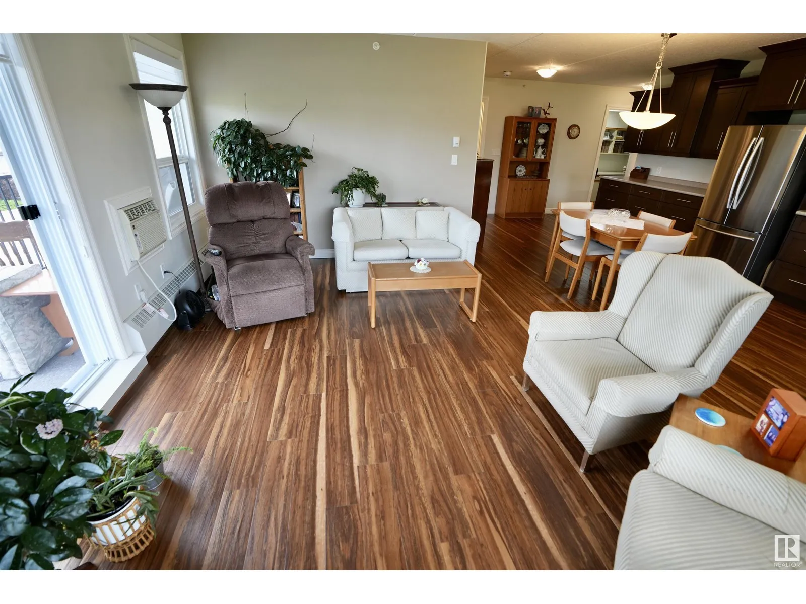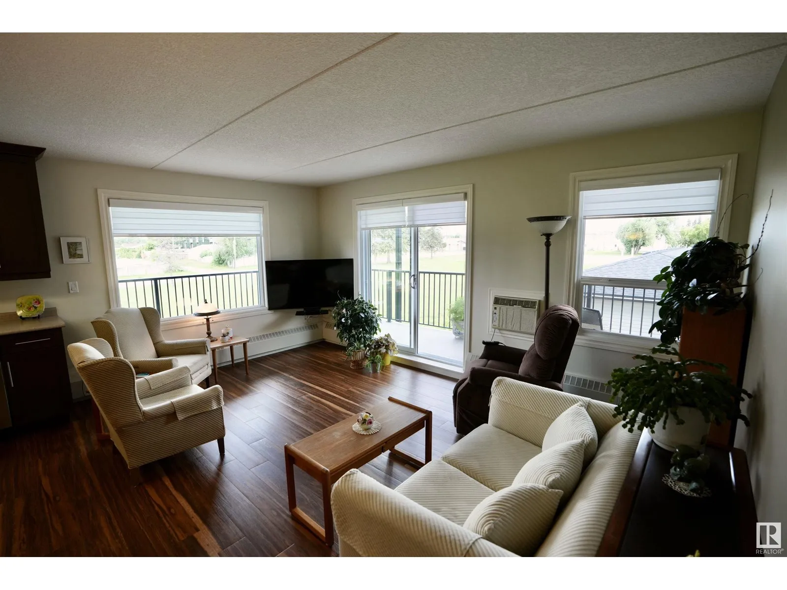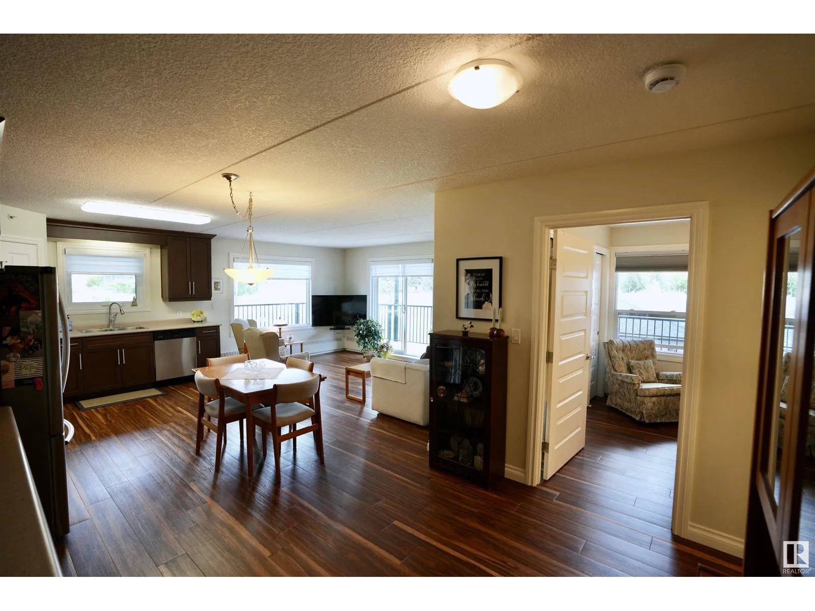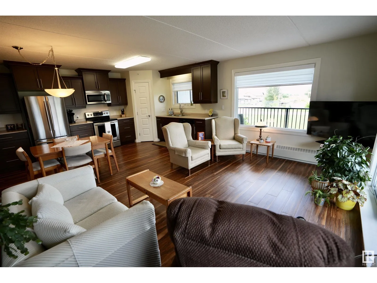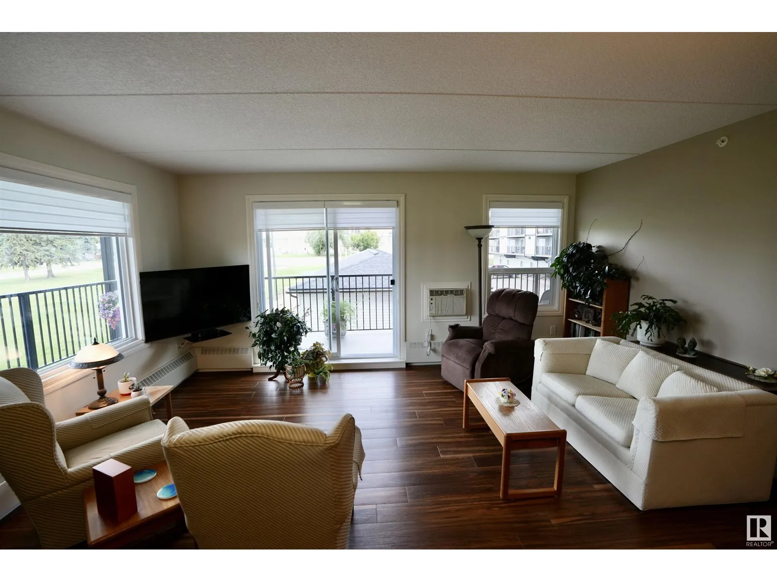 Savour the simplicity of ADULT living in this spacious 1000+ sq ft corner unit condo! Featuring 2 bedrooms and 2 bathrooms, this home boasts upgraded vinyl plank and lino flooring for low-maintenance living, and an open-concept layout ideal for everyday comfort. The kitchen is equipped with stainless steel appliances, added cabinetry, and a full pantry - perfect for staying organized. Enjoy the peace of mind of air conditioning, a double-sided balcony with storage on each end, and a master suite complete with a 3-piece ensuite and walk-in glass shower. This secure building offers elevator service, two parking stalls (one indoor, one outdoor), and fantastic amenities: a party room with a washroom for large gatherings, a workshop for hobbyists, an exercise room, and in-house mailboxes. Located across from the lake and scenic boardwalk - perfect for peaceful strolls. No shoveling, no yard work - just carefree living at its best! (id:27476)
