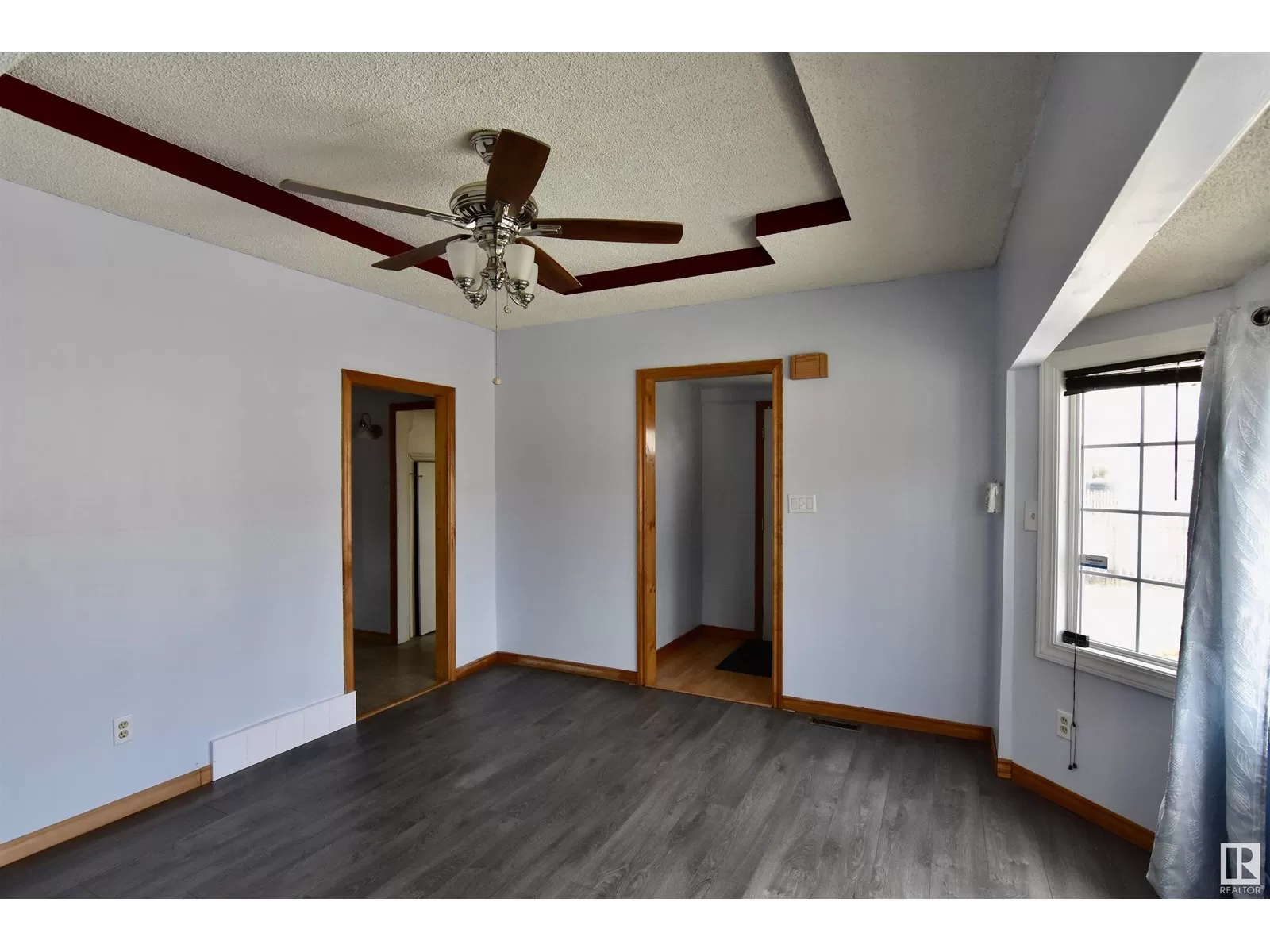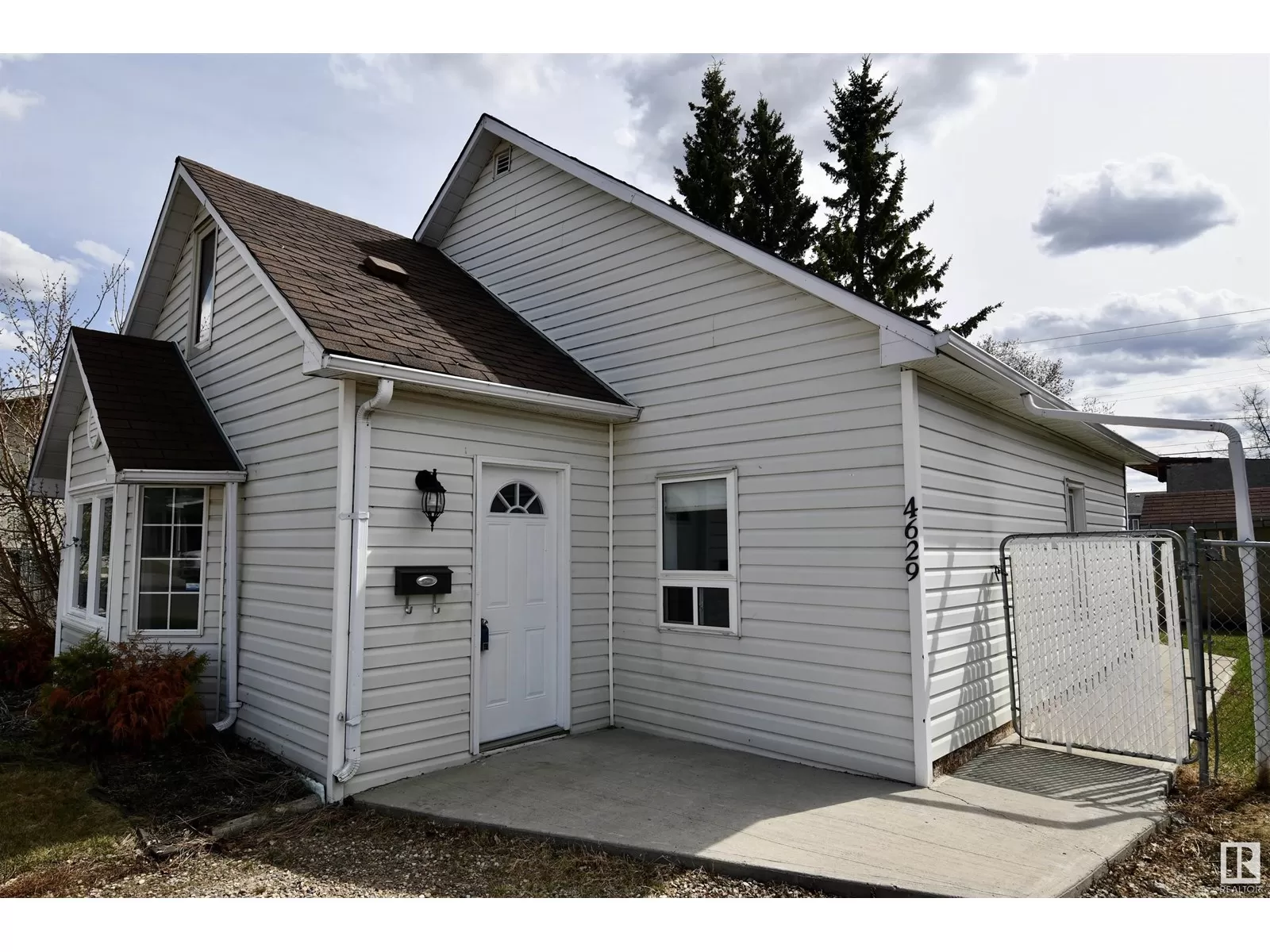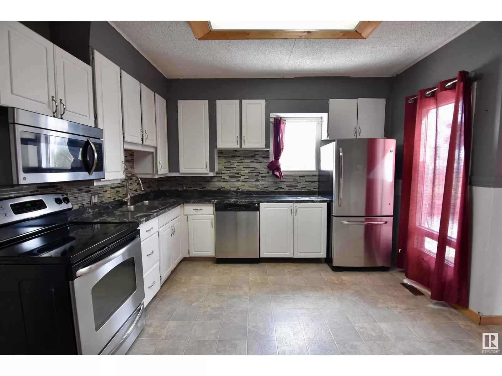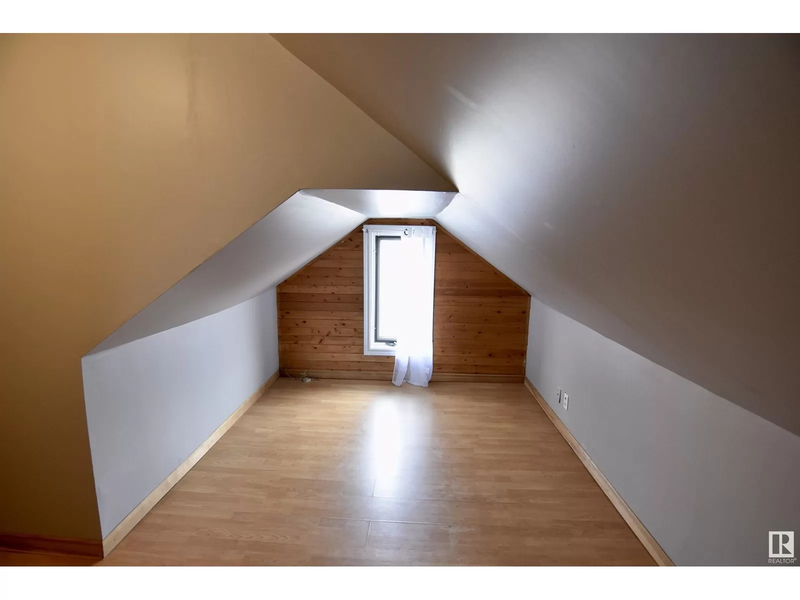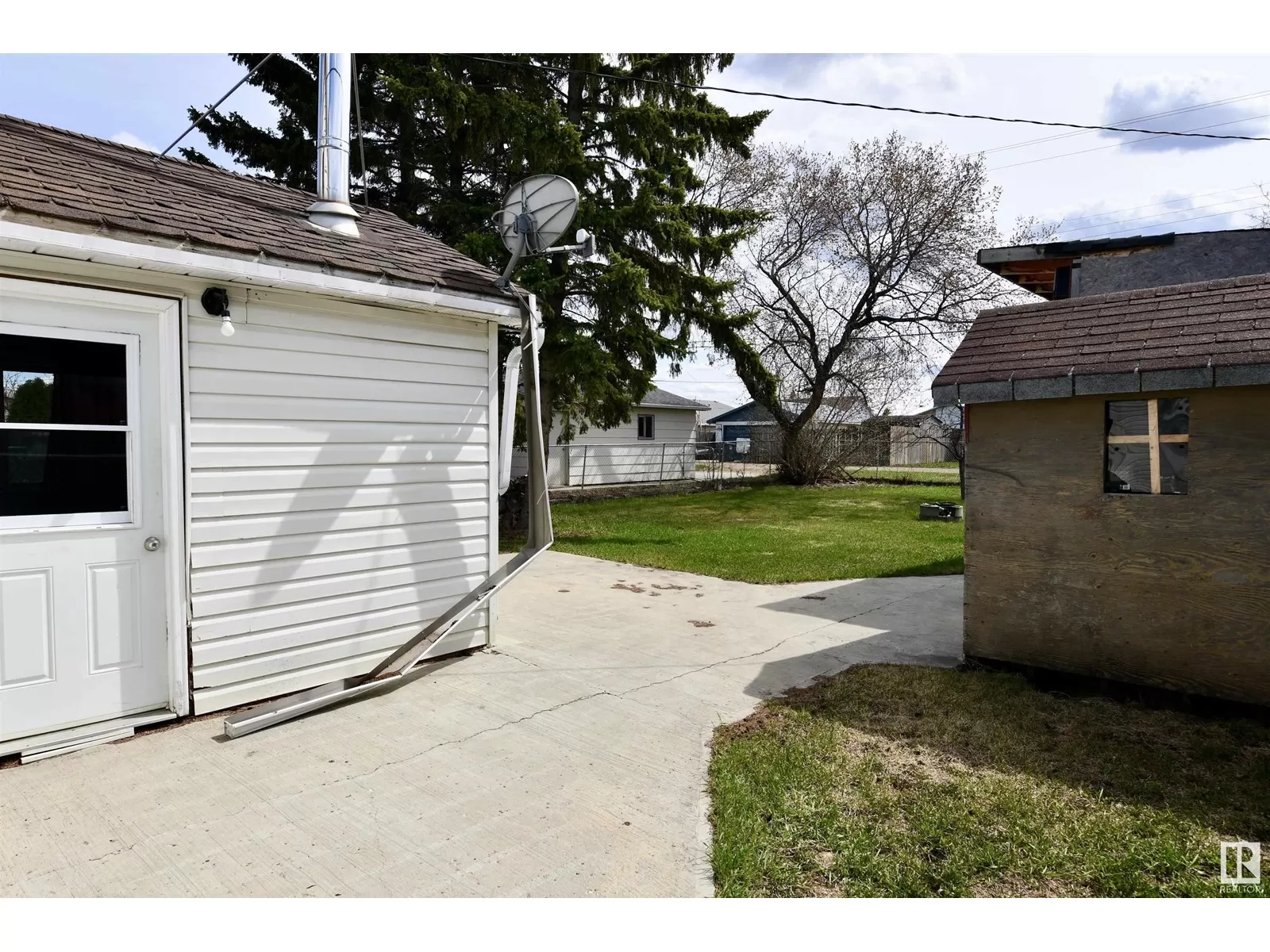 Unique character home close to schools! Tired of cookie-cutter homes? This 1940, 3 bedroom home is apt to catch your attention. The front living room boasts vinyl plank flooring, a bright bay window and a traditional tray ceiling. The eat-in kitchen has seen some updates and features white cabinetry, modern back splash & stainless steel appliances. The back entrance is is cozy with its wood stove and seating area. You'll find 2 bedrooms on the main floor, one featuring the laundry facilities. Upstairs is one more charming bedroom and flex space that's ideal for a play area, reading area or extra storage. Outside is fully fenced with 2 storage sheds and a small patio area. With a bit of your own elbow grease and imagination, this could be your ideal first home or possibly a rental for some additional income. (id:27476)