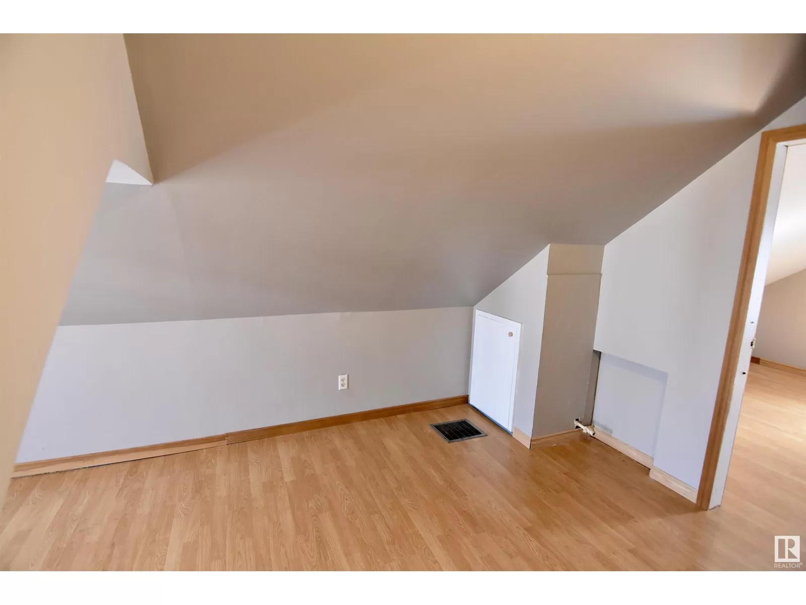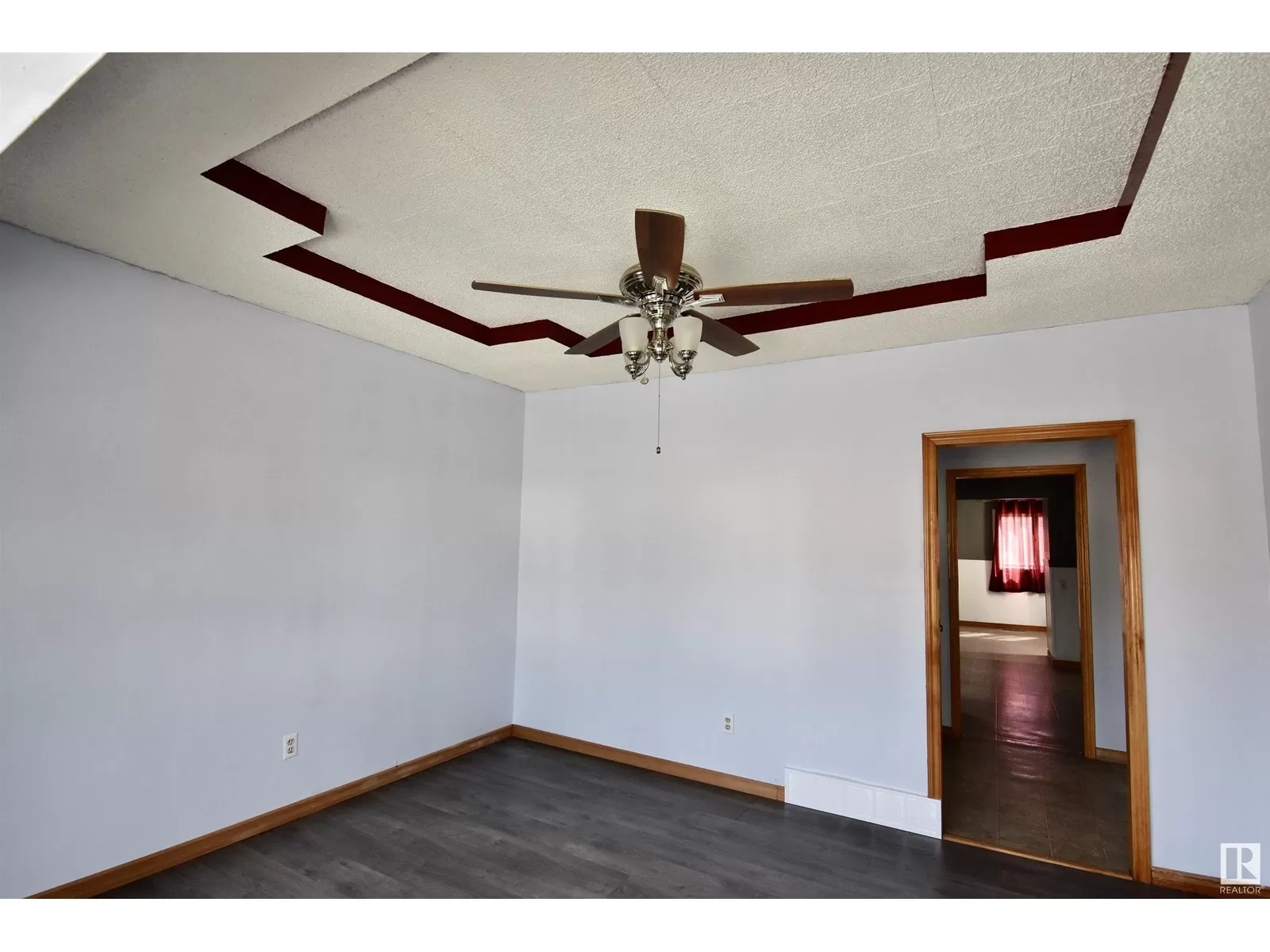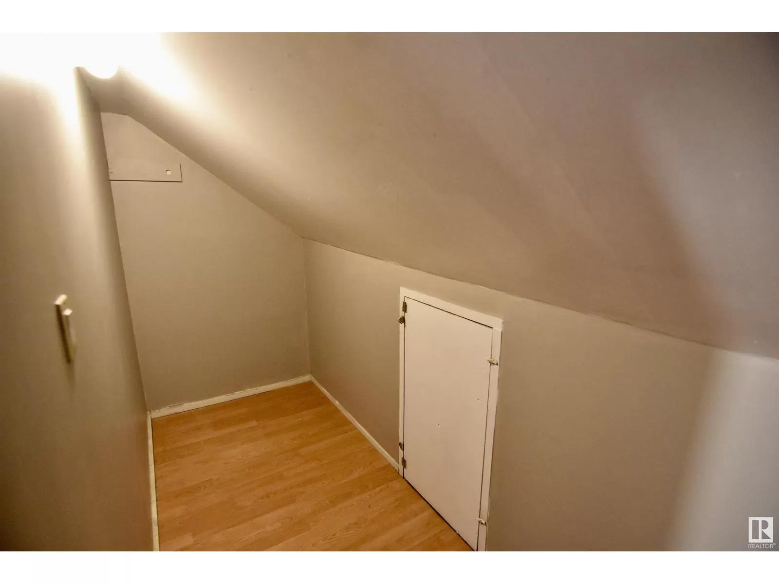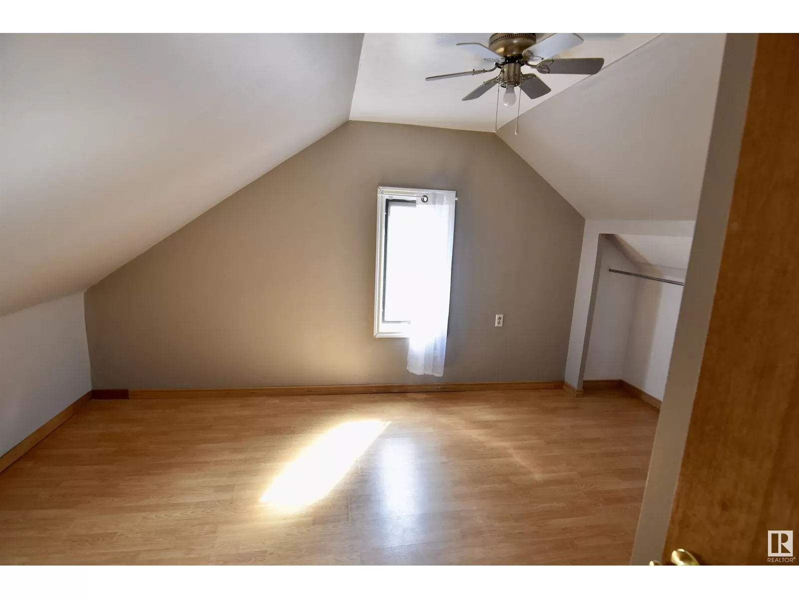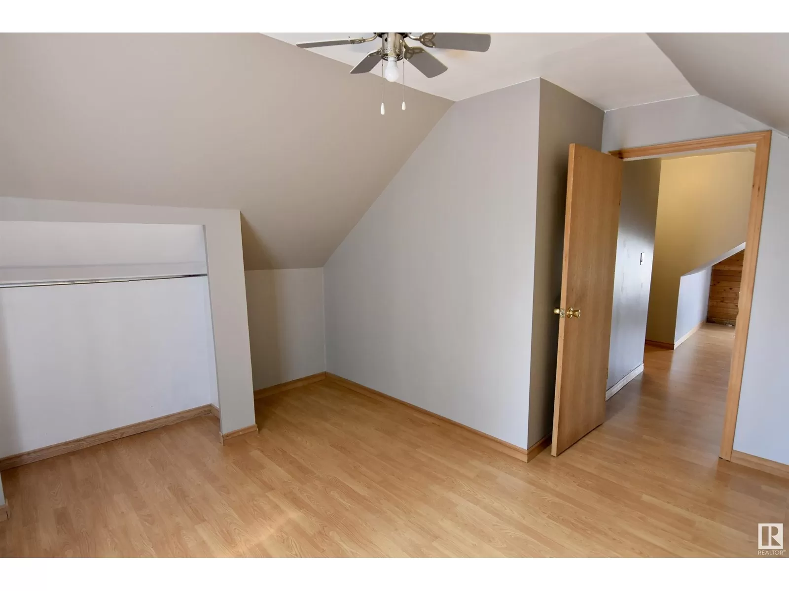 Unique character home close to schools! Tired of cookie-cutter homes? This 1940, 3 bedroom home is apt to catch your attention. The front living room boasts vinyl plank flooring, a bright bay window and a traditional tray ceiling. The eat-in kitchen has seen some updates and features white cabinetry, modern back splash & stainless steel appliances. The back entrance is is cozy with its wood stove and seating area. You'll find 2 bedrooms on the main floor, one featuring the laundry facilities. Upstairs is one more charming bedroom and flex space that's ideal for a play area, reading area or extra storage. Outside is fully fenced with 2 storage sheds and a small patio area. With a bit of your own elbow grease and imagination, this could be your ideal first home or possibly a rental for some additional income. (id:27476)