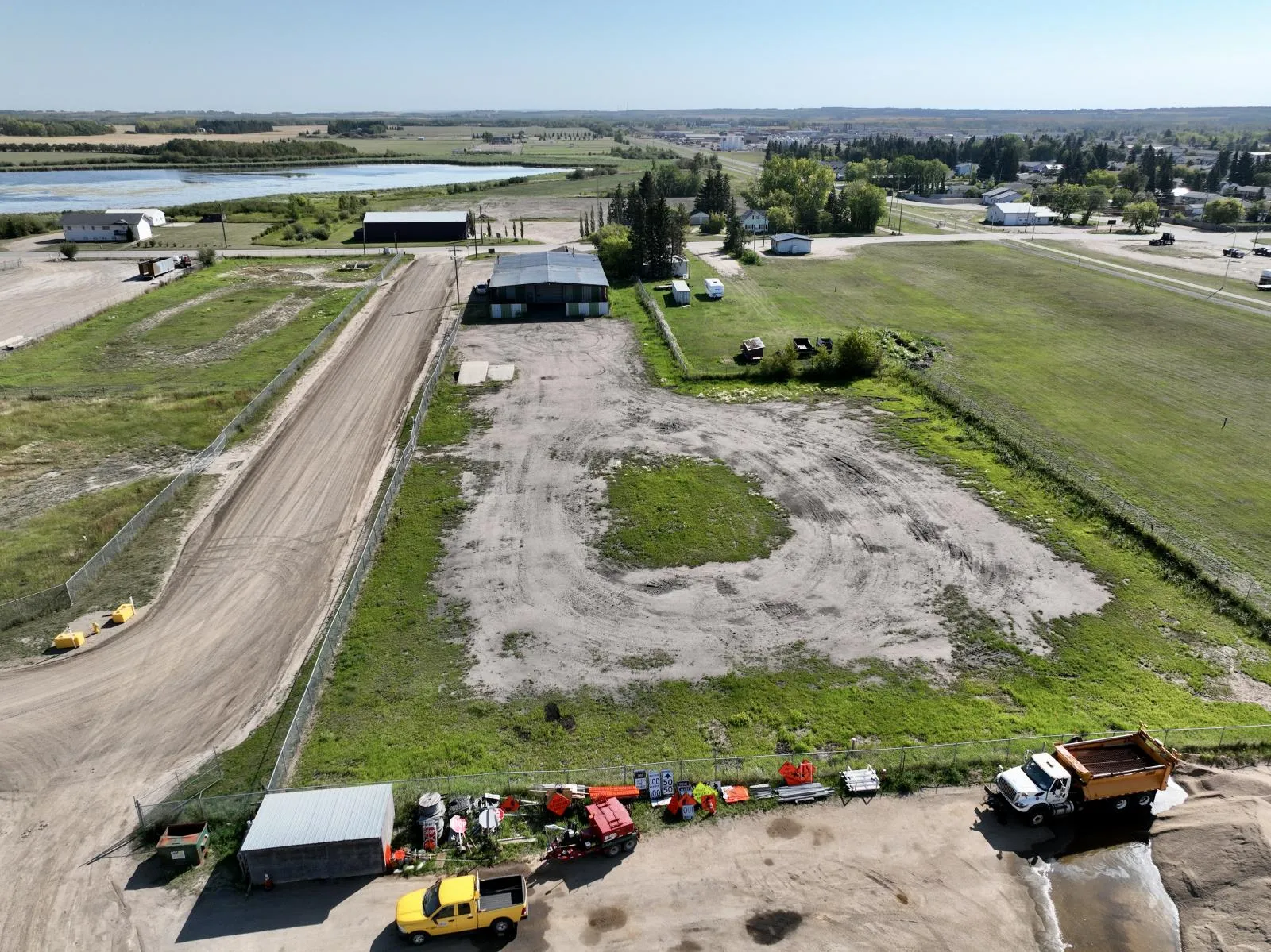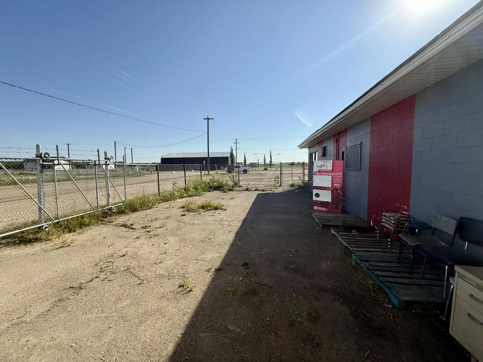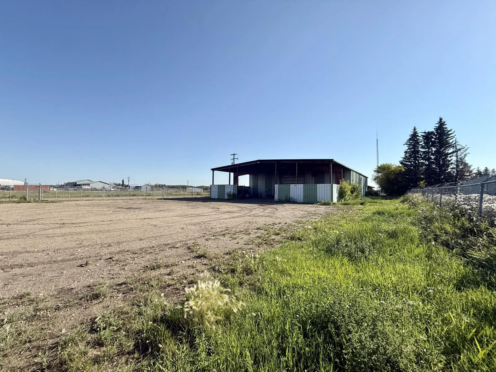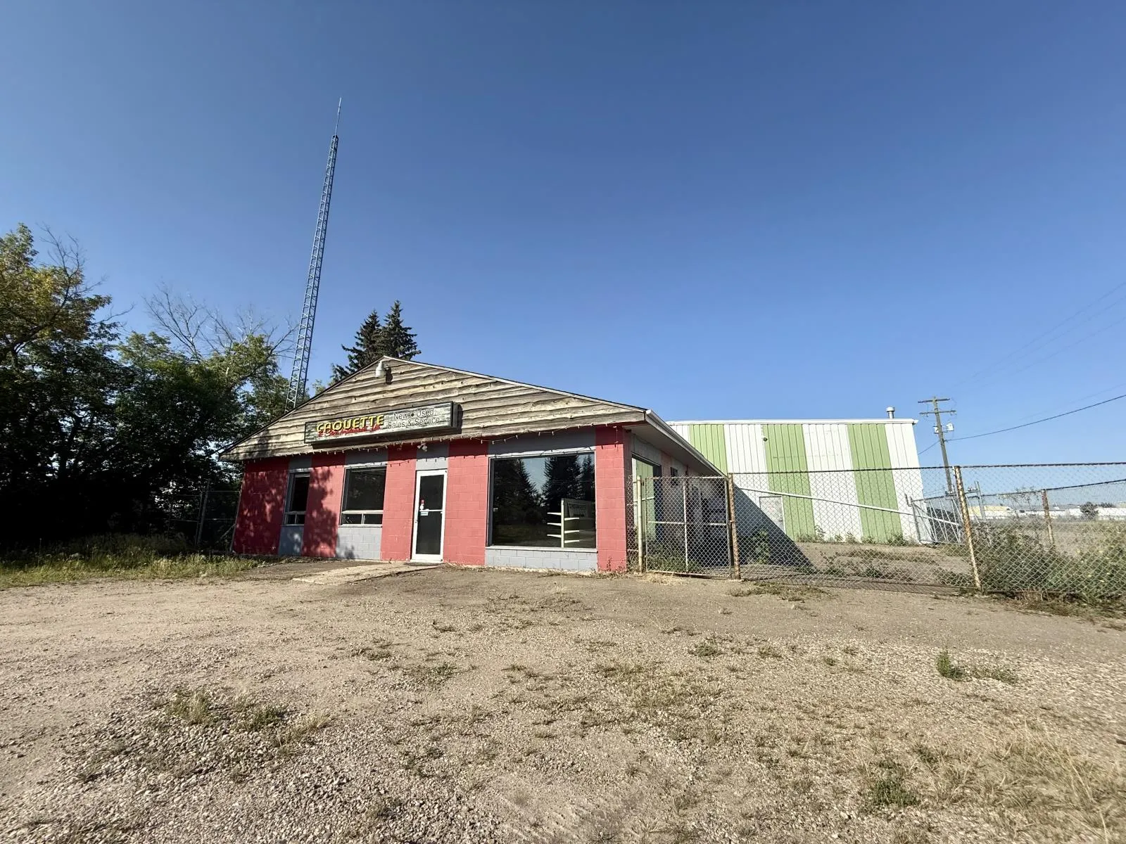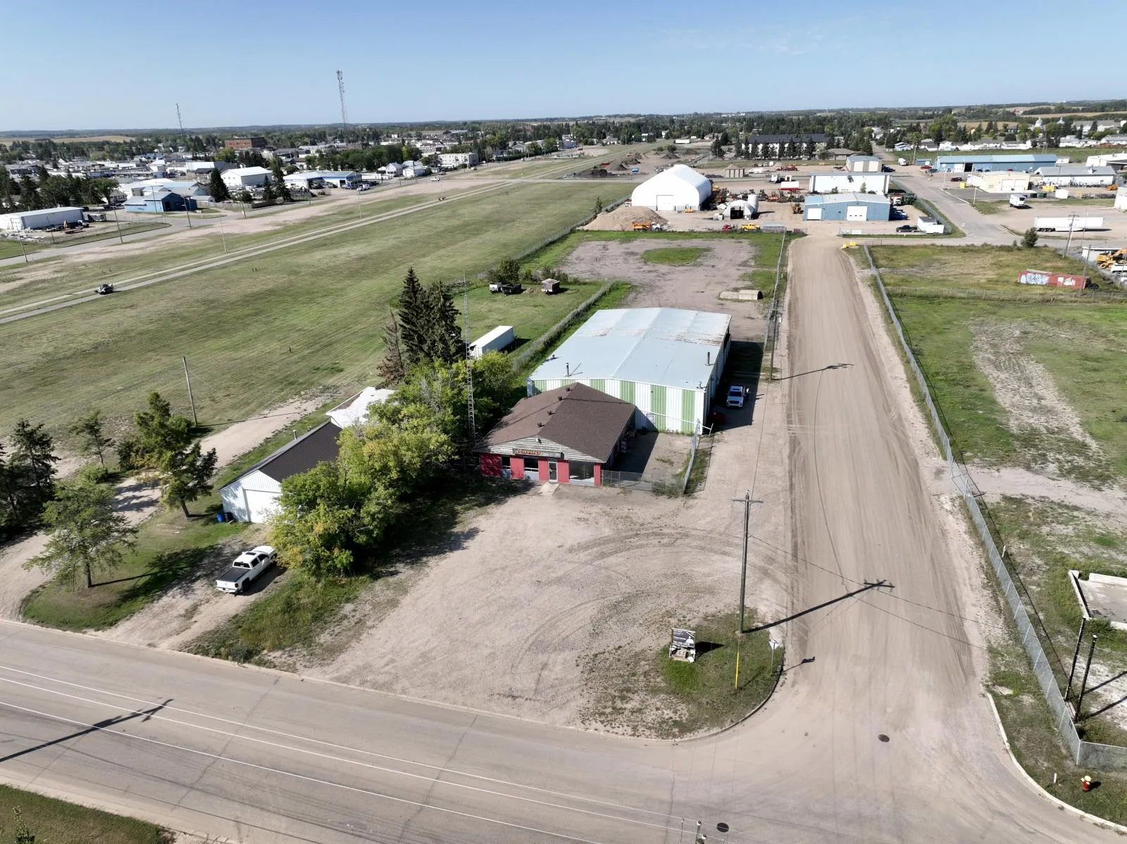 Commercial/Industrial Opportunity! This versatile property spans over 2 acres over two lots, offering ample room to expand & grow your business. The main storefront features a welcoming reception area, multiple offices, a convenient parts counter, storage, and two washrooms. Upstairs, a 600 sq. ft. mezzanine provides additional storage or a staff room. The highlight is the massive 82x70 shop with a 16 ft overhead door, durable concrete floors, and 220 amp power - perfect for heavy-duty operations. A covered outdoor work area expands functionality, while the fully fenced yard at the back is ideal for storage or display. Recent updates include a newer metal roof, and the property is fully serviced with town utilities. Additional lots are available (43688832) to further support future growth. Whether youâre in agriculture, mechanics, or looking to scale an existing operation, this property delivers space, functionality, and unlimited potential. The possibilities for your expanding business are endless!Other Property Types: Industrial,RetailSubject Space Width: 82Ownership Interest: PrivateSite Services: Fully ServicedSite Influences: Cleared,Corner Site,Fenced,Flat SiteTitle to Land: Fee SimpleRPR Survey Available: No (id:27476)
