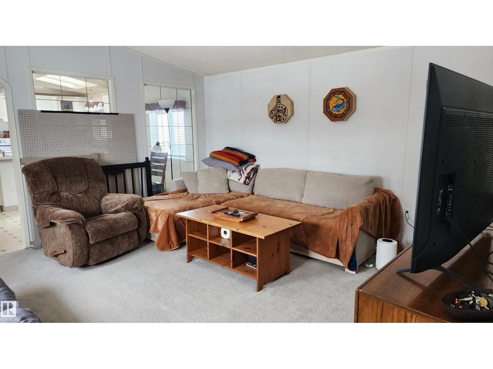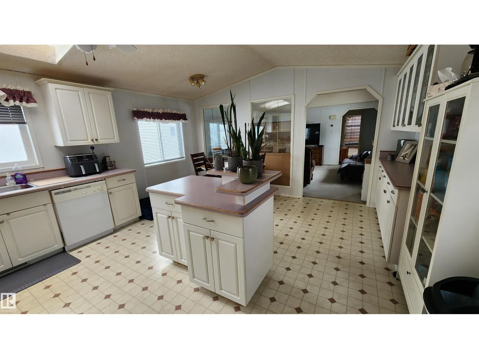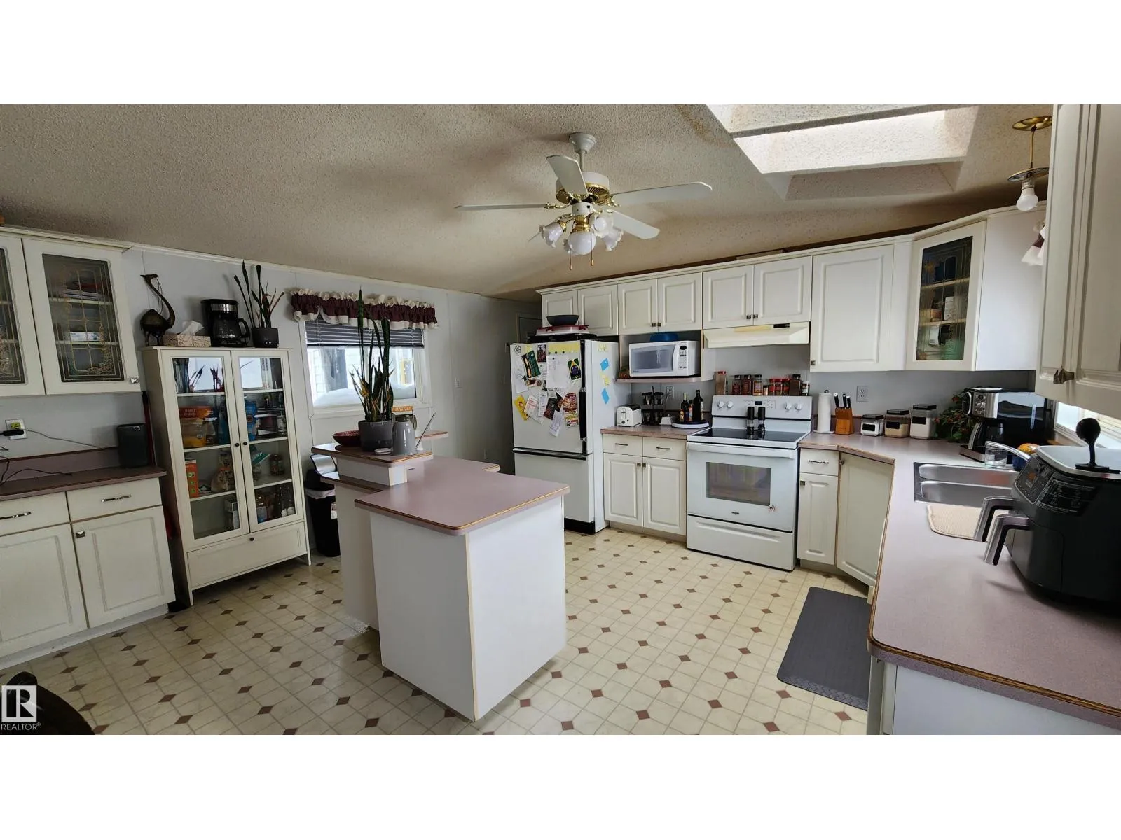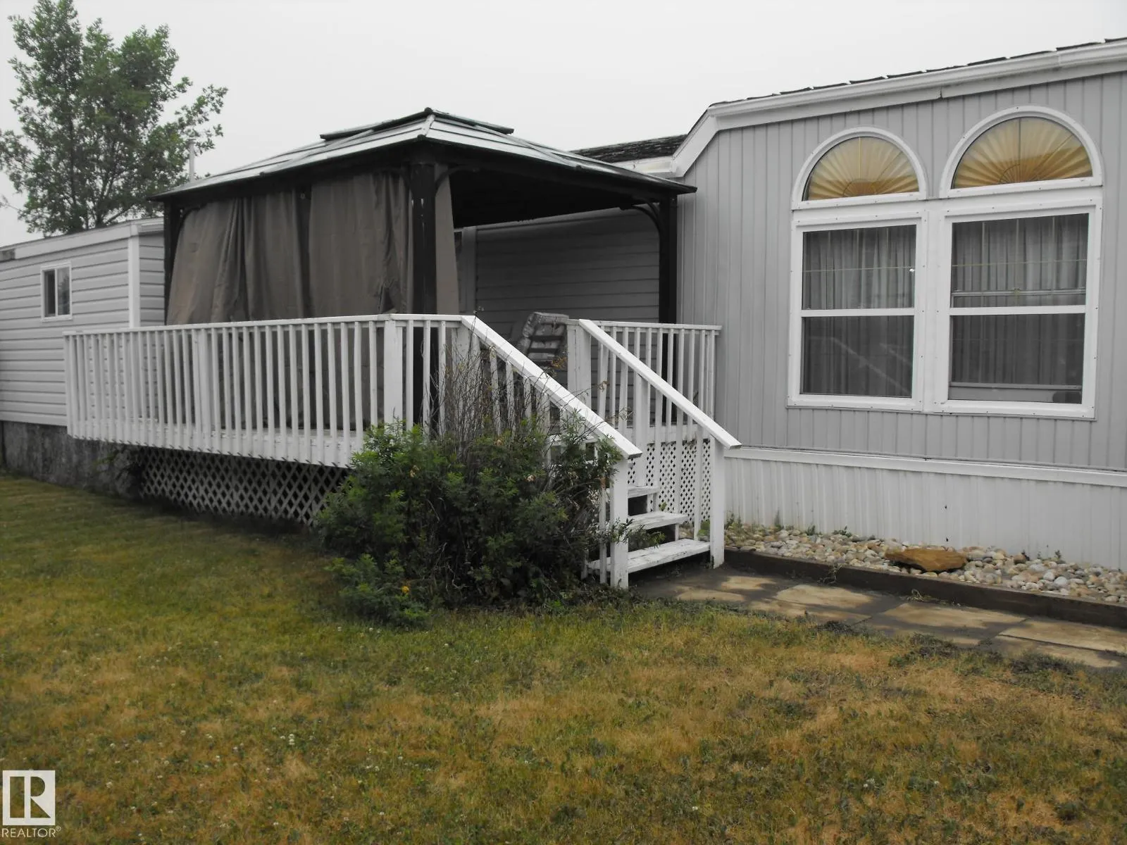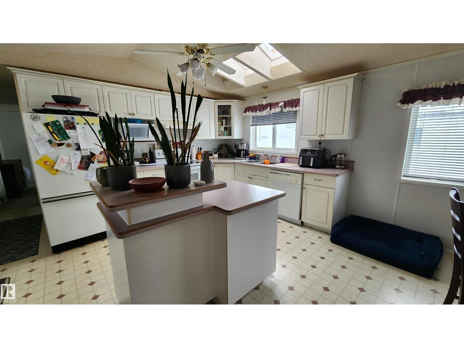 What a deal for the first time home buyer, retiree or family! This 1216 sq.ft. 1996 manufactured home features 3 bedrooms & 2 full bathrooms. The spacious kitchen features a central island (powered), ample cabinets and counter space, built-in china cabinet and BI dishwasher. The large living room features a wall with windows to the kitchen and a vaulted ceiling. You will love the master bedroom with WI closet & 4 pc ensuite with jacuzzi. Not often found in a mfg home is a separate room for the washer/dryer & central vac. Also included is a back porch for storage / boot room and deck with gazebo. Backing an open field the large landscaped lot is fenced, includes 2 storage sheds and has back alley. With 2x6 construction, 5 year old shingles, an open concept design and skylights for natural light, this home offers so much at an affordable price. Lot rental is only $400.00 per month. Taxes (2025) are $772.87 ($64/month). Great location close to playground! (id:27476)