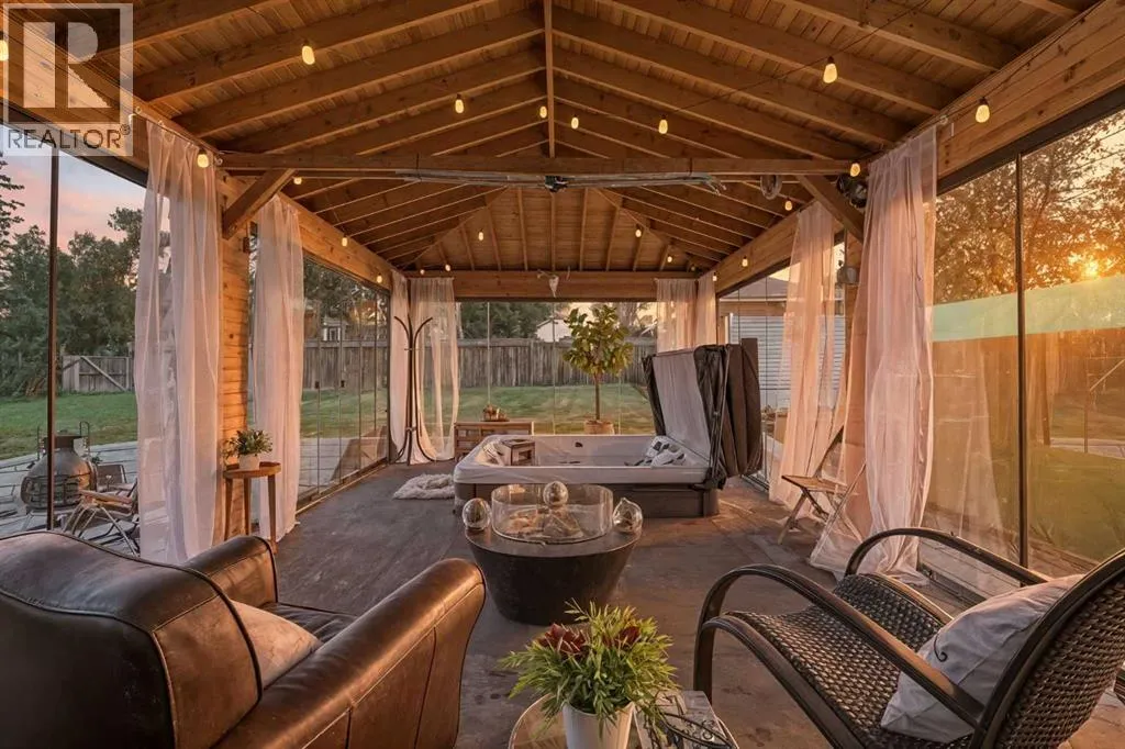 Welcome to your prairie retreat in the peaceful community of Standard, Albertaâjust 20 minutes east of Strathmore and an hour to Calgary. Sitting proudly on two massive lots (13,000+ SQFT total), this spacious 6-bedroom, 2-bathroom bungalow offers 2,400+ SQFT of developed living space designed for comfort, lifestyle, and flexibility.Step inside and be greeted by an inviting open-concept main floor with durable luxury vinyl plank flooring, a spacious living area, two bedrooms, and a bright kitchen featuring a walk-in pantry and plenty of extra storage. Downstairs, the fully finished basement expands your optionsâwith four more bedrooms, a cozy family room, oversized laundry, and a soundproofed utility roomâideal for large families, guests, or multi-generational living.But the real wow factor? Your very own private spa escape. A stunning cedar-framed sunroom hosts a built-in hot tub with ambient lighting, integrated speakers, and a gas fireplaceâperfect for year-round relaxation. Step outside to a 12'x20' entertainment deck, gather around the outdoor fireplace, or unwind in your beautifully landscaped yard filled with fruit trees (apples & cherries), garden beds, and plenty of space for a future greenhouse or playground.Car lovers and hobbyists will love the ample parking (9+ vehicles), detached garage, portable garage, and double-gated access. Recent upgrades include: Newer furnace (6 years)Hot water tank ( 1 year)Dishwasher ( 1 year)Brand new basement windowsFresh paint and flooring on both levelsBasement development (4 years ago)The Village of Standard offers a welcoming, connected lifestyle with access to Wheatland Crossing School (Kâ12 busing), ATB bank, grocery store, post office, daycare, library, sports fields, rodeo grounds, and the charming Memory Lane walking pathâbuilt by local volunteers.This is more than a houseâitâs a lifestyle.If youâre dreaming of more space, privacy, and a tight-knit community, this is your opportunity to own a sli ce of Alberta charm for just $475,000.Book your private showing today and make Standard your new standard for living. (id:27476)