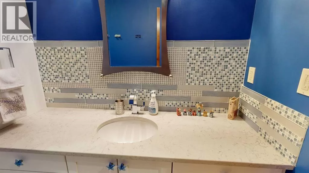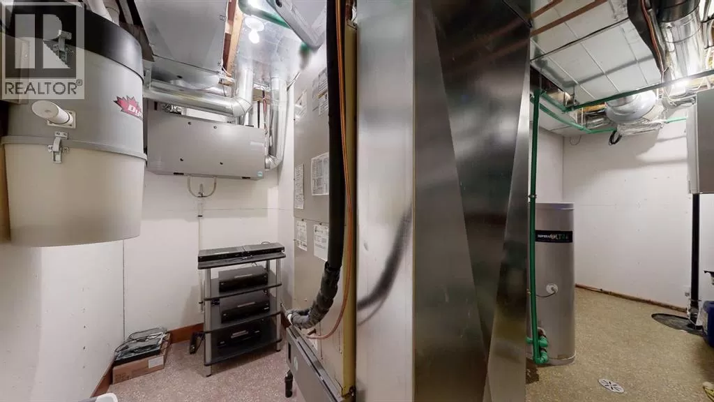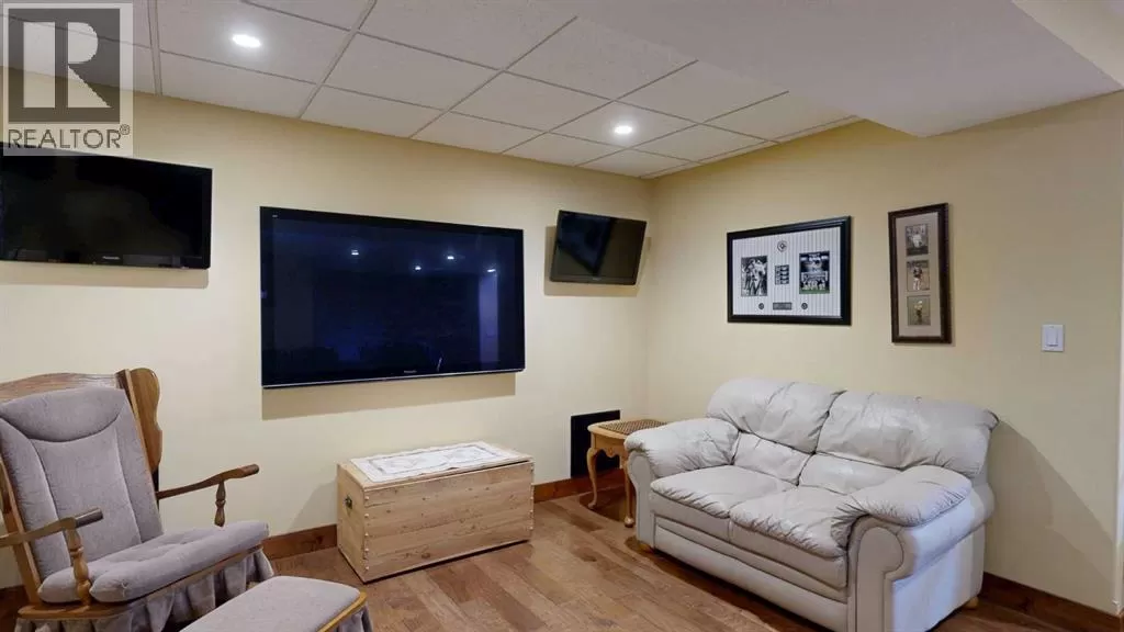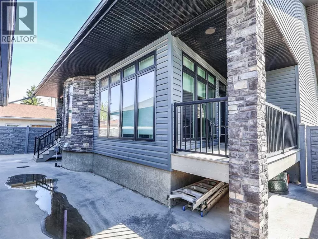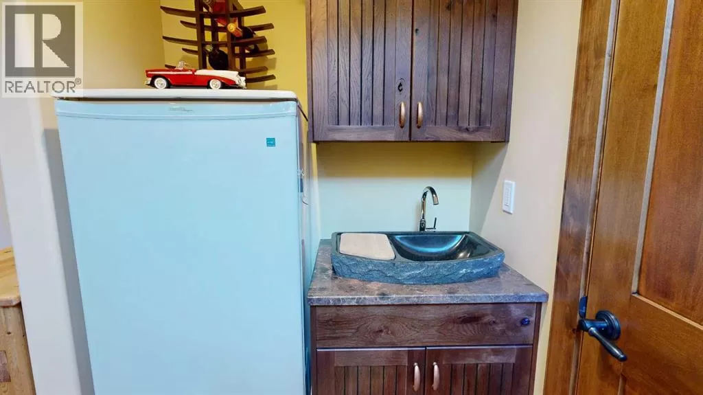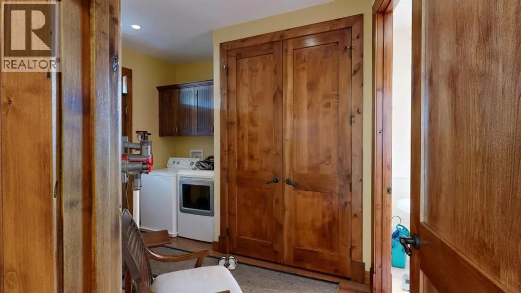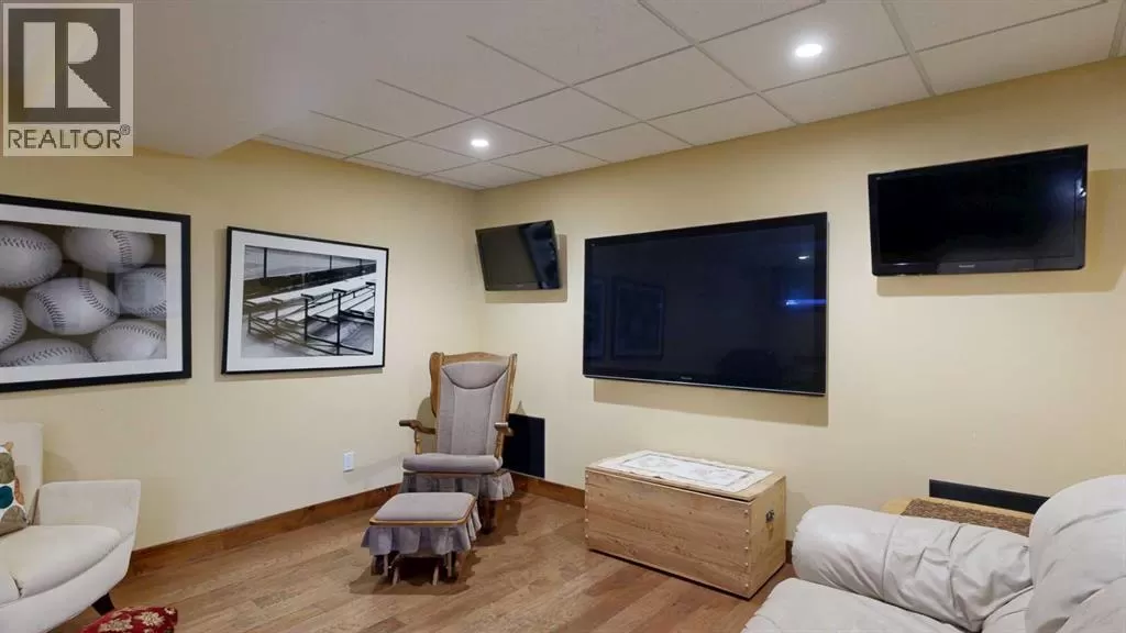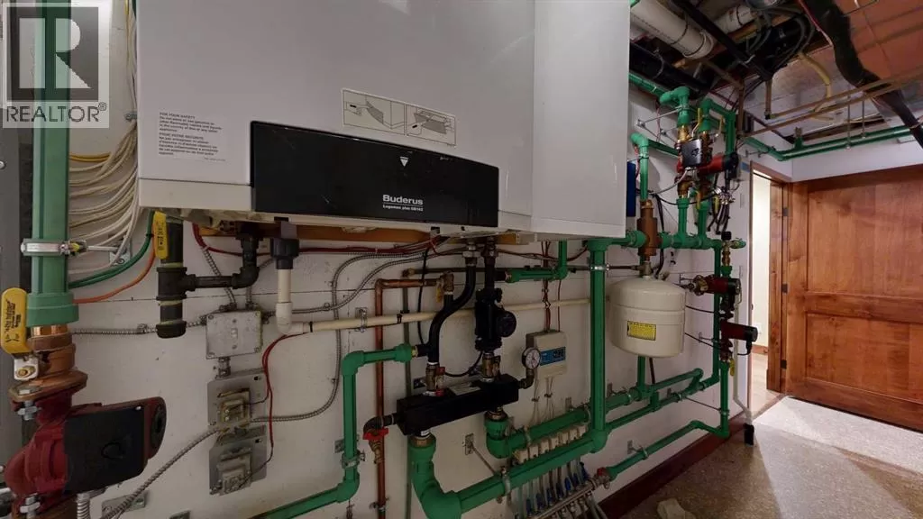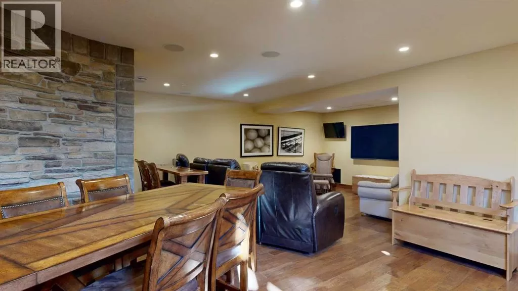 This stunning, custom designed home is a masterpiece of architecture and craftsmanship. Carefully and meticulously built by a master craftsman, every corner of this home has been developed for the ultimate living experience. Inside, the floors are rich hardwood and there are a number of curved walls done in Country Ledgestone. To the right is a curved den which has a vision art TV and unique custom windows. The heart of this home is the gourmet kitchen, featuring solid alder cabinets, granite countertops, a double oven, and a stone arch encompassing the cooktop. The Solas Heat & Glo fireplace beside the dining room table is a standout feature. Adjacent to the dining room, a curved stone wall creates an office with custom-made curved cabinets. The living room is spacious and inviting, with a gas fireplace, a large screen TV for entertainment, and garden door access to the back deck. The primary bedroom is a generous size, adorned with elegant wallpaper, crystal chandeliers, and an adjoining ensuite. This bathroom features a clawfoot tub, opulent granite shower and countertops, heated tile floor, and a heated towel bar. This bathroom can also be accessed via the back entrance, which also houses the washer and dryer. There is a 2-pc bathroom which is accented with a stone wall. Heading downstairs, there is another curved stone wall leading the way to the media room. Down the hall, there are 2 more bedrooms, one is oversized with 3 built in twin beds and 2 closets. There is a large storage room and utility room with a boiler. Modern amenities include 6 TVs with their own receivers (2 are 3D), 7 pairs of 3D glasses, 8â knotty alder doors on main floor (7â downstairs), wide trim and baseboards, transoms above exterior doors, and LED pot lights. The home was well constructed with an ICF foundation and triple pane windows. The front facade of this home is beautifully done in stone and the yard is low maintenance with grass, attractive shrub beds, and exposed aggregate sidew alk. In the back, there is a detached, 3 car garage with underfloor heat and a full wall of cabinets. The area between the house and garage is completely fenced. This home is just a short walk to main street shopping and to the schools, making it suitable for families in any stage of life. (id:27476)