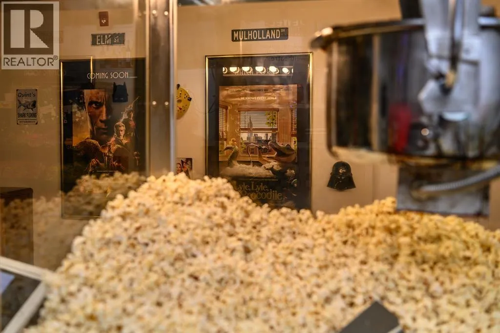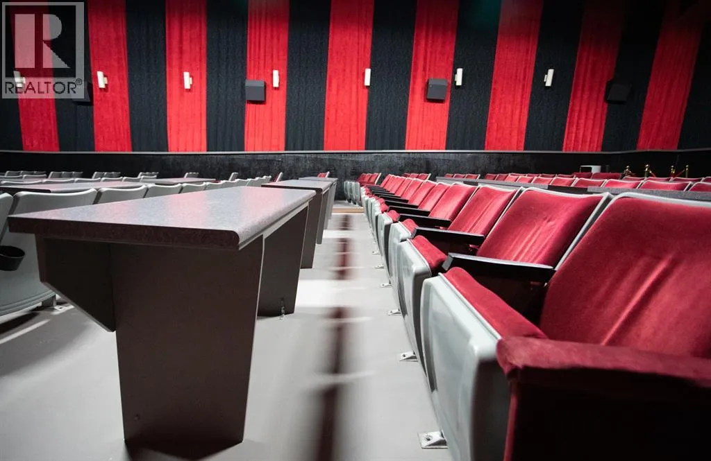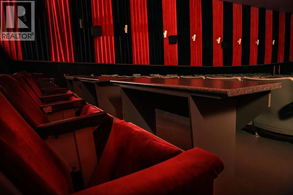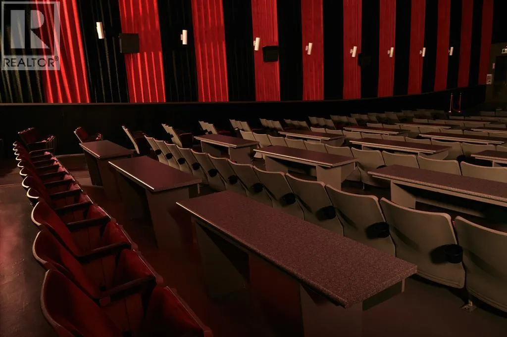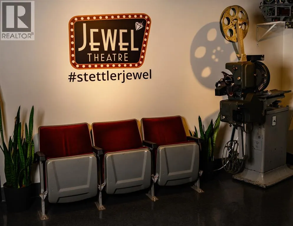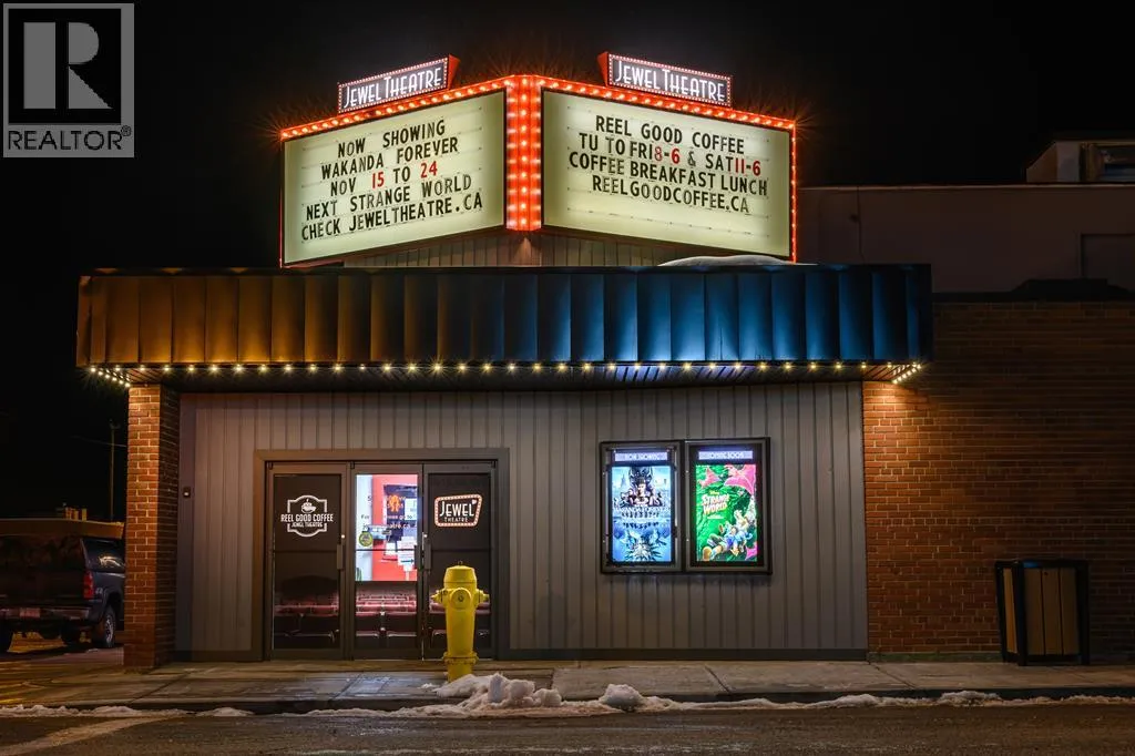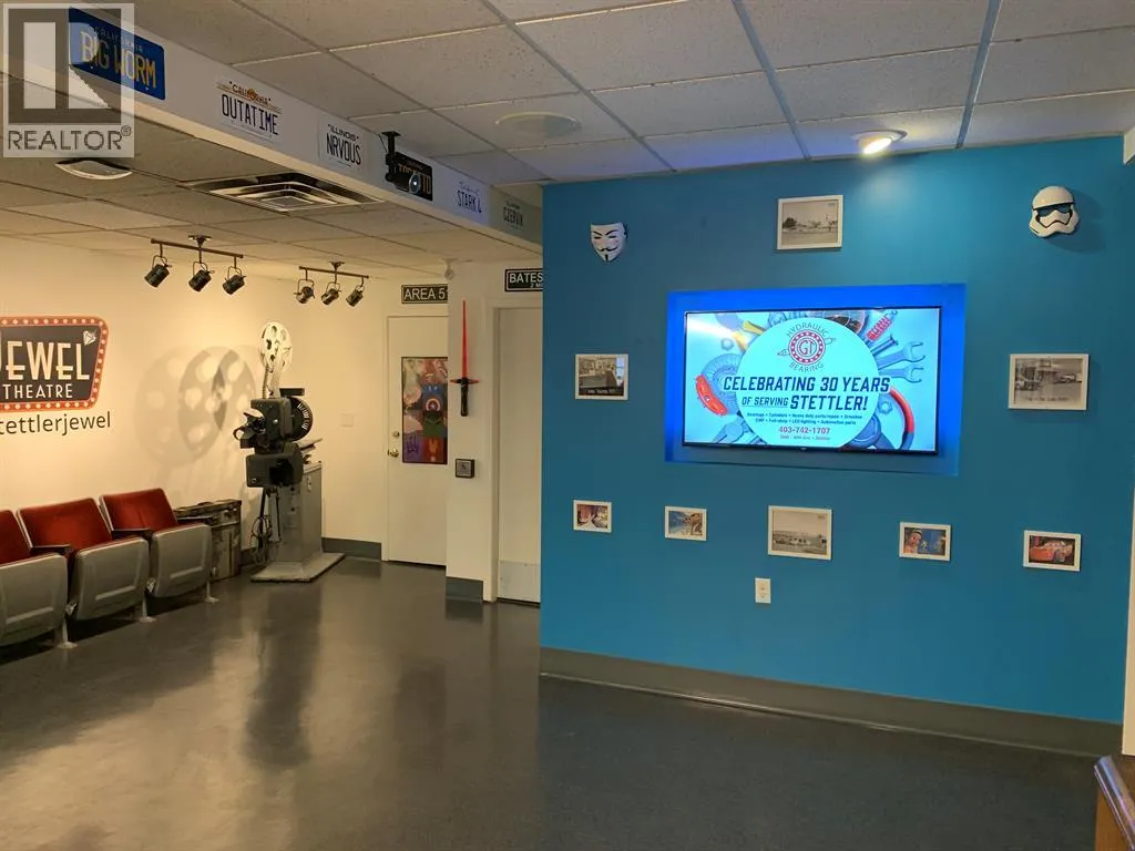 Welcome to the historic Stettler landmark, the Jewel Theatre. This beloved movie theatre has been a cornerstone of Central Alberta for 70 years. It boasts a 200-person auditorium, a beautiful, fully renovated (2021) lobby and concession area, and (of course) the iconic marquee that has been a symbol of the town for seven decades. The auditorium features a brand new, state-of-the-art-laser projector (purchased 2023), a 30ft Silver Screen, and a high-end surround sound for the ultimate movie experience. The auditorium is licensed through AGLC, has a new, modern fire alarm system and with a capacity of 203 seats, custom-built cinema tables and a 16ft âParty Table,â it is perfect for birthday parties, conferences, live music events, meetings, private functions, movies (of course!) and much more. In addition to the auditorium, you will find an approved kitchen and renovated office spaces with staff washrooms and a washer/dryer. The interior and exterior updates completed by the owners over the last three years are too extensive to list but include many electrical upgrades, a handicap washroom, new plumbing with replacement of all sewer lines, new concession countertop, new commercial flooring, new paint inside and out, a new flat roof, and a brand new popcorn machine installed May 2023. The building sits in a prime location on the busiest pedestrian corner in Stettler, with high local traffic and visibility. Everything has been done with the longevity of the theatre in mind so just turn on the lights and your business is open. Reel Good Coffee bar and assets are also included in this price! (id:27476)