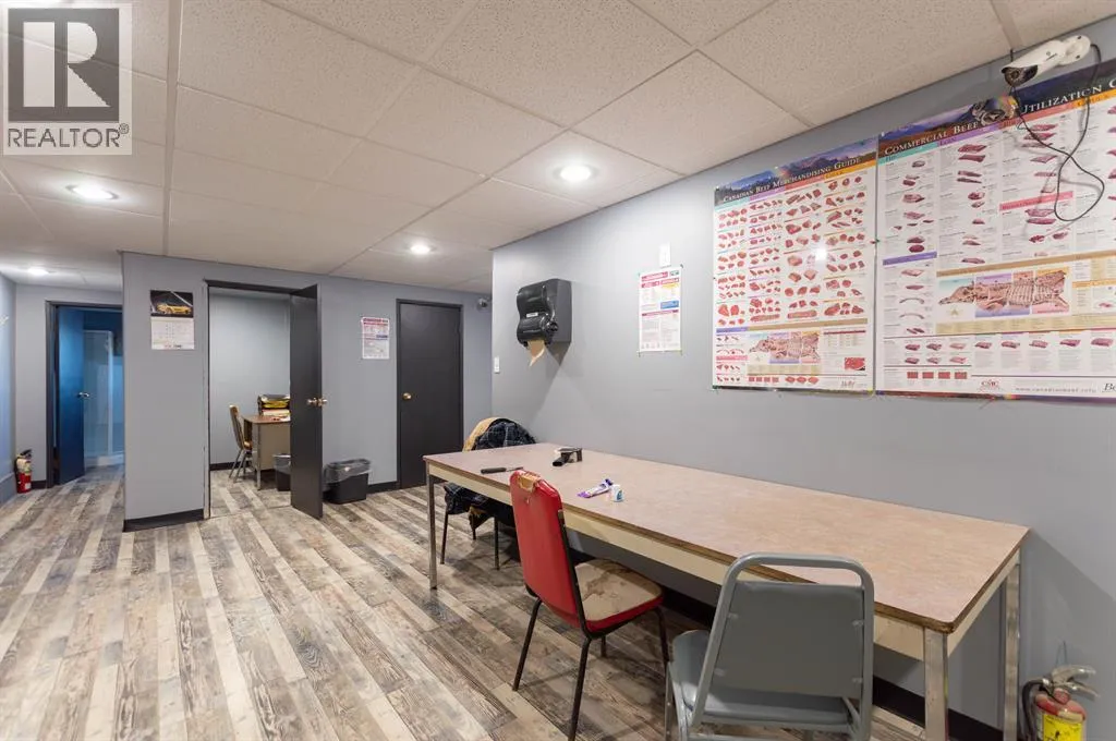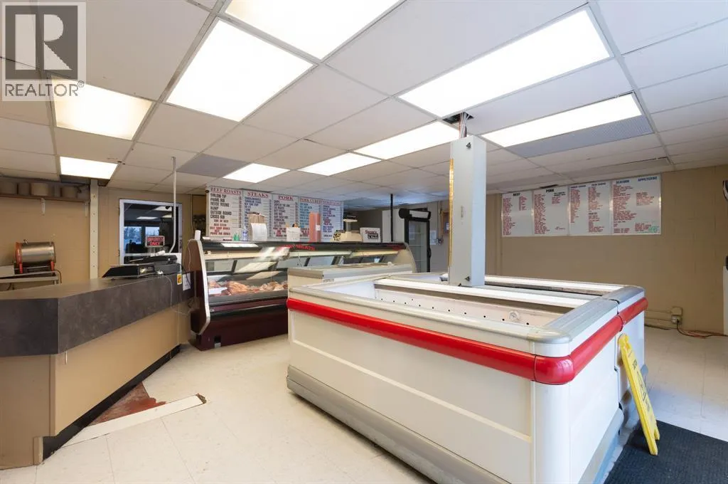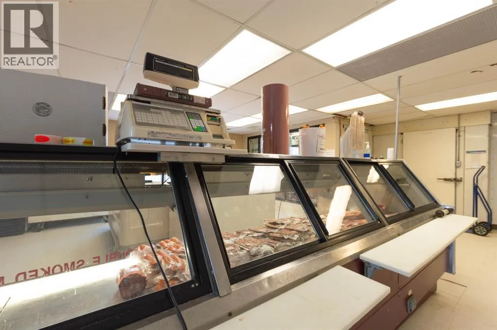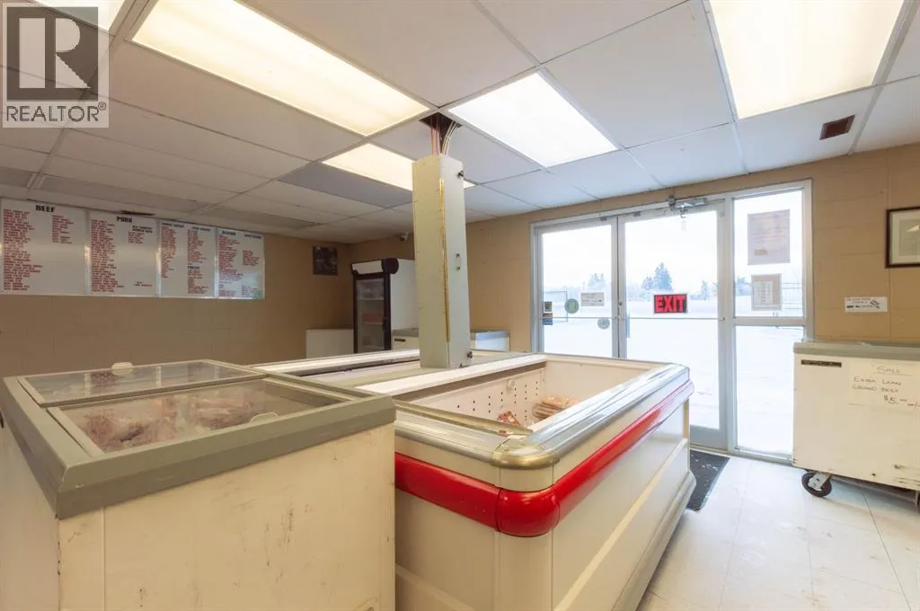 This is an incredible opportunity to own a successful meat processing business that services the wholesale and retail market. This established business is provincially inspected and licensed for processing beef, pork, bison, lamb, poultry, and wild game. Located on the east side of Stettler, the property is in a great location with high visibility and drive-by traffic. The building is 5500 sq ft and sits on a 1.0 acre, fully fenced and gated lot. There is plenty of parking out front and easy access to the back. The retail storefront of the building includes numerous display coolers and freezers and a retail counter with cash register. Upstairs there are 2 offices, a board room, storage room, and a bathroom with shower. This facility utilizes modern animal handling equipment and has a large, well-equipped processing plant which includes everything needed to operate this business. With a consistent customer base, this meat processing business is highly profitable. Stettler is a viable choice for anyone looking for a long term business opportunity. Stettler has a population of approximately 6000 people and the County of Stettler has an additional 5300 people. (id:27476)