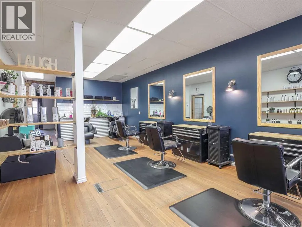 Set in the heart of Stettlerâs busy Main Street, this inviting commercial space is surrounded by the busy retail shops, cafés, and professional businesses that make up the townâs thriving core. It is a wonderful opportunity for a small business owner who wants to be part of a friendly, supportive community and grow where people love to shop local. Inside, you will find a fresh, modern interior with excellent flow and. The layout includes a welcoming lobby and reception area, a large open area perfect for client interaction or retail display, and a counter with sink and tile backsplashâperfect for creative or service-based businesses. There are three private offices and a spacious bathroom on the main floor, offering both functionality and comfort. Toward the back, an exposed brick wall adds charm and separates the storage and kitchen area from the main space. Downstairs provides plenty of additional storage and another washroom, making it easy to keep things organized and running smoothly. Behind the building, there is convenient staff parking and easy access for deliveries. Whether you are ready to open your first storefront. Looking to move your growing business into a place of your own, or searching for a solid investment opportunity, this Main Street building offers the perfect mix of character, practicality, and community connection. (id:27476)