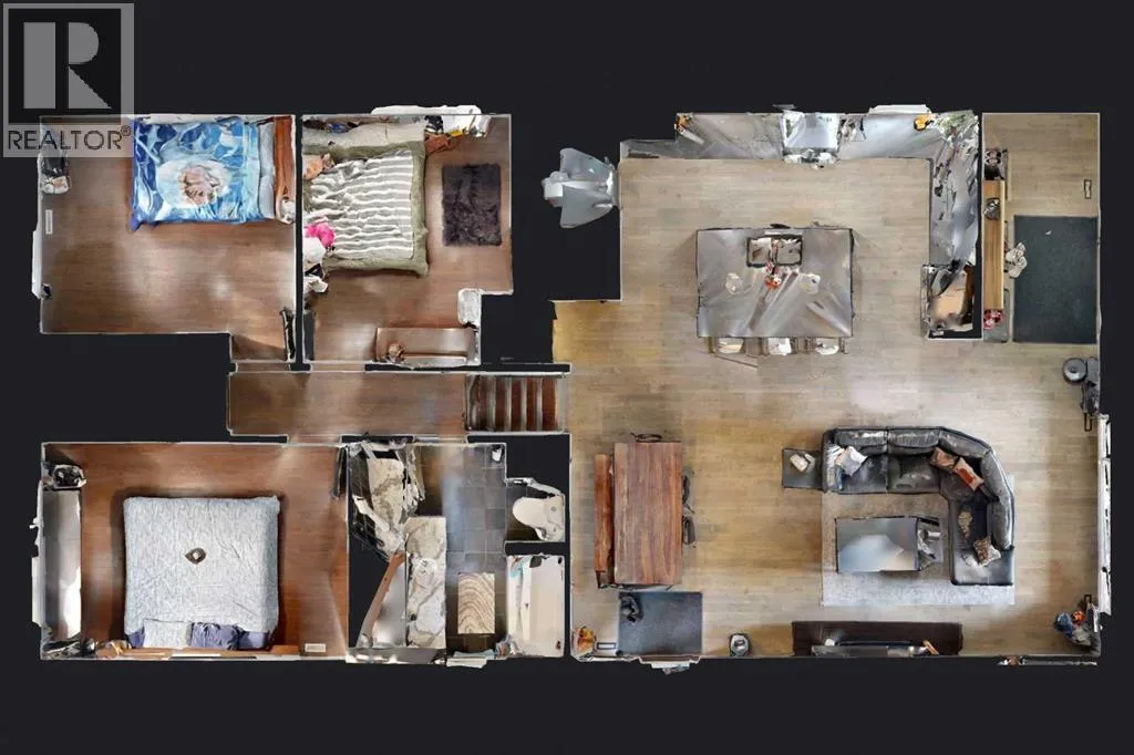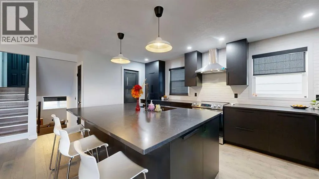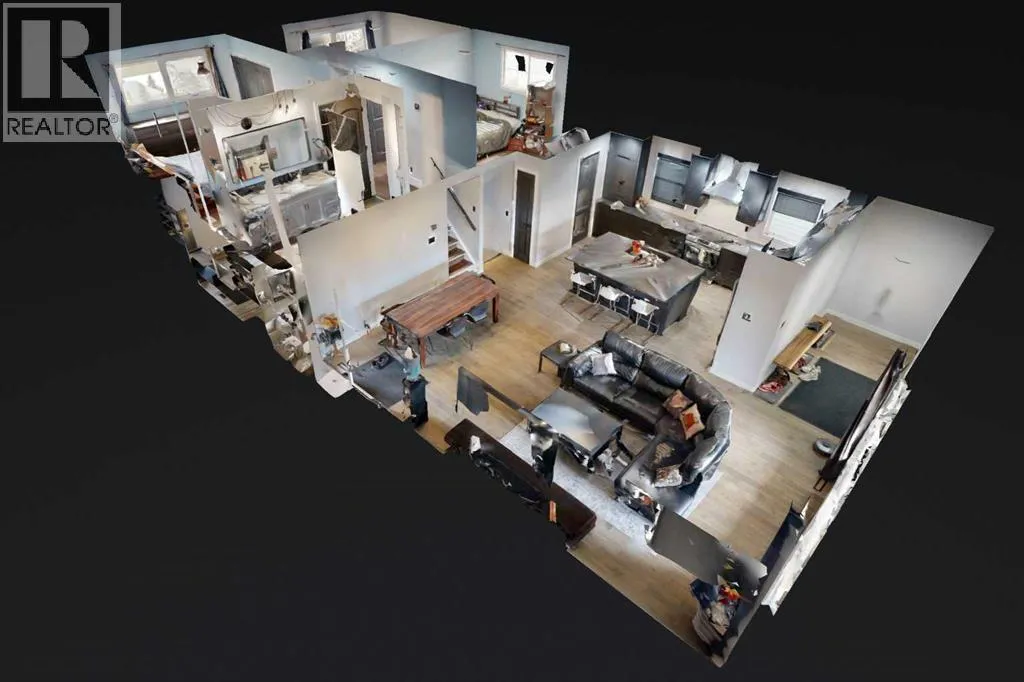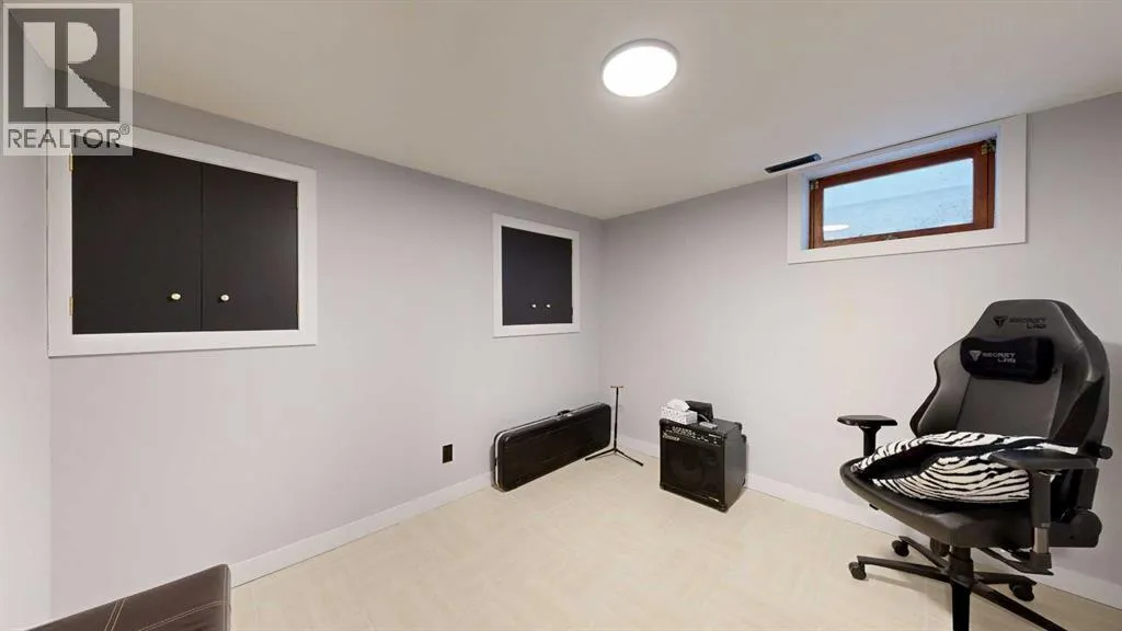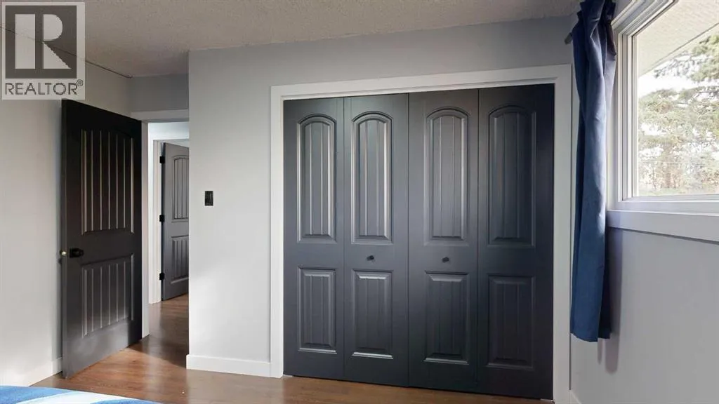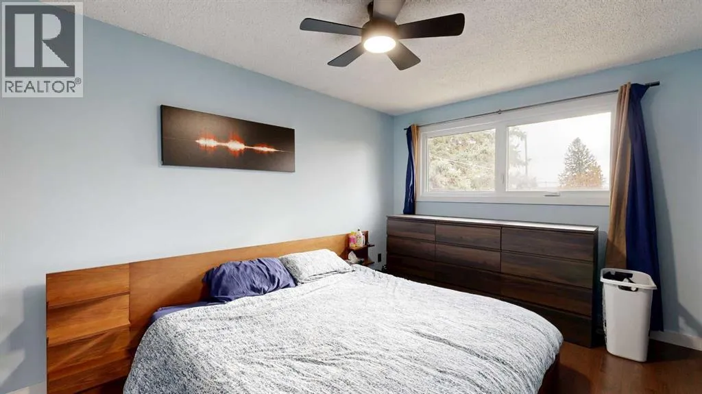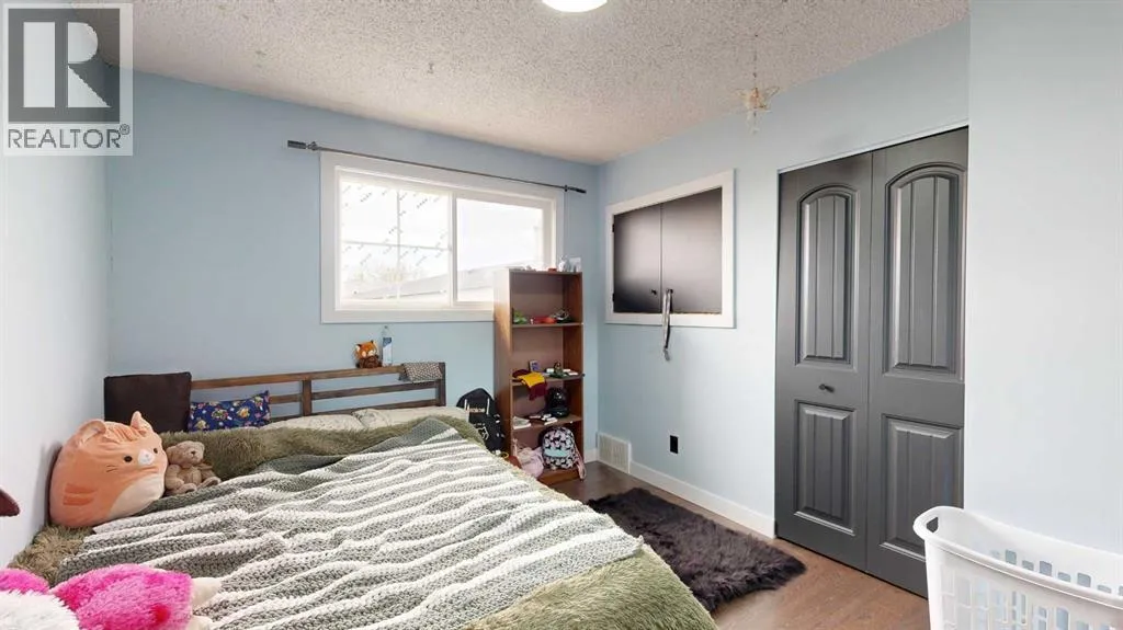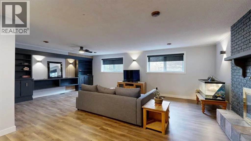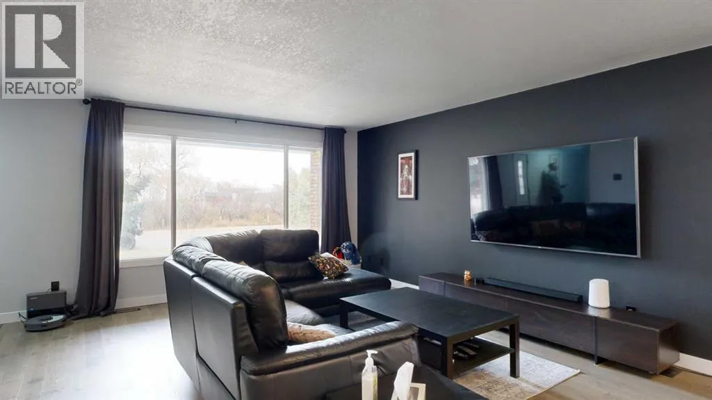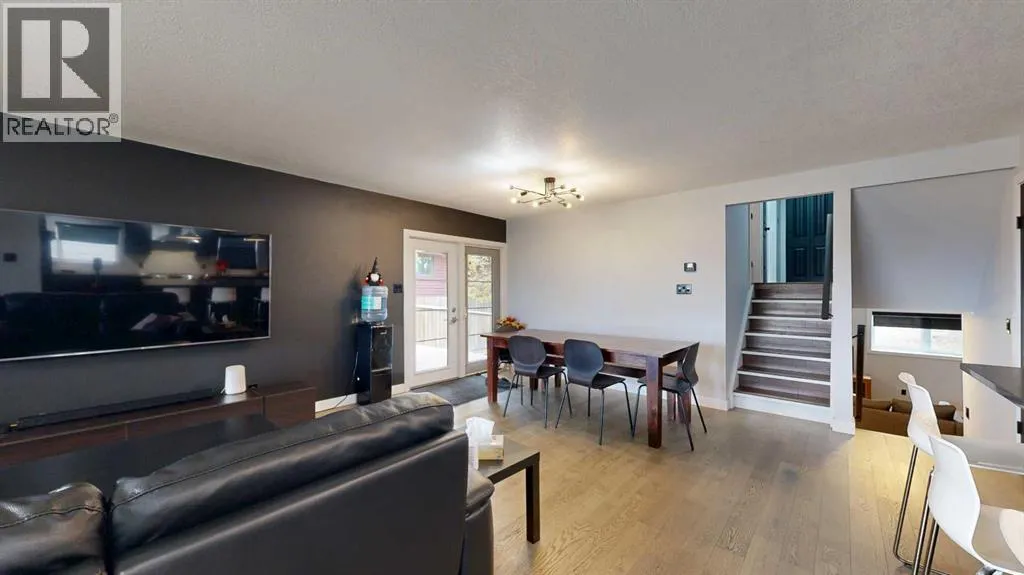 Welcome to this beautiful 4-level split home on a 0.22-acre lot near the edge of town â offering privacy, modern comfort, and a great family lifestyle. With no residential neighbors in front, you can enjoy peaceful surroundings while still being close to everyday conveniences. Step into the spacious front entrance that opens into a bright, open-concept main level with beautiful, real hardwood flooring. The living room has plenty of room for family gatherings, with a large front window that brings in natural light. The kitchen stands out with its bold, modern design â featuring sleek cabinetry, stainless steel appliances (including a wine fridge and vent hood), a pull-out coffee bar, and pantry. It flows seamlessly into the dining area, where garden doors lead to a covered deck perfect for family barbecues and summer evenings outdoors. A cement patio extends along the back of the home, creating even more space for entertaining. Upstairs, you will find three comfortable bedrooms and a modern 4-piece bathroom with custom tile and a stone countertop. One level down, the spacious family room has a fireplace and built-in wall cabinets with display shelving and lighting. This space offers endless possibilities â from a home theatre for entertaining to a cozy retreat, A second bathroom with tiled shower and pedestal sink also serves as a laundry area with front-load washer and dryer. The lowest level adds even more flexibility with two additional rooms that can be used as bedrooms, a home gym, craft space, or office â perfect for a growing family or guests. The front yard offers great curb appeal with a cement driveway leading to the attached single car garage, complete with shelving and a full wall of pegboard to keep everything neatly organized. Mature trees provide natural shade and privacy, while flower beds add a welcoming touch of color and charm. You will love the large fenced backyard with mature trees, a fenced-in raspberry patch, garden area, and extra garage with more parking at the back. This home is located in a welcoming neighborhood with a playground and community garden just down the street. The walking path across the street leads to retail shops, restaurants, and the mall â everything your family needs, just steps away. A modern, move-in ready home designed for family living â with space to grow, play, and relax. (id:27476)