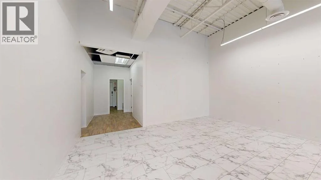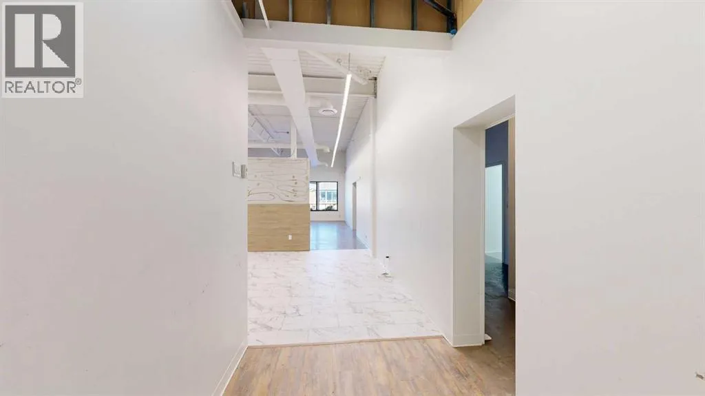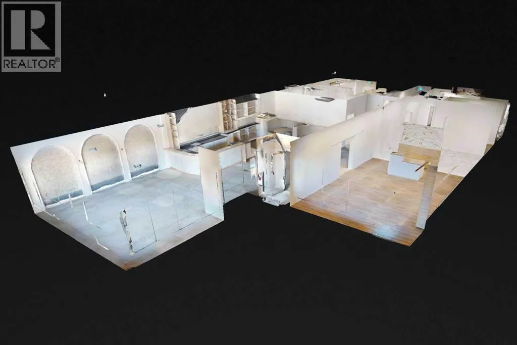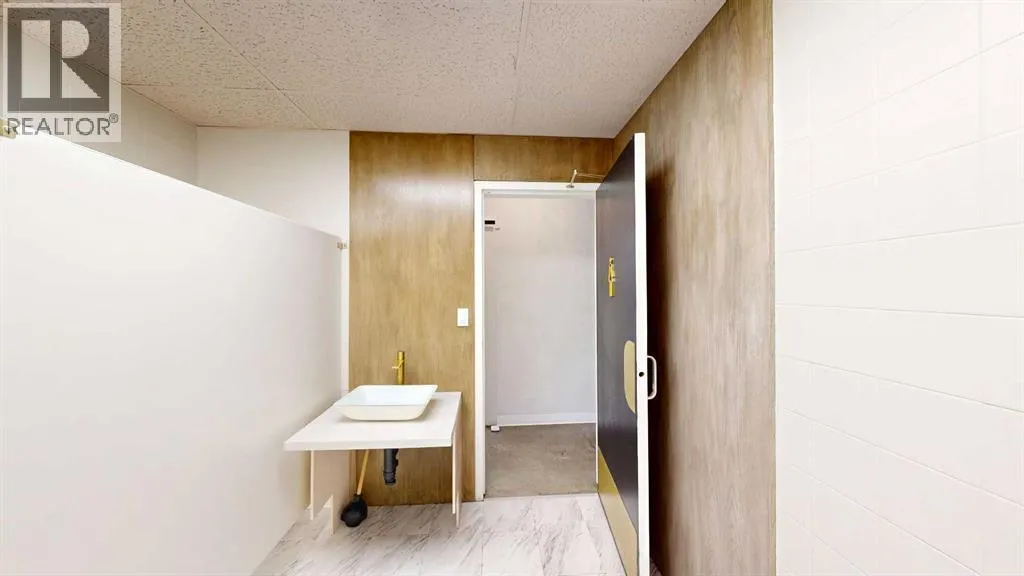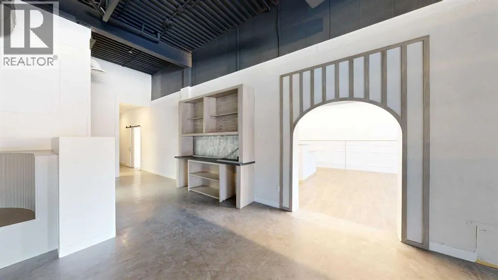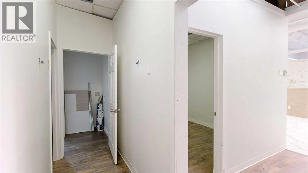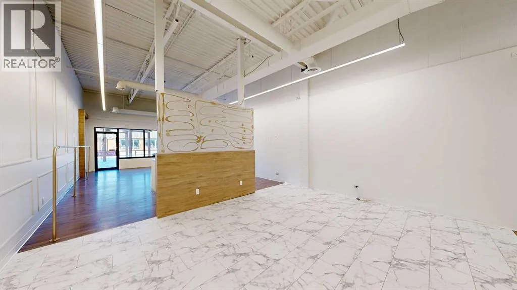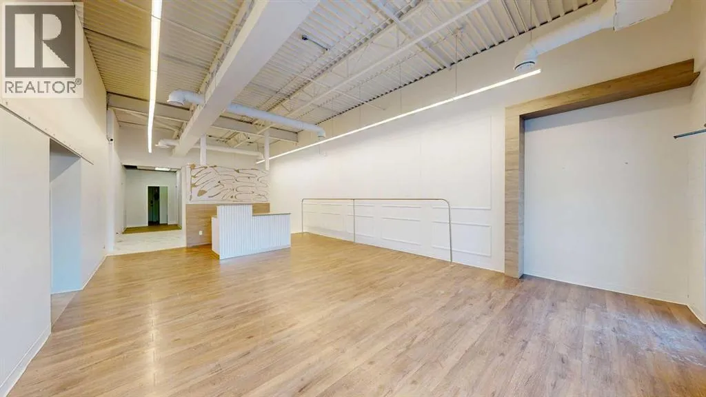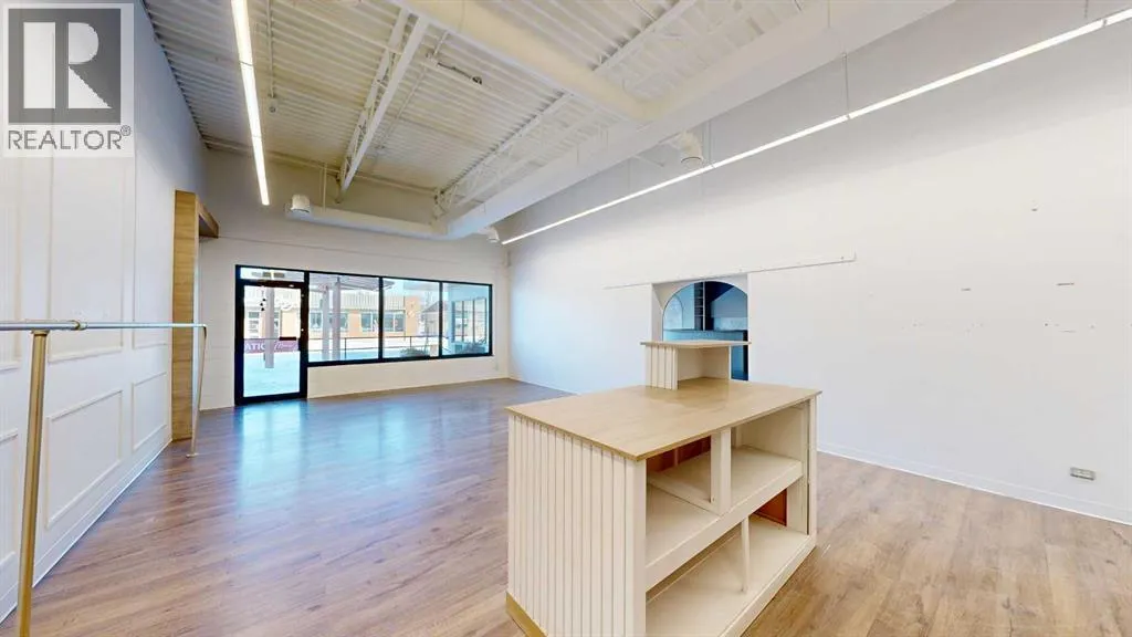 This expansive commercial property on main street in Stettler features a visually appealing and versatile layout suitable for a variety of business styles. The interior blends industrial and modern design, highlighted by exposed beams and ductwork in the high ceilings. Large windows fill the space with natural light for an open, airy feel. This property is partitioned into two main spaces, each with their own front and back doors. The south side has an open area with polished concrete floors, making the space well suited for retail or event use. There is an existing bar with stainless steel commercial sinks, plenty of counterspace, and display shelving. This space currently has two tables with built in seating. The kitchen area adjacent is ready for development. An arched doorway leads you to a bright space with warm wood-look flooring and windows along the front. This could potentially provide a comfortable setting for retail, offices, or meeting areas. Beyond this is another space with marble-look flooring for even more flexibility. There is a large office or storage room as well as a comfortable washroom just around the corner. The hall, which divides the two main spaces, has storage room with shelving and two modern washrooms. With its blend of open concept areas and private rooms, this property can easily accommodate creative studios, professional offices, retail operations, or multi-use commercial ventures. The landlord is open to demising the space with an acceptable lease. (id:27476)