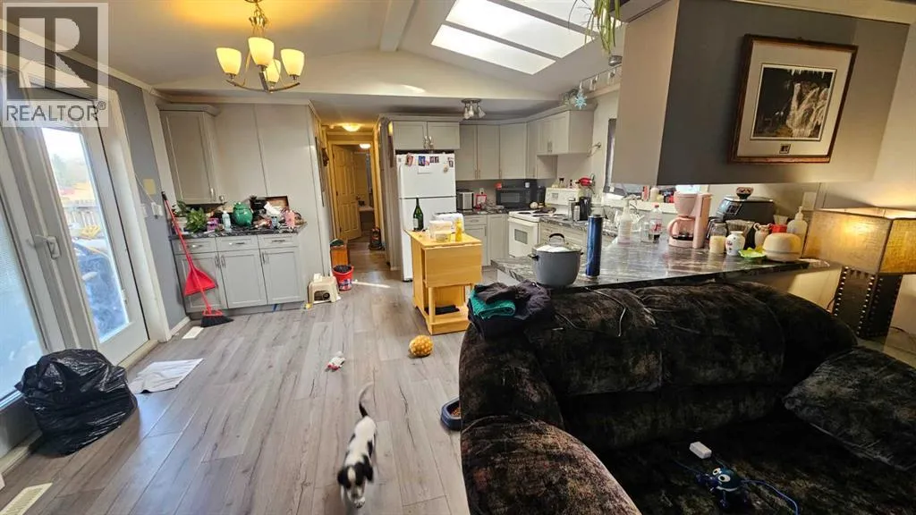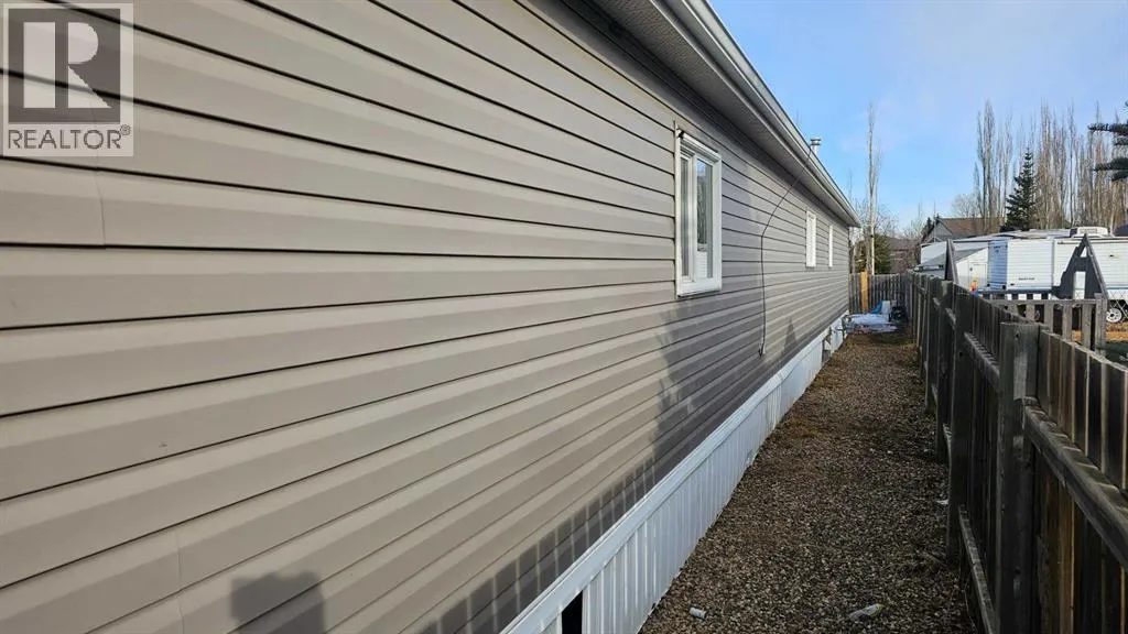 Enjoy comfort and convenience in this open concept home with three bedrooms two and a half bathrooms. Featuring vaulted ceilings and a spacious, fenced backyard in a quiet end of town on its own lot. The deck gives lots of room for morning coffees or meeting with friends. The home has vinyl siding, windows, and skirting, giving it a finished look. There are new water pipes, furnace and hot water tank 3 years ago. This might be the future home you are looking for. (id:27476)