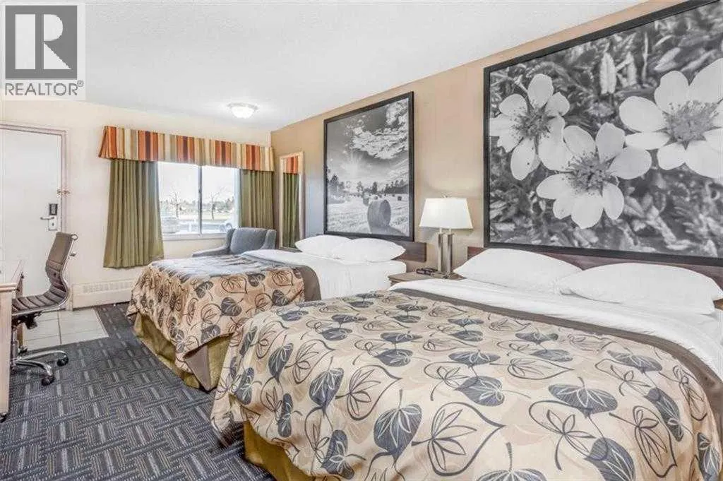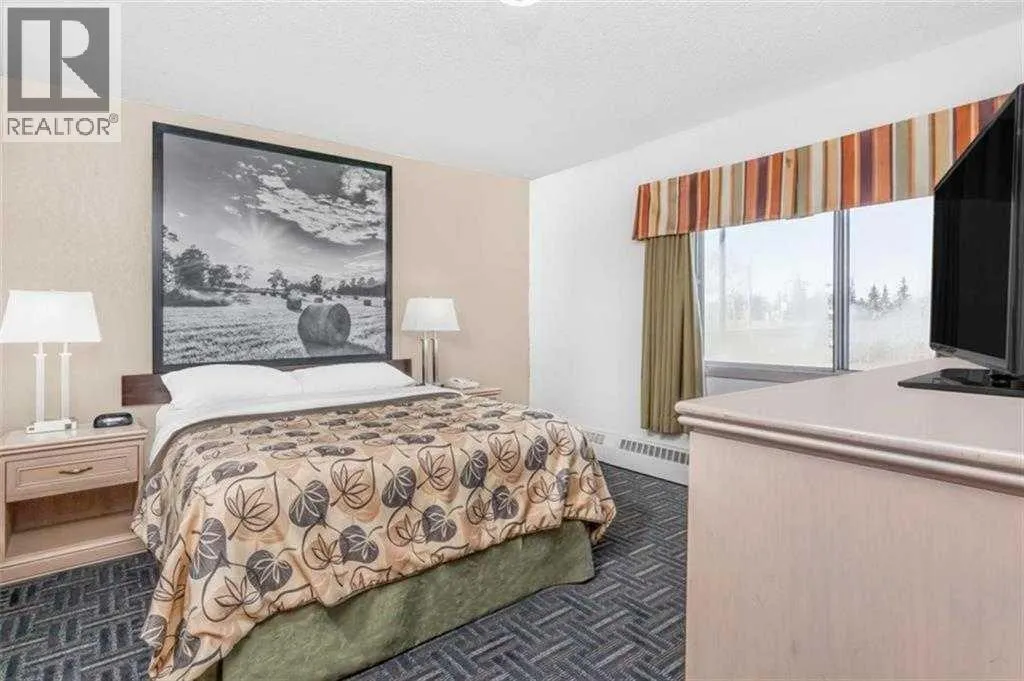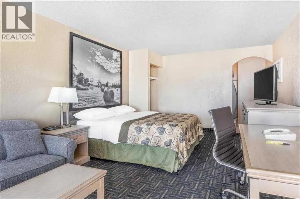 Strategically located limited-service Super 8 Hotel in Stettler, AB - The "Heart of Alberta" - This 49-key, two-storey property offers comfortable guest accommodations with a mix of Single Queen, Double Queen, King, and suite rooms featuring kitchenettes. Amenities include a complimentary breakfast room, business centre, and pet-friendly policy. Situated on 1.18 acres along Highway 56 at the south entrance to Stettler, the hotel provides excellent visibility and easy access to major routes serving Central Alberta. The stable Central Alberta market, supported by agriculture, energy, tourism, and regional events, delivers consistent demand from corporate, leisure, and drive-through travellers. Well-maintained and internationally branded, this fee-simple asset presents a compelling opportunity for investors seeking a turn-key hospitality property with strong upside potential through targeted capital improvements and management enhancements. A new metal roof was installed on both the hotel and restaurant approximately 5 years ago (valued at over $150,000)There is a free-standing leased restaurant/lounge located on the same lot. (id:27476)