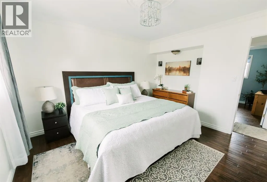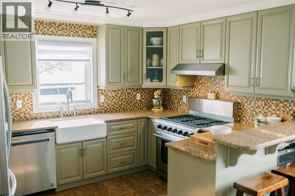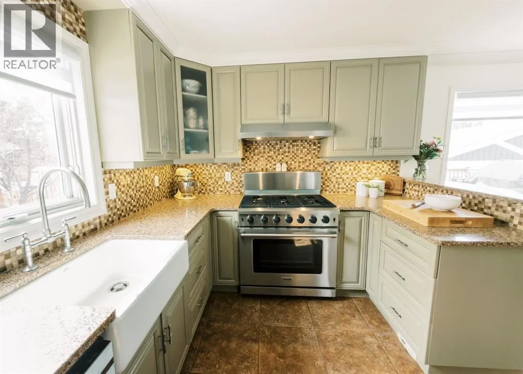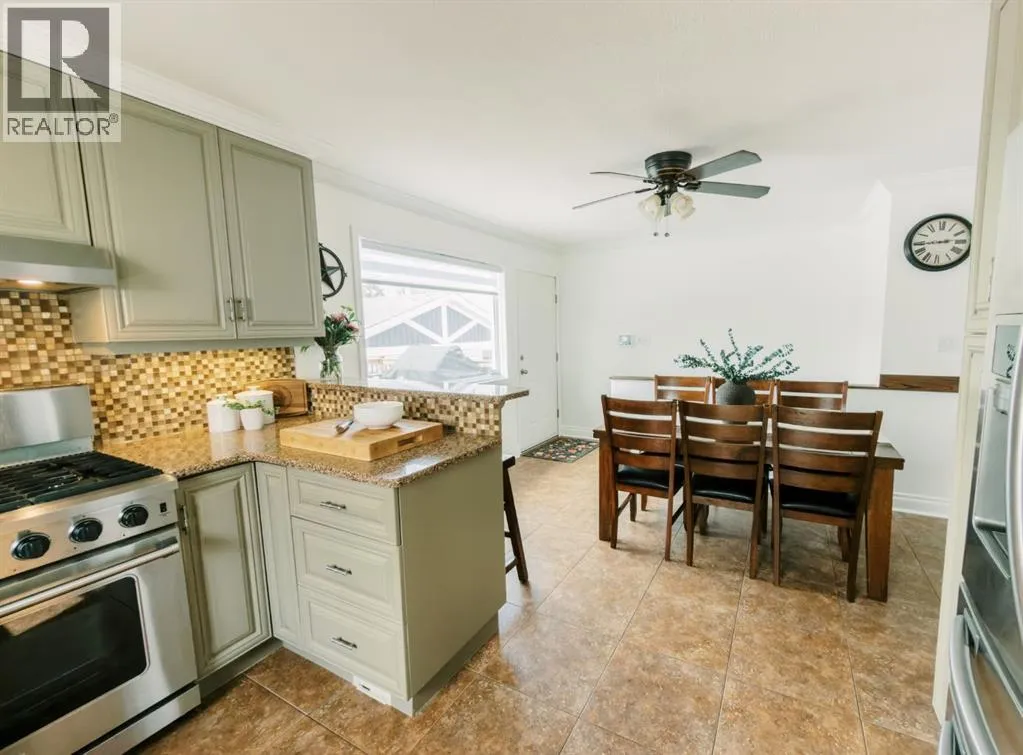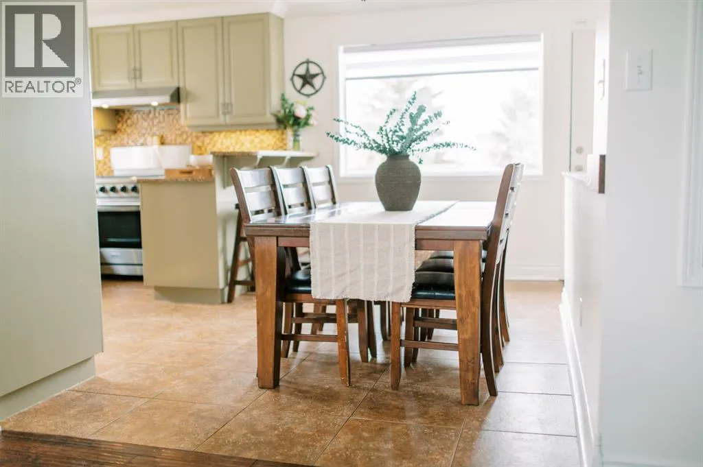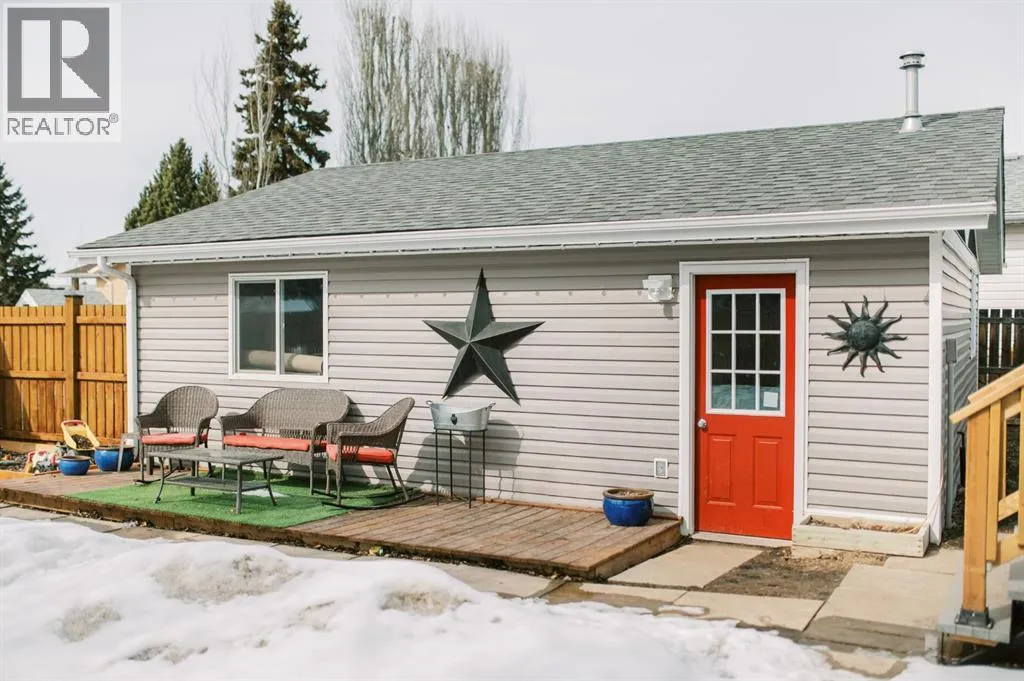Welcome to this well-maintained and thoughtfully updated bungalow offering space, functionality, and a great location in Stettler. With 5 bedrooms and 2 bathrooms, this home is ideal for families needing room to grow.Step inside to a bright and inviting main level featuring RICH, DARK OAK HARDWOOD flooring and PORCELAIN TILE, with a good portion of the main floor FRESHLY PAINTED for a clean, updated feel. The beautifully appointed kitchen showcases PAINTED MAPLE CABINETRY with soft-close hinges and convenient pull-outs, along with GRANITE COUNTERTOPS, KOHLER FARMHOUSE SINK, a CHEFS GAS RANGE, and a CONVENIENT BEVERAGE FRIDGEâperfect for those who love to cook and entertain. The main bathroom has also been tastefully updated and includes GRANITE COUNTERTOPS, a SOAKER TUB, WALK-IN SHOWER, and a large vanity.The basement offers an OPEN AND SPACIOUS layout with plenty of flexibility. A dedicated MEDIA ROOM comes complete with PROJECTOR, LARGE SCREEN, and SPEAKERS, creating the perfect space for movie nights or entertaining. This room could also function as a SIXTH BEDROOM if desired. A GAS FIREPLACE adds warmth and comfort to the lower level. Additional updates throughout the home include BRAND NEW PEX PLUMBING, UPDATED LIGHTING, and CENTRAL AIR CONDITIONING for year-round comfort.Step outside to enjoy the BEAUTIFULLY LANDSCAPED BACKYARD, complete with a deck featuring a newer railing (2025), RAISED VEGETABLE GARDENS, and established PERENNIAL BEDS. Youâll also find mature PRODUCING APPLE TREES and RHUBARB, adding to the charm and functionality of the outdoor space. The yard is fully fenced (2023)and includes RV PARKING on the side.The front porch was COMPLETELY REBUILT IN 2025, and new siding in 2019 adds to the homeâs curb appeal, while the 26 x 24 DOUBLE DETACHED HEATED GARAGE offers excellent space for parking, storage, or a workshop. Appliances are includedâmaking this a move-in ready opportunity with plenty of value. (id:27476)