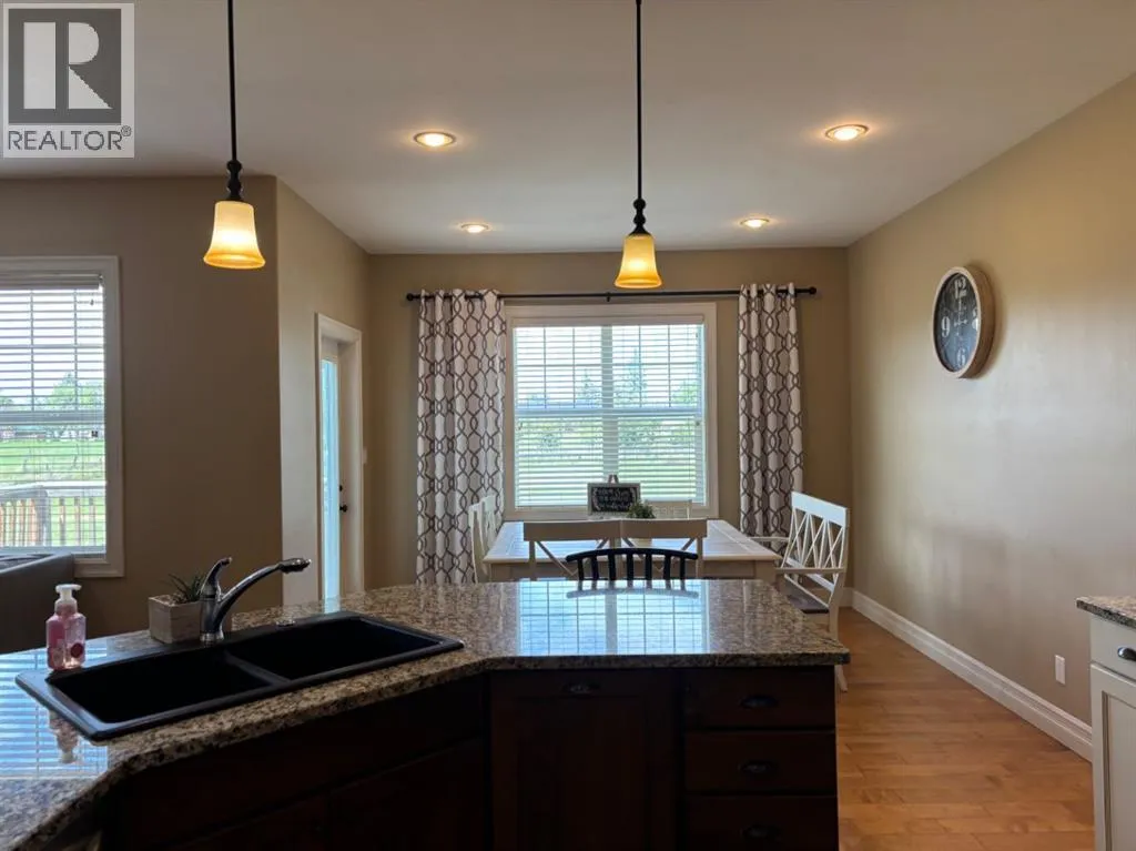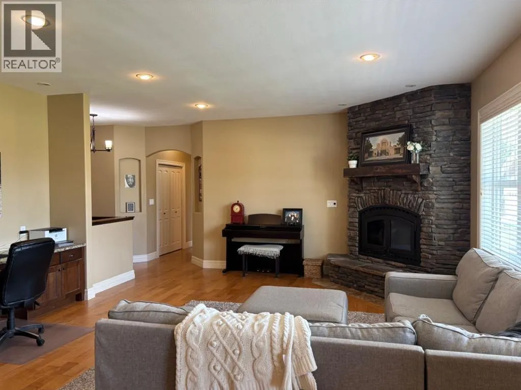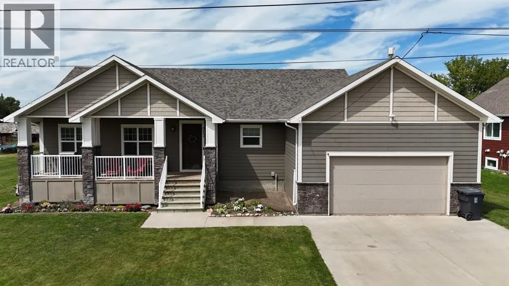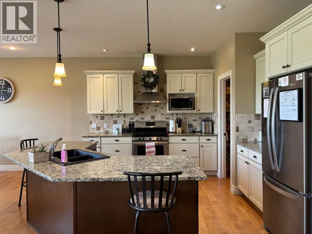 A Beautiful Family Home in the village of Stirling! This custom built home features 9â ceilings up and down, a large tiled mud room shared by both the front entrance and the garage, a MASSIVE pantry, a wood-burning fireplace that takes up to 30â logs and can pump heat down into the basement, a built-in granite computer desk in the living room, a conveniently placed 3 piece bathroom from the garage and a laundry room just off the kitchen, a large downstairs family room great for teenage get-togethers or family gatherings, a natural gas heated garage with sturdy built-in storage shelves, a perfect front porch that faces southwest and a view of Chief Mountain and the Rockies, and so much more! With 3 bedrooms up and 4 bedrooms down, an open livingâkitchenâdining area, and a large front and back yard to enjoy, this home is perfect for a family looking to enjoy the Community of Stirling. Come check it out! (id:27476)
