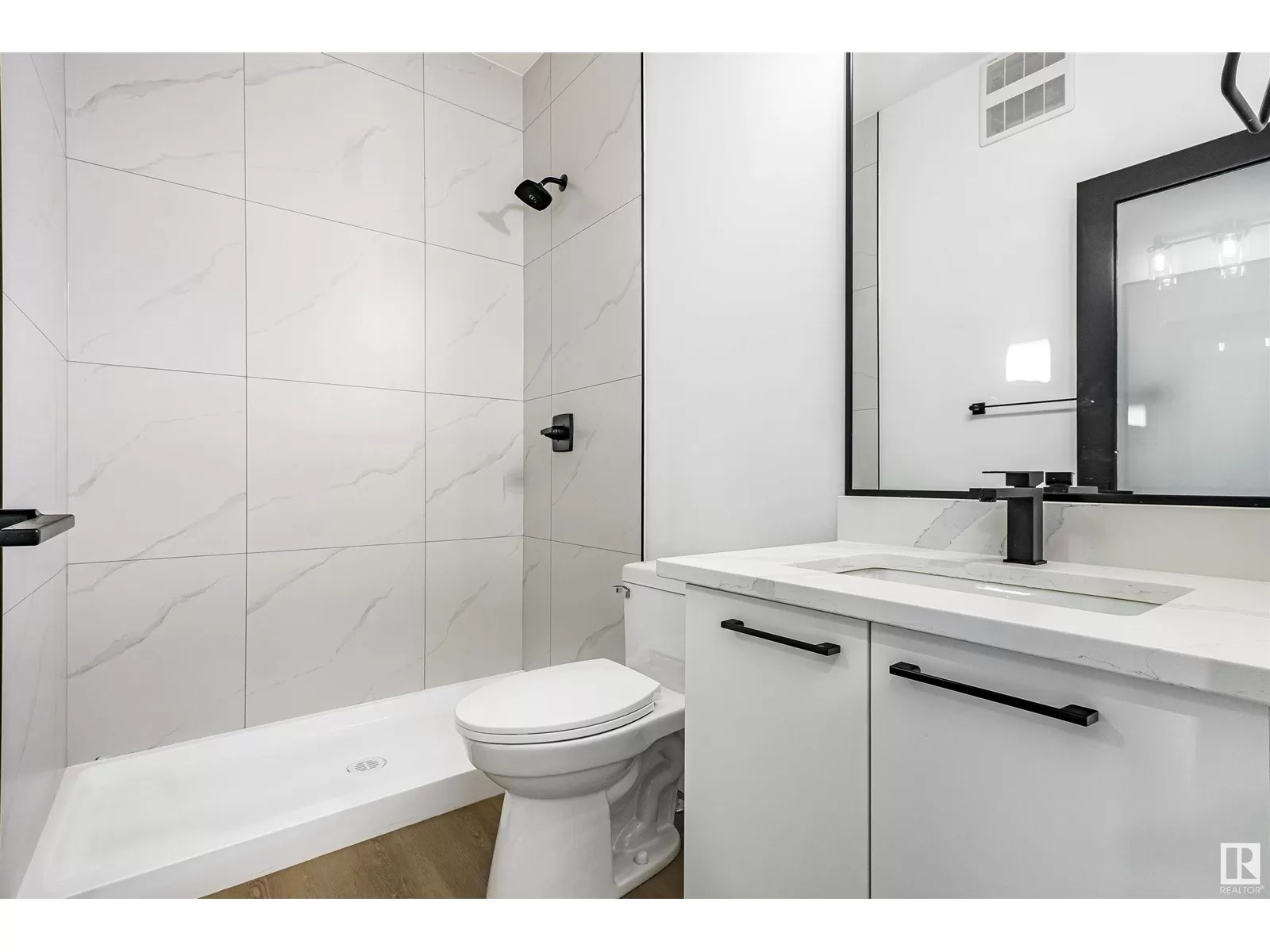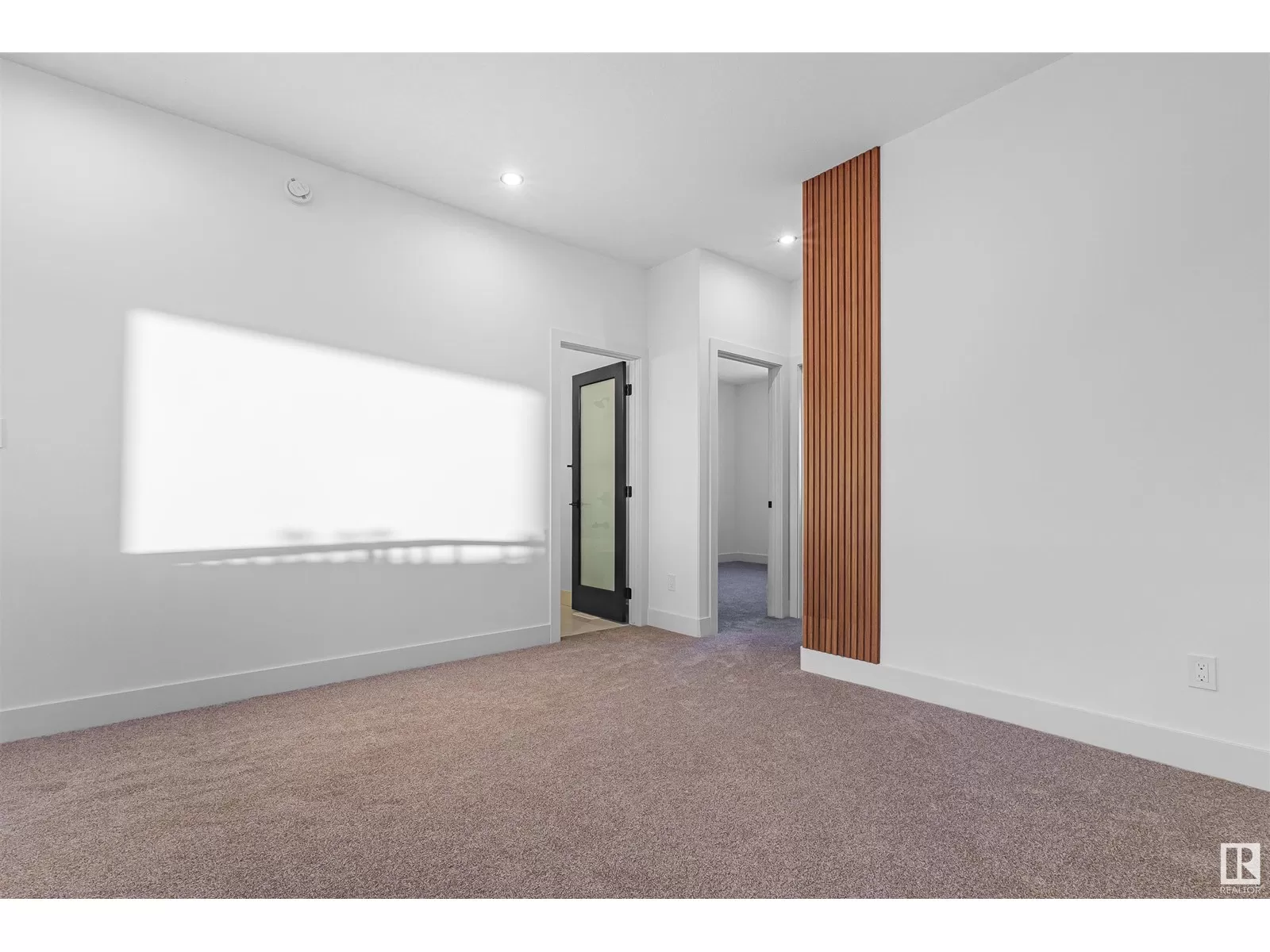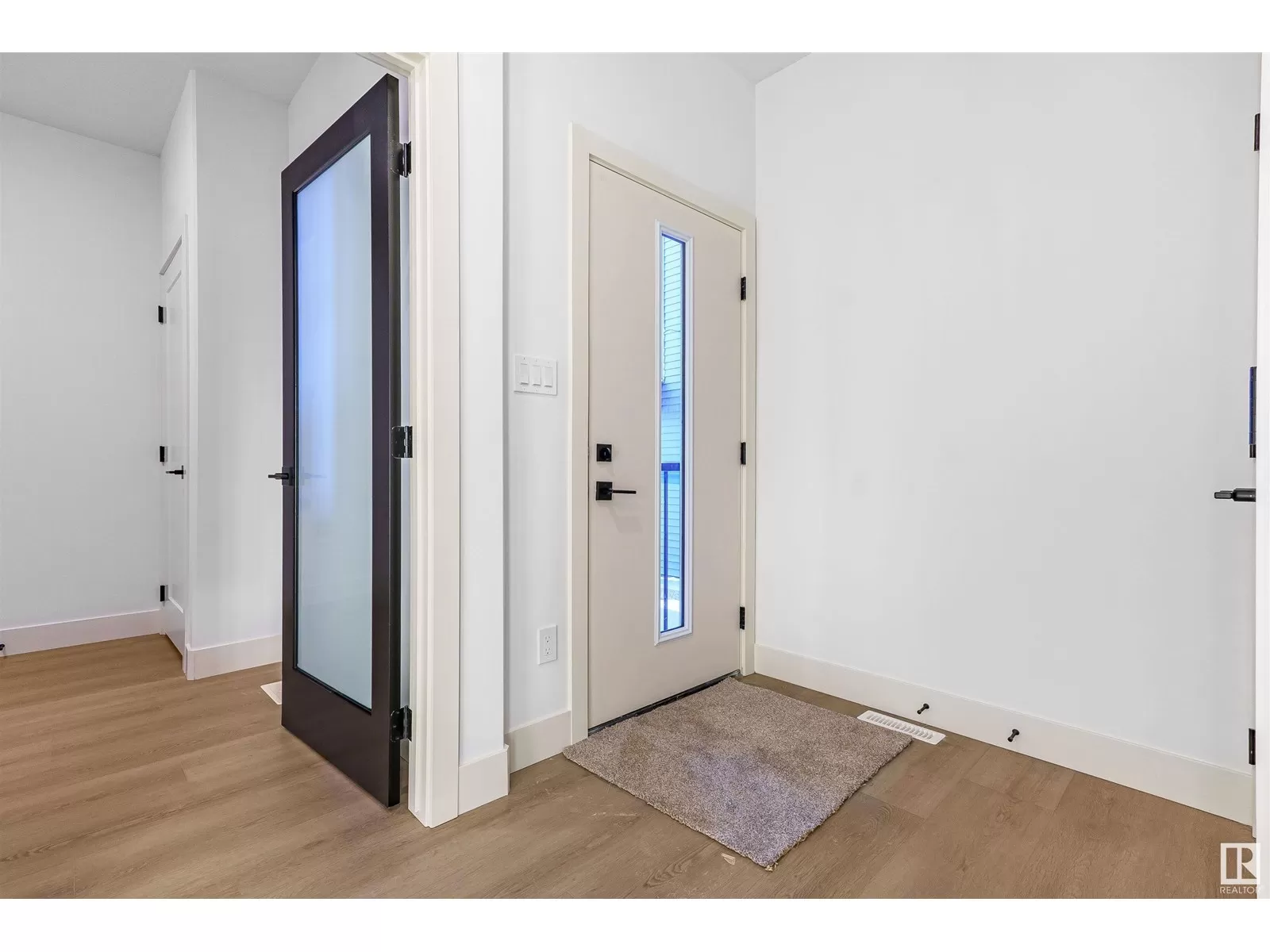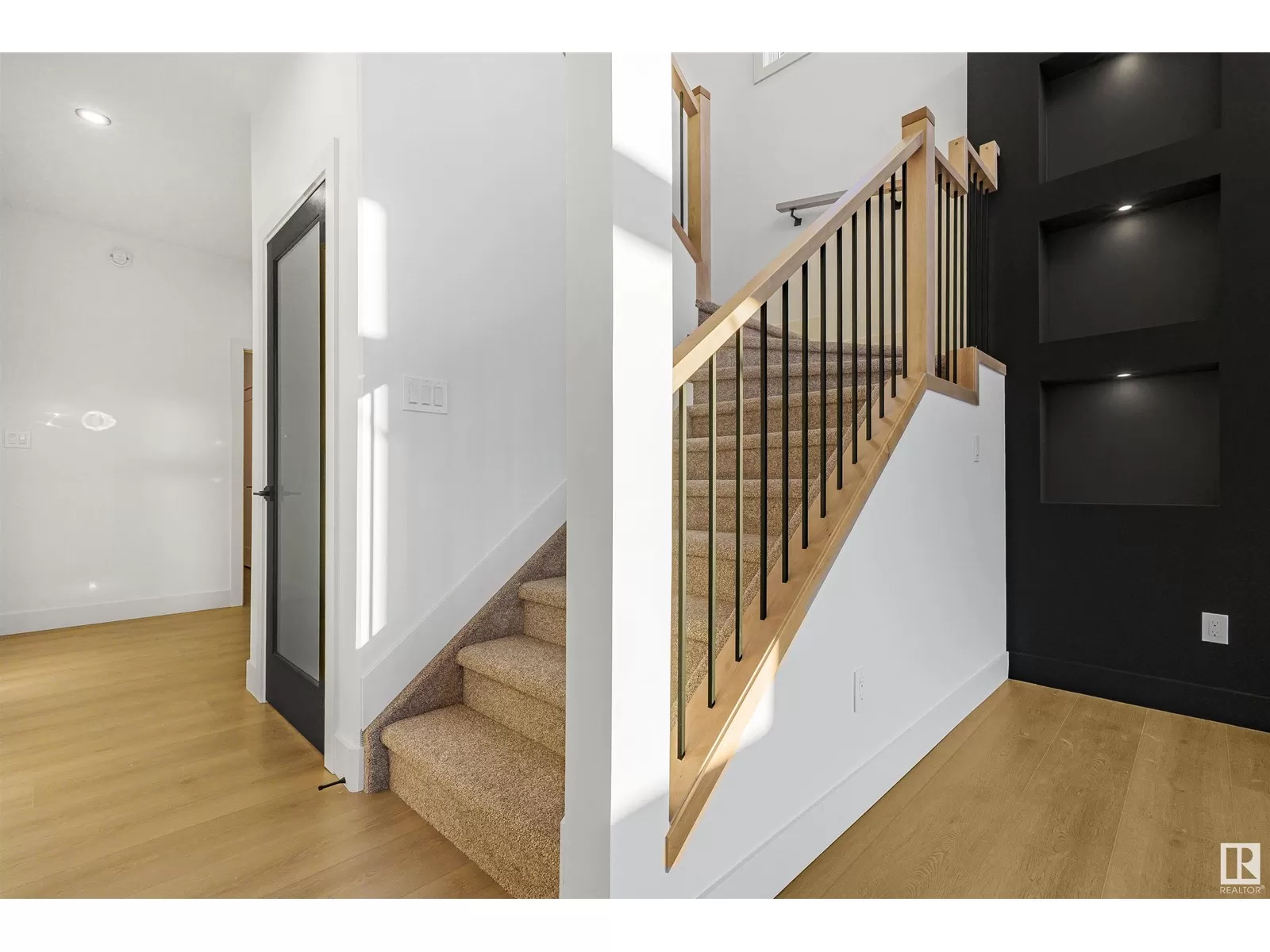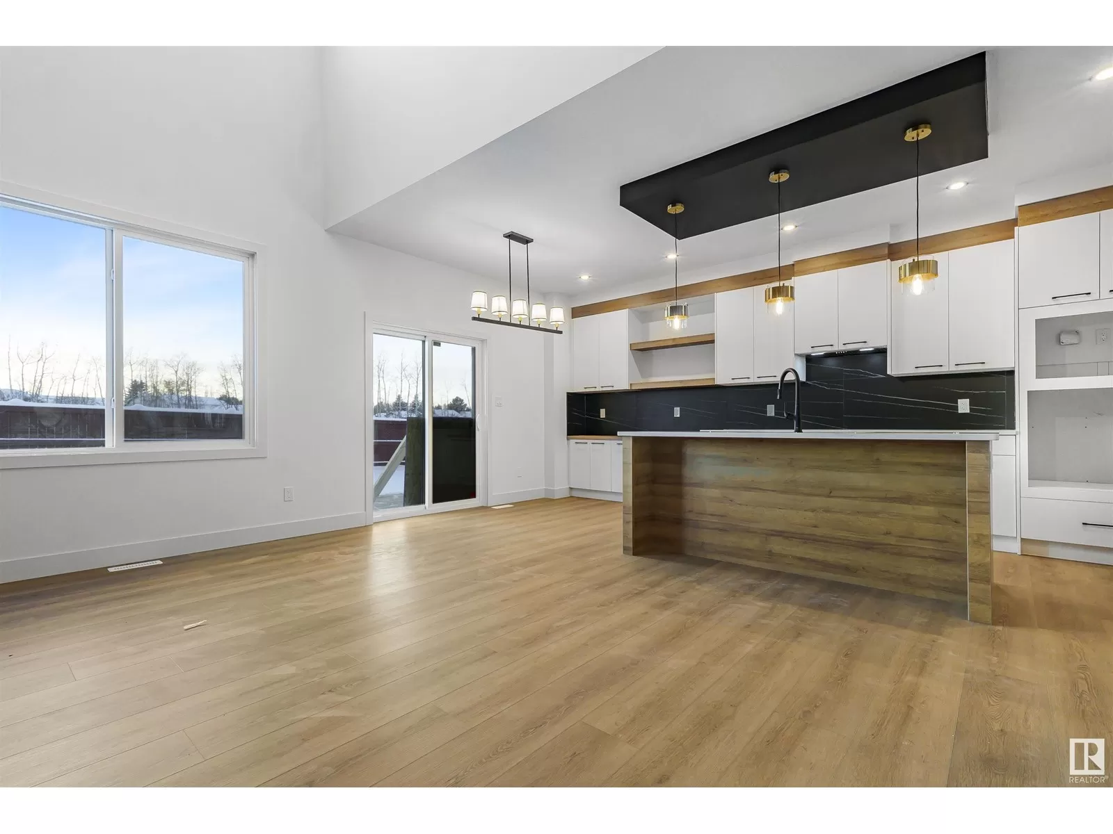 DOUBLE ATTACHED GARAGE- HALF DUPLEX . Main floor entrance leads to Living Area with feature wall and then down the hall OPEN TO ABOVE Living Area with Electric fireplace , Stunning kitchen with modern cabinetry, quartz countertops, center island and spacious pantry. Spacious dinning nook with lots of sunlight. Main floor bedroom with closet & full bathroom. Stairs lead to upper level bonus room. Primary bedroom with 5piece ensuite/ spacious walk in closet/ Featured ceiling & wall design. two more bedrooms down the hall with 4 piece bath. Laundry is also conveniently located on upper level. Unfinished basement with separate entrance waiting for your personal finishes. (id:27476)