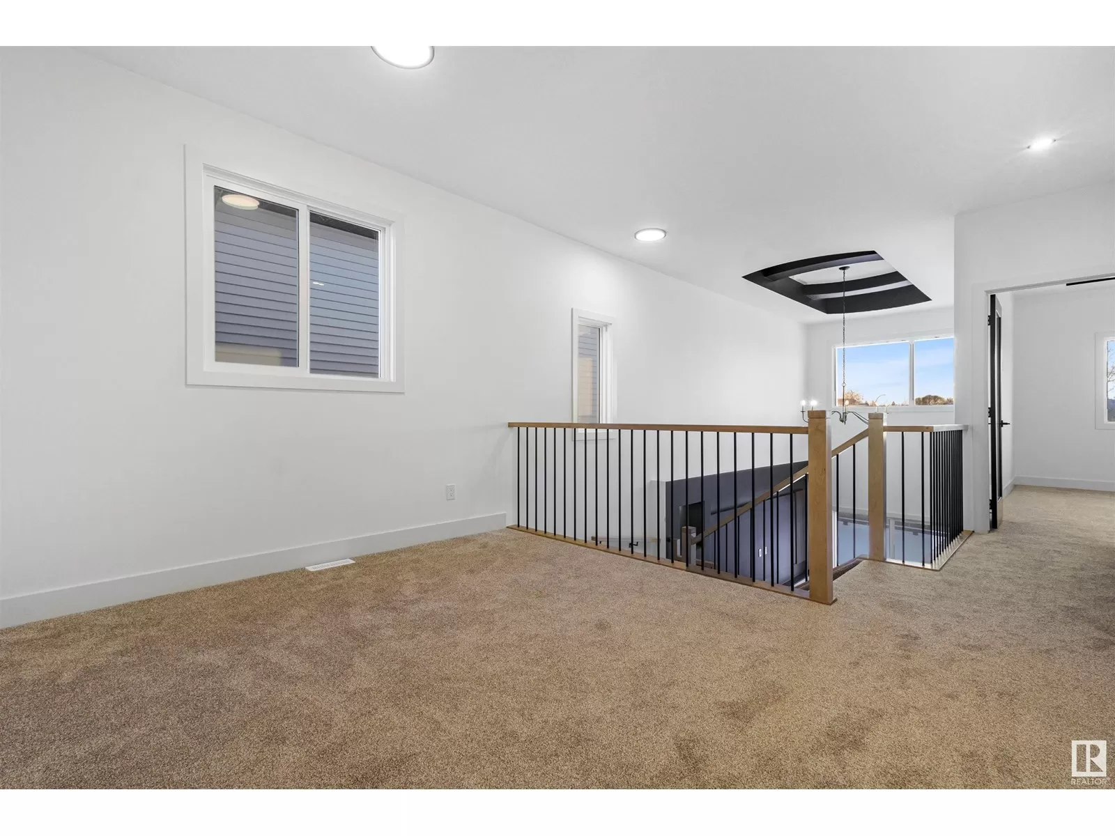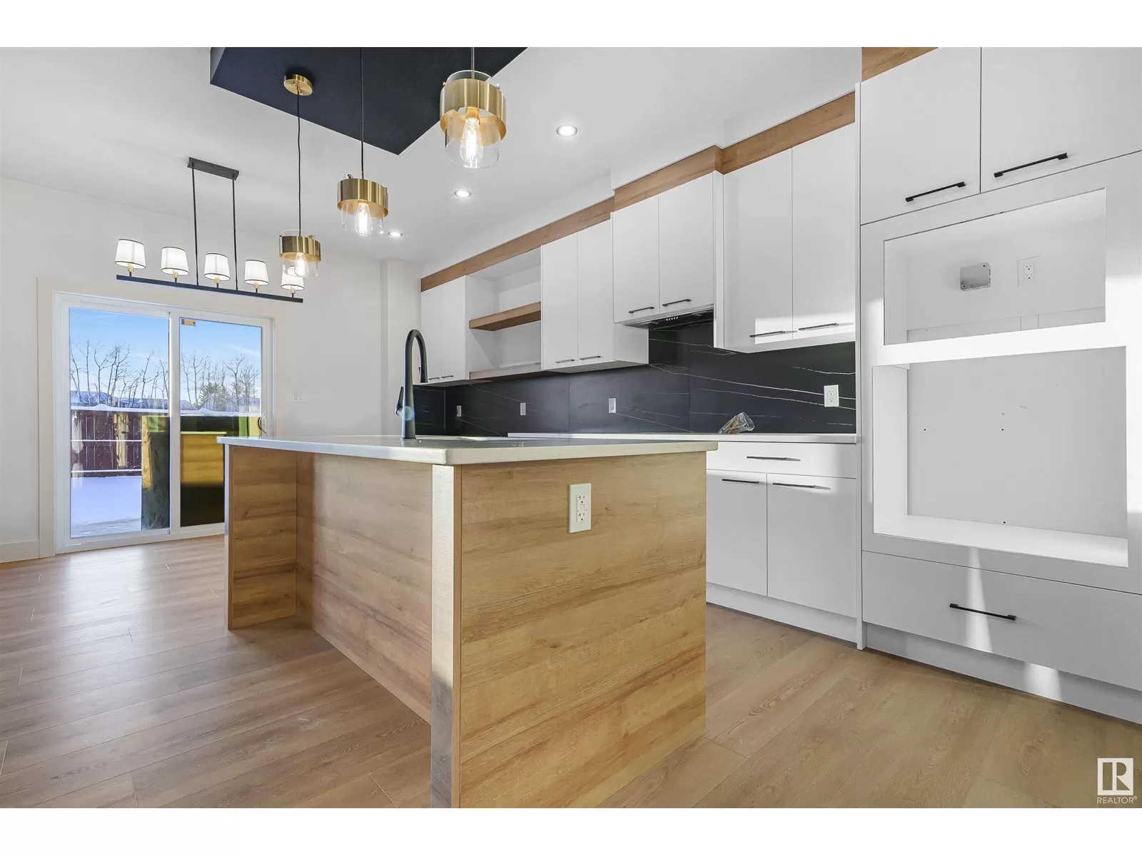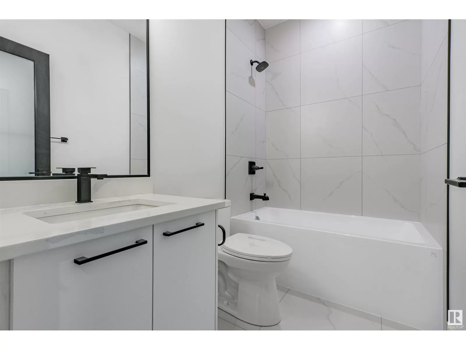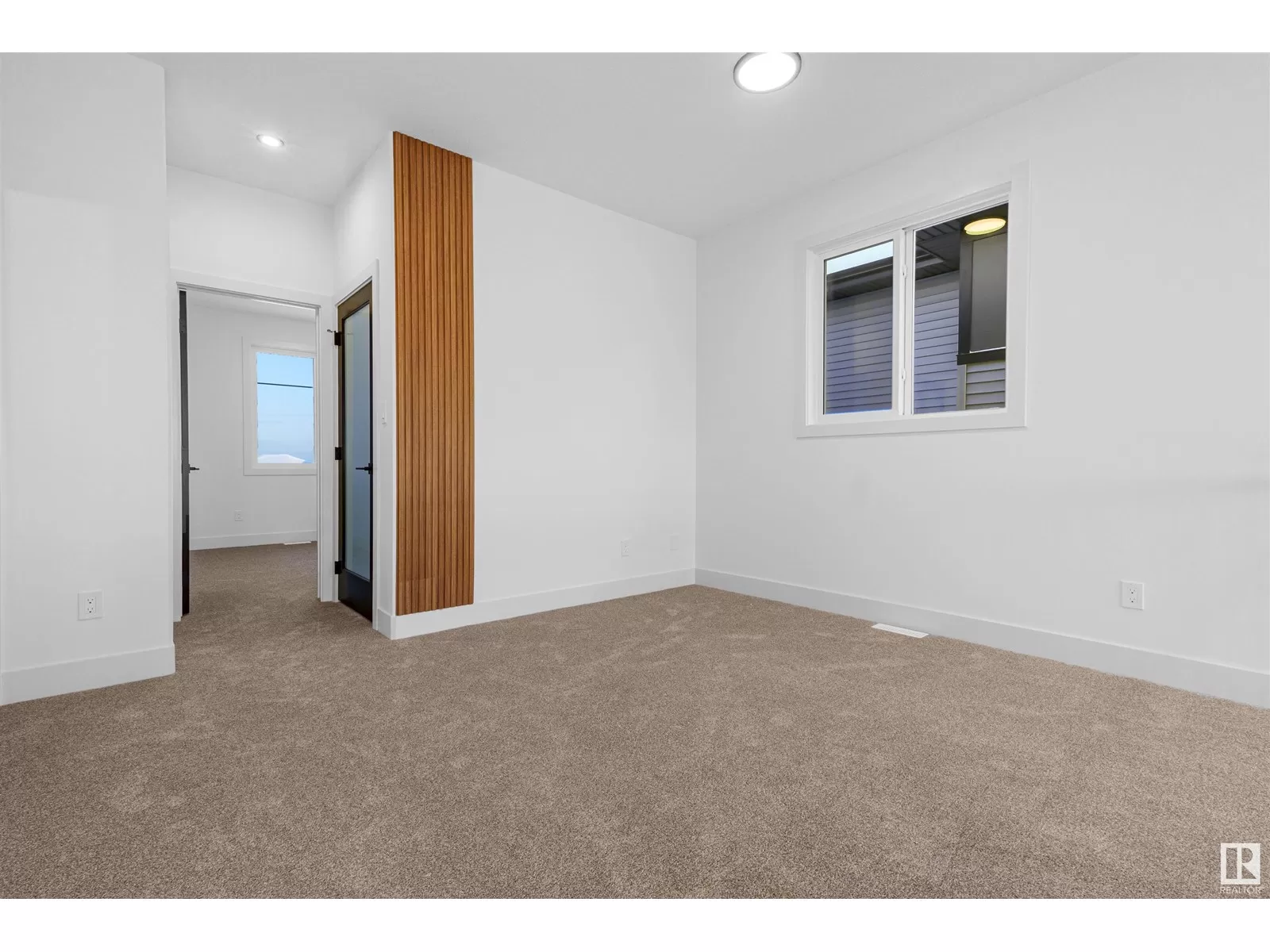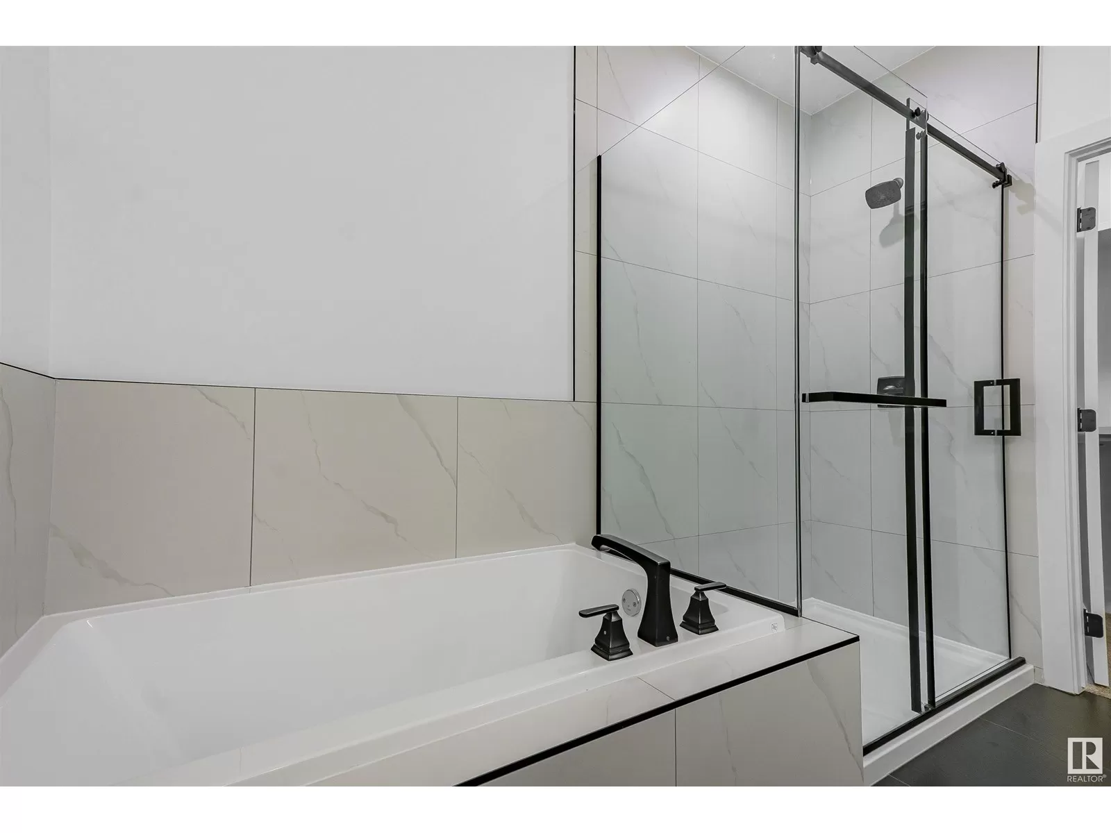 DOUBLE ATTACHED GARAGE- HALF DUPLEX . Main floor entrance leads to Living Area with feature wall and then down the hall OPEN TO ABOVE Living Area with Electric fireplace , Stunning kitchen with modern cabinetry, quartz countertops, center island and spacious pantry. Spacious dinning nook with lots of sunlight. Main floor bedroom with closet & full bathroom. Stairs lead to upper level bonus room. Primary bedroom with 5piece ensuite/ spacious walk in closet/ Featured ceiling & wall design. two more bedrooms down the hall with 4 piece bath. Laundry is also conveniently located on upper level. Unfinished basement with separate entrance waiting for your personal finishes. (id:27476)