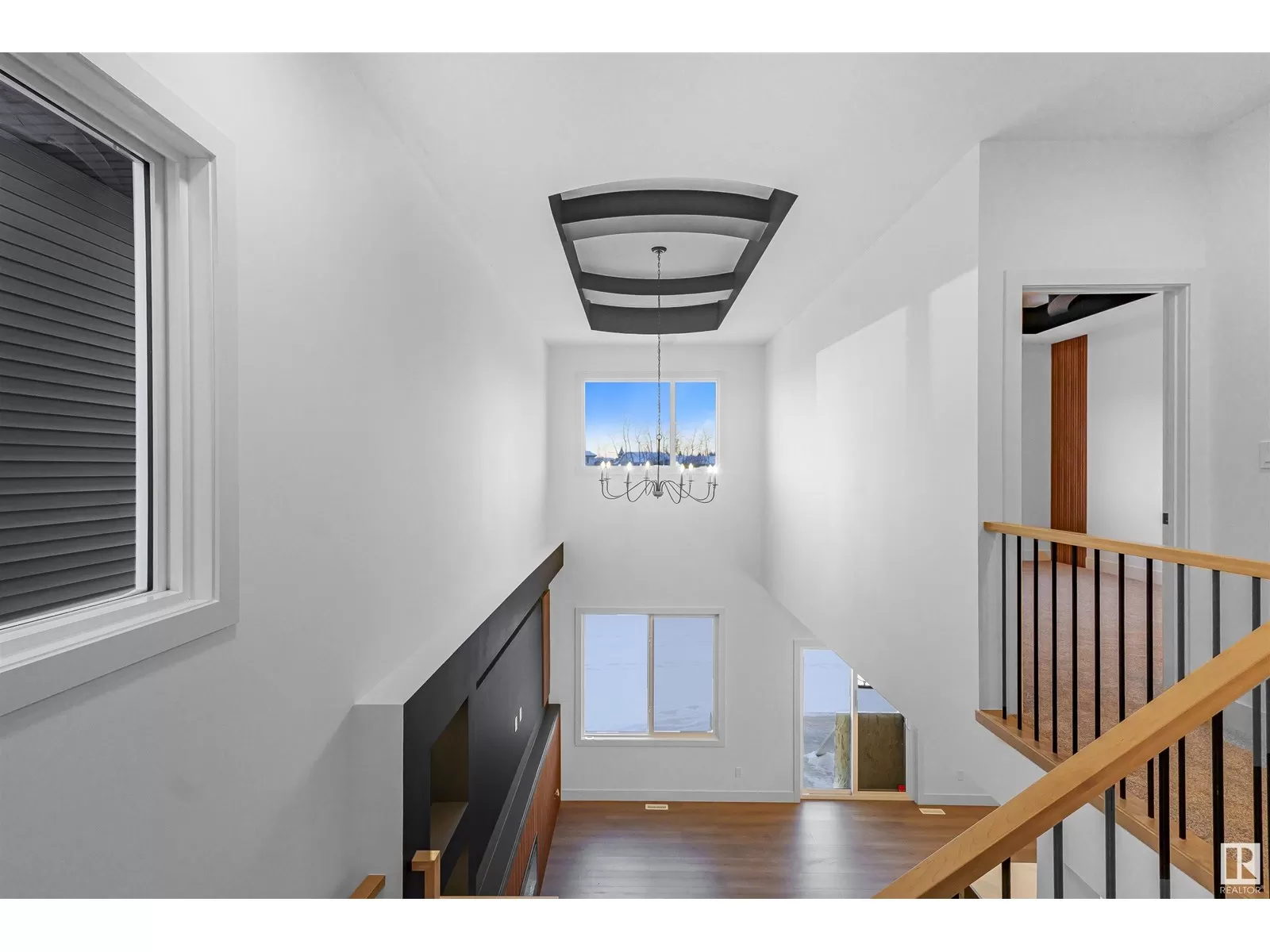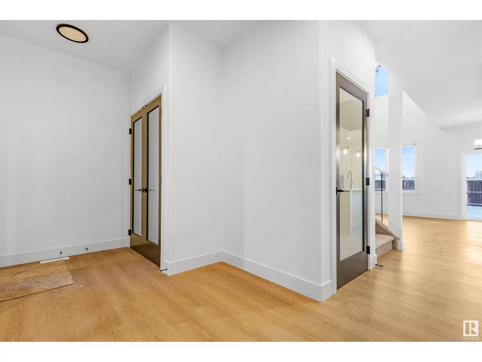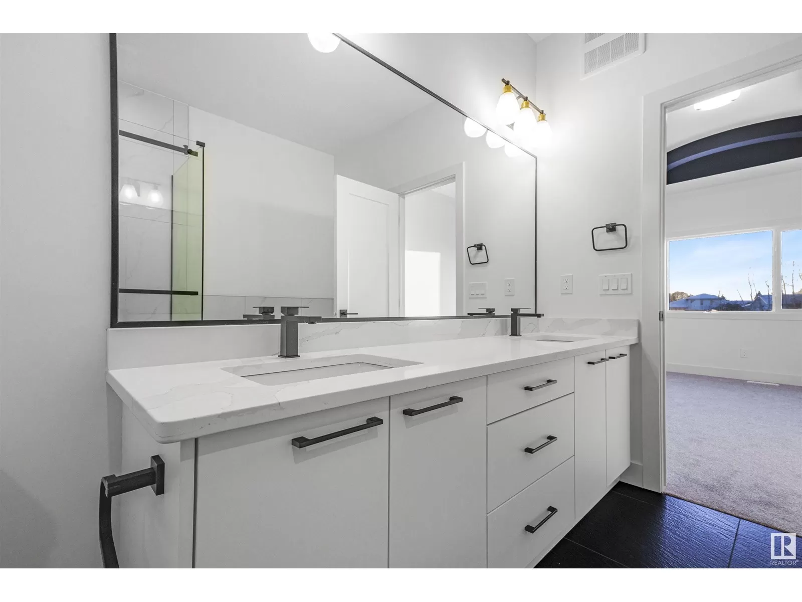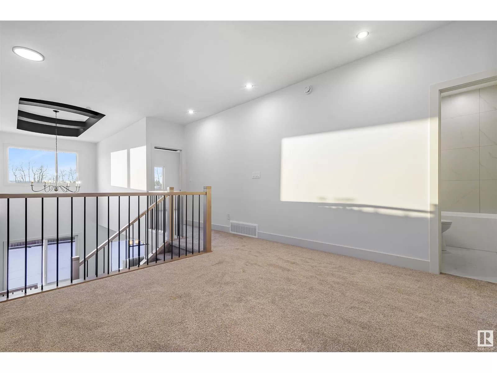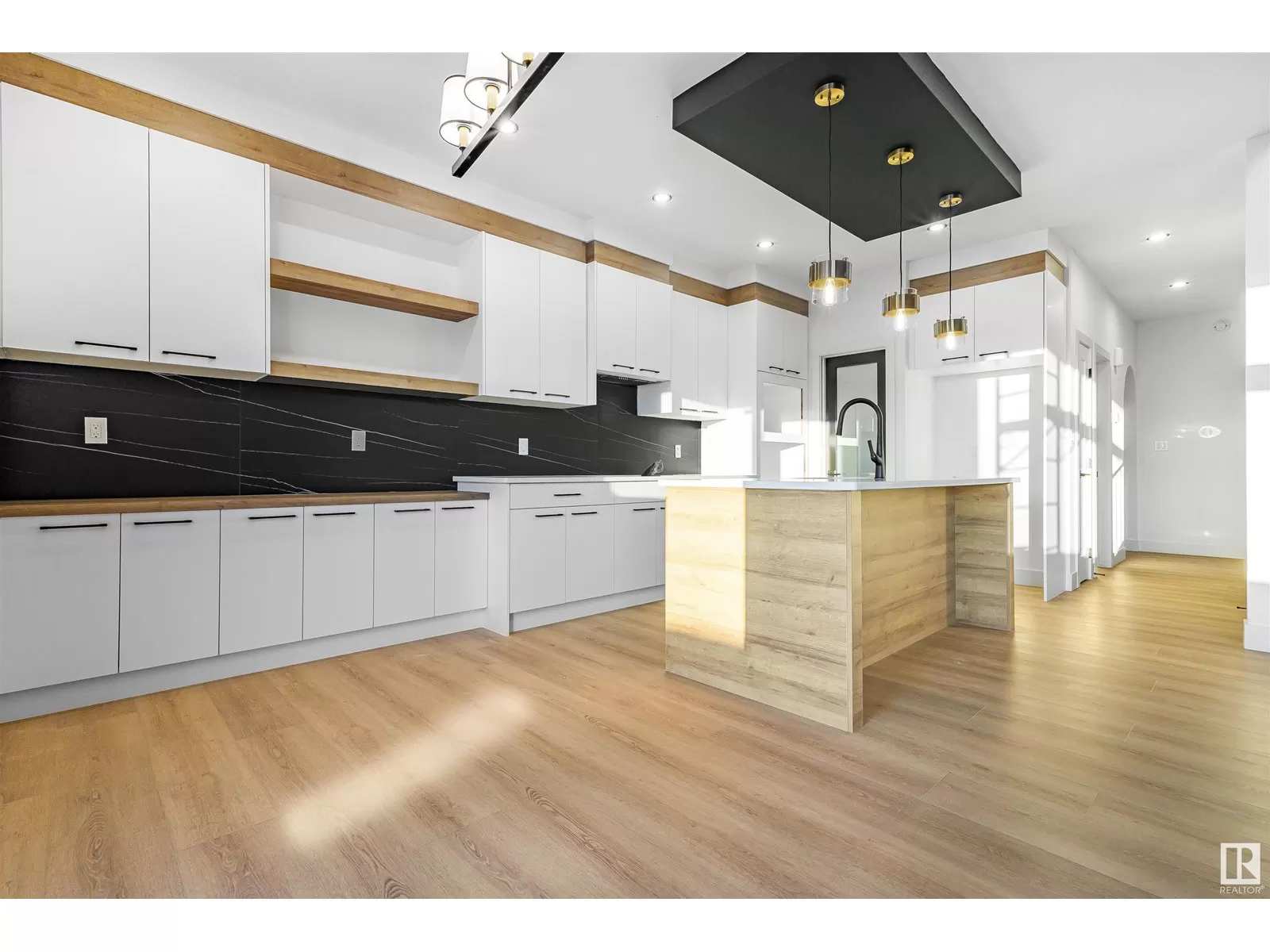DOUBLE ATTACHED GARAGE- HALF DUPLEX . Main floor entrance leads to Living Area with feature wall and then down the hall OPEN TO ABOVE Living Area with Electric fireplace , Stunning kitchen with modern cabinetry, quartz countertops, center island and spacious pantry. Spacious dinning nook with lots of sunlight. Main floor bedroom with closet & full bathroom. Stairs lead to upper level bonus room. Primary bedroom with 5piece ensuite/ spacious walk in closet/ Featured ceiling & wall design. two more bedrooms down the hall with 4 piece bath. Laundry is also conveniently located on upper level. Unfinished basement with separate entrance waiting for your personal finishes. (id:27476)