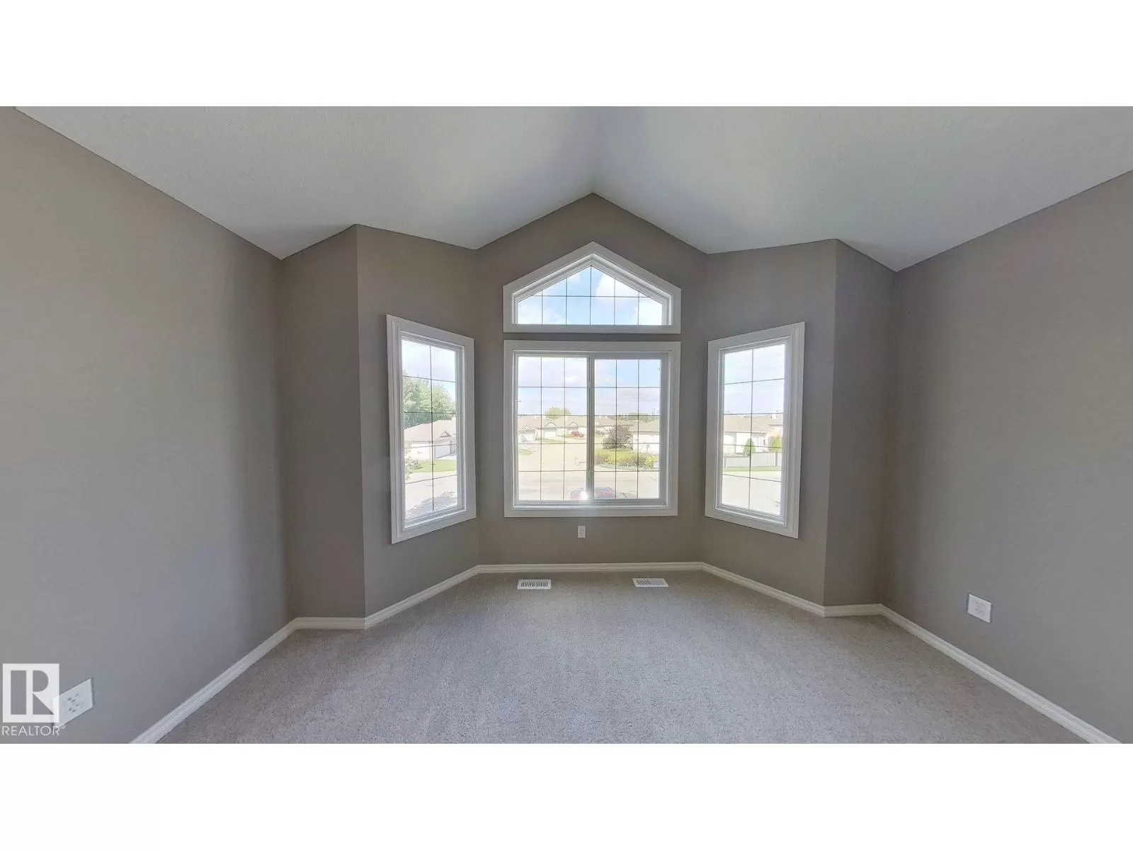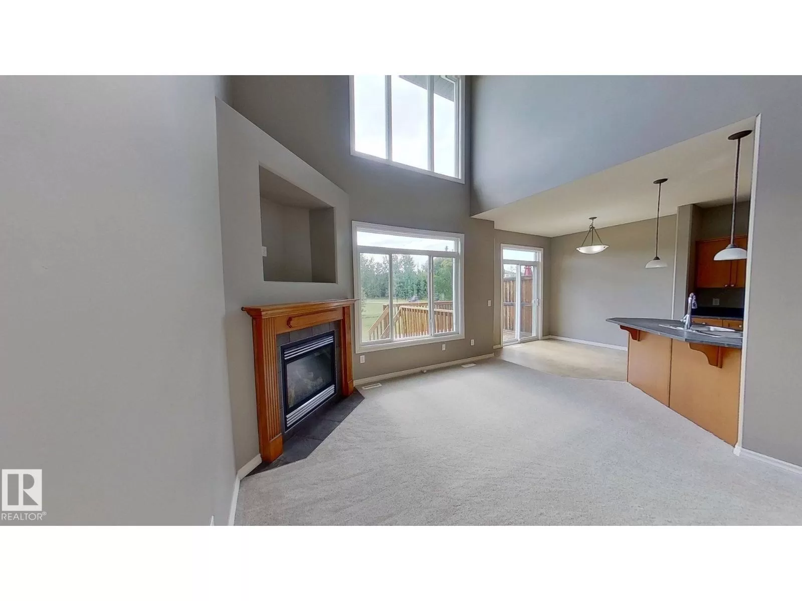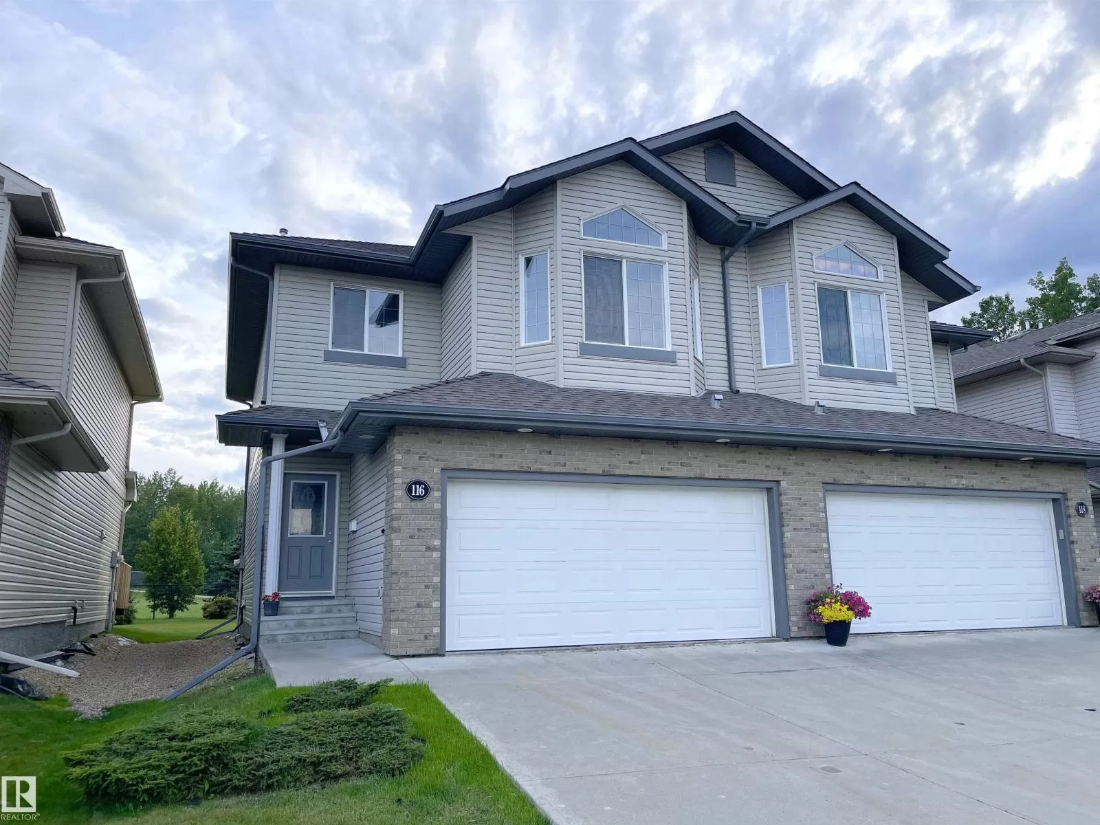 Charming 1,255 Sq. Ft. Westerra Park Condo â Park Views! This 1,255 sq. ft. two-story condo, backing onto a serene park, offers 3 spacious bedrooms and 2.5 modern bathrooms. The living room features a cozy fireplace and vaulted ceilings for a bright, airy feel. The large master suite includes a vaulted ceiling, ample closet space, and a private ensuite. Freshly updated with new paint, plush carpet, sleek countertops, stylish bathroom fixtures and a new 10 year warranty furnace. The insulated double garage has a water faucet and gas rough-in. Enjoy BBQs on the private deck with a natural gas outlet, overlooking the park. The unfinished basement, with high ceilings and plumbing rough-in, is perfect for a rec room or gym. Ideal for families or professionals, itâs steps from schools, parks, and Stony Plain amenities. (id:27476)