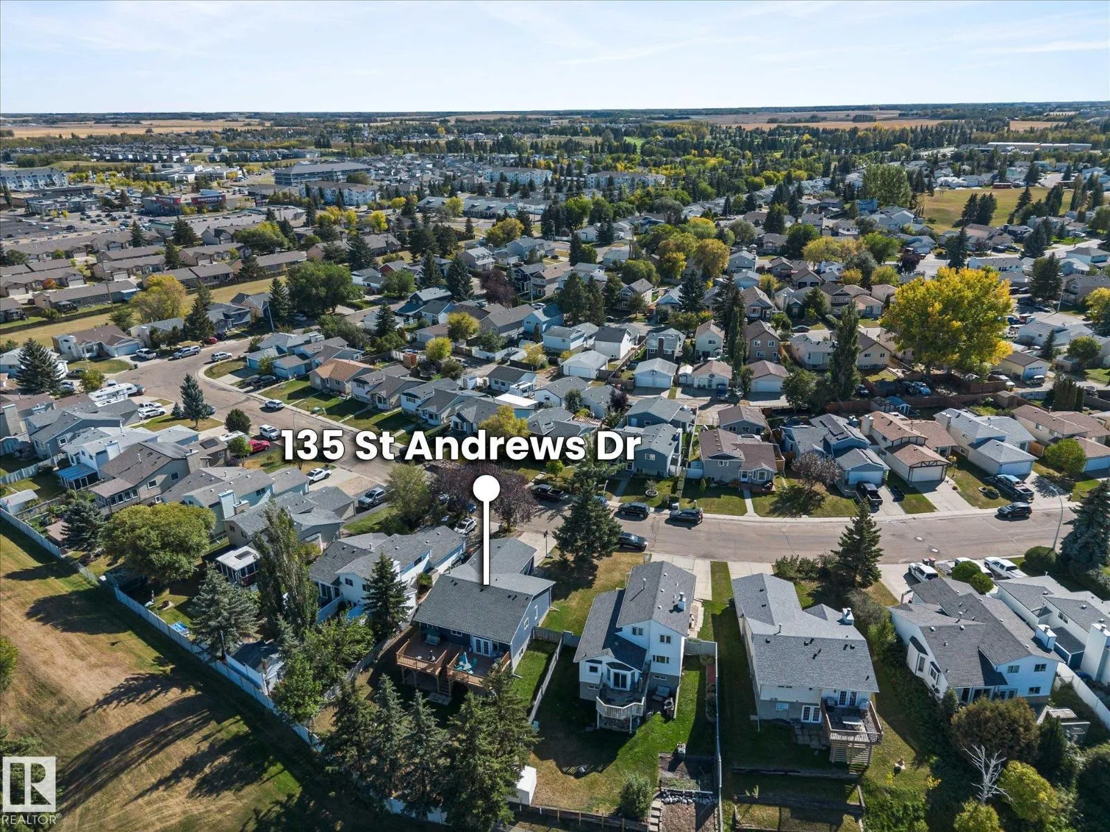Welcome to 135 St. Andrews Drive, this beautiful 1277 sqft walkout bungalow sits on a large lot complete with a double attached garage, in the sought-after community of St. Andrews, within walking distance to E'Cole Meridian Height School. On the main floor, is a beautifully renovated kitchen with new white cabinets, SS appliances, corner pantry & garden doors to the large deck. New laminate flooring in living room, kitchen & main 4p bathroom. 3 bedrooms including the primary with 3p ensuite & W/I closet complete the main floor. In the walkout basement, is the 4th bedroom, another 3p bathroom & a large family room with a gas fireplace & space for a pool table. Outside in the fully fenced treed backyard is a large wood deck, a covered patio, fire-pit area & best of all, no rear neighbours. Other Upgrades: HWT (2022), Laminate floor (2021), Deck Large (2012), New kitchen Appliances (2020), Kitchen Cabinets (2021), New Siding (2022), Shingles (2022), Garage Door Powered (2017). (id:27476)