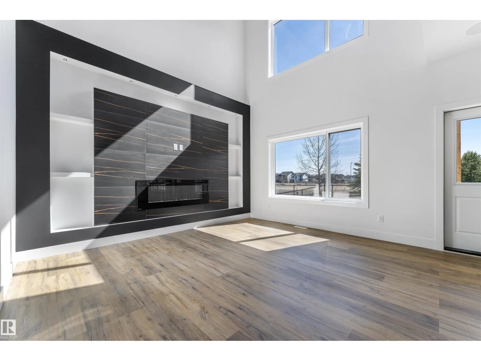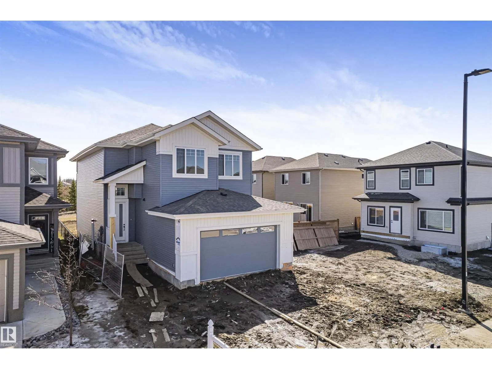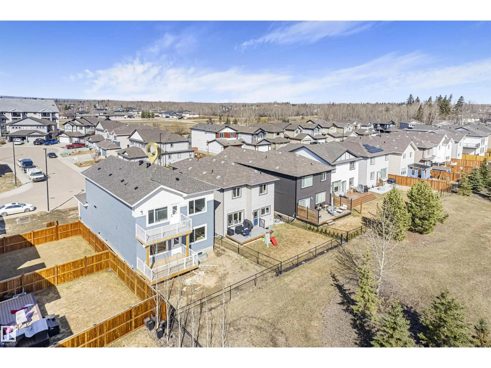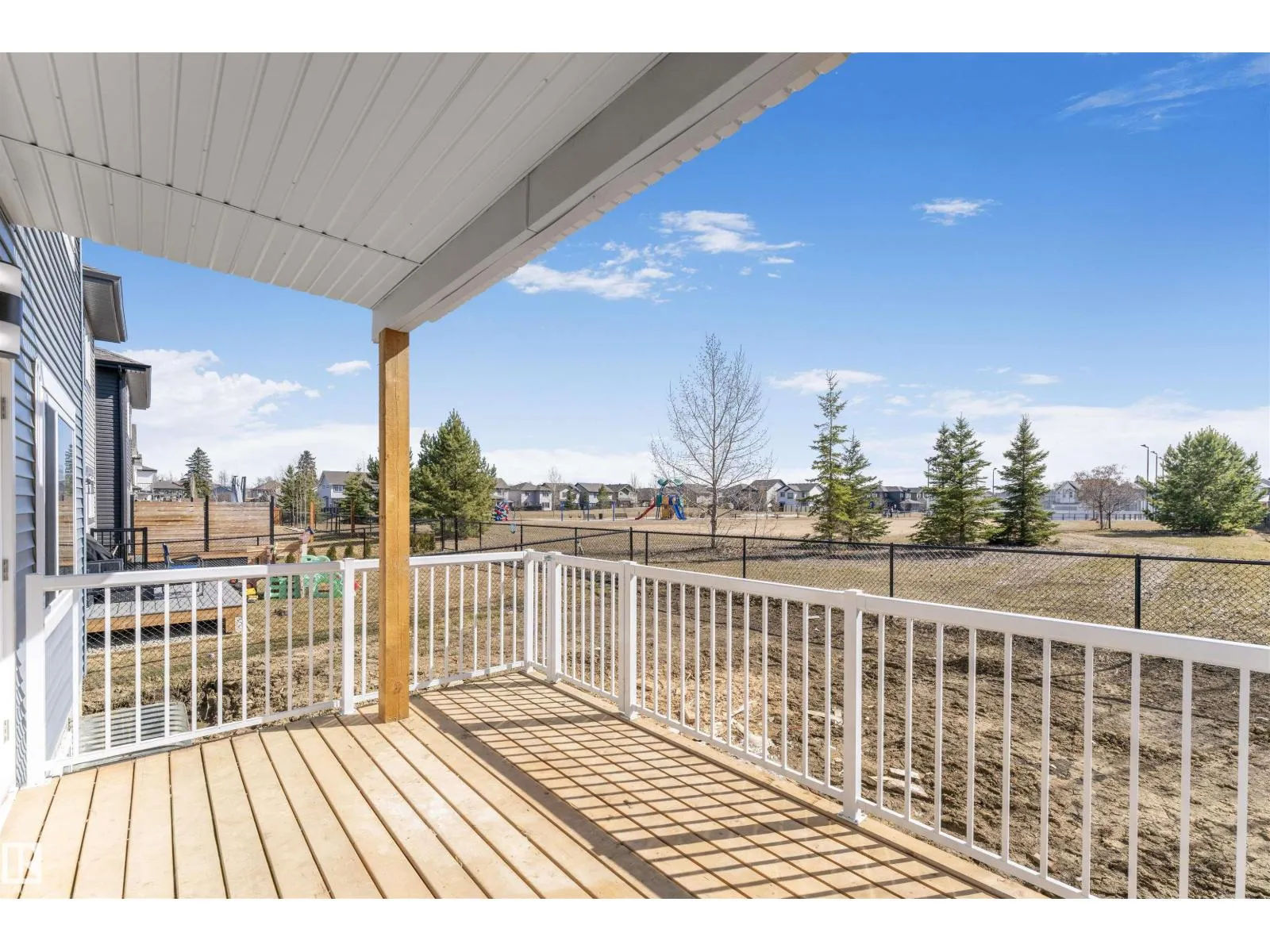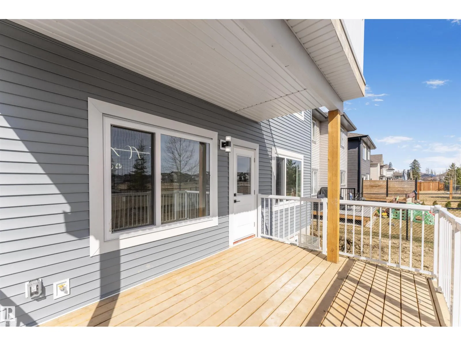 BACKING TO PARK || Gorgeous Fully Upgraded Home with Double Garage in Stony Plain! This custom-built beauty is a dream come true! The main floor features a versatile den/office (could be used as a bedroom) with stunning feature wall, a half bath, and a chef-inspired kitchen with a unique center island and spacious pantry. Extended Kitchen. The Open to above living area boasts a striking custom wall, creating a stunning view, while the dining room opens to a deck, perfect for entertaining. Upstairs, you'll find a spacious bonus room with beautiful feature wall & fireplace. A huge primary bedroom with stunning ceiling design & own private balcony overlooking park, a luxurious 5-piece ensuite with a walk-in closet. Two more bedrooms with feature wall in each & closet in each bedroom. Common bathroom on upper level. For added convenience, the laundry is located on the second floor. The unfinished basement with SEPARATE ENTRANCE is full of potential for your personal touch. (id:27476)