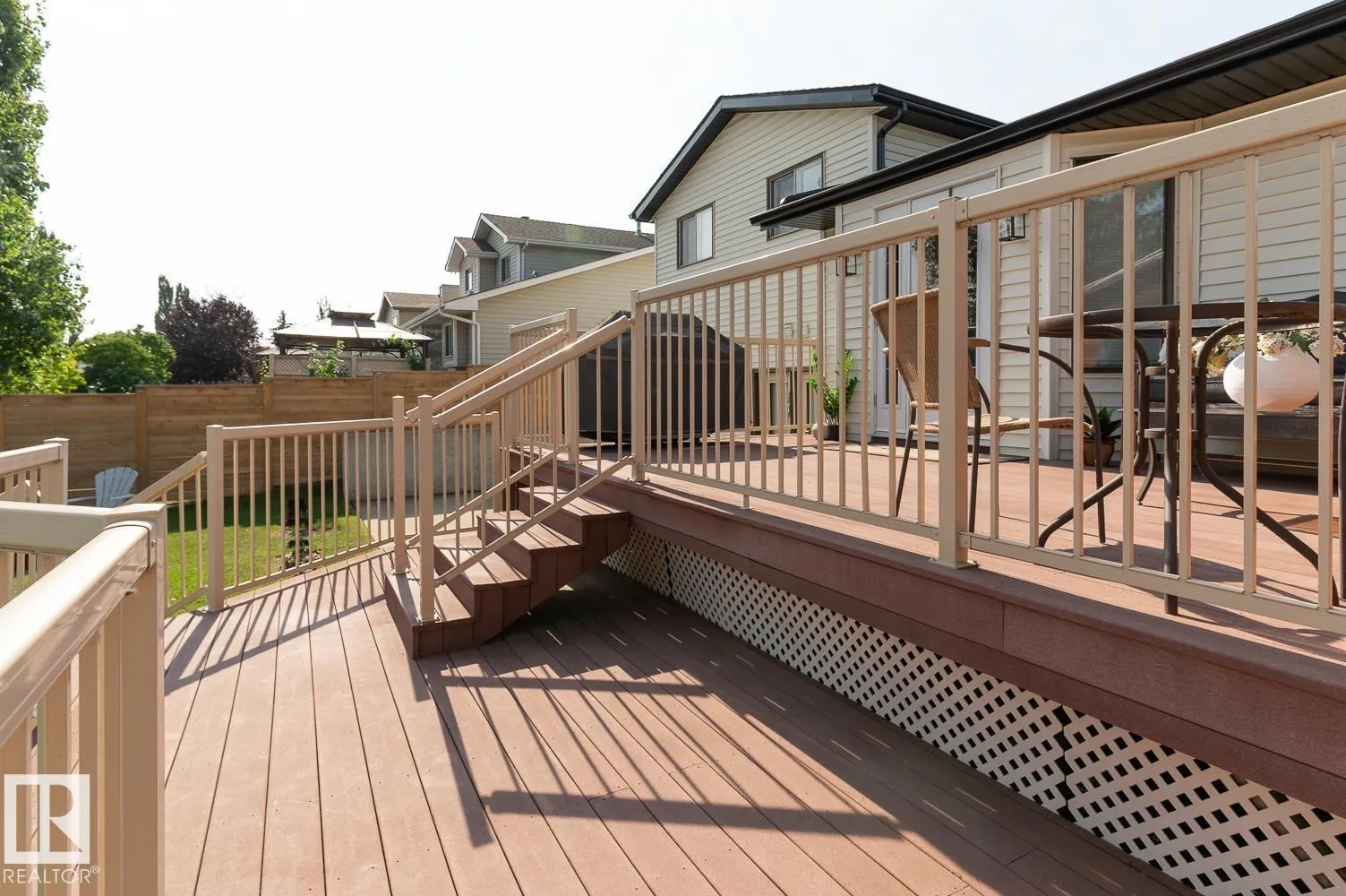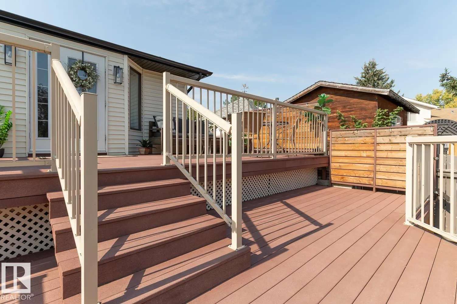 Step into timeless elegance in one of Stony Plainâs most desired neighborhoods where pride of ownership meets thoughtful updates and unbeatable location. This beautifully maintained 4-level split offers 4 bedrooms, 2 full bathrooms, and two generous living rooms, all designed for comfort and functionality. The walkout third level enhances family living, while the unfinished basement with crawl space provides exceptional storage. Recent upgrades within the last 5 years include new shingles, soffit, fascia, solid core doors upstairs, refreshed kitchen, interior paint, and more! Outside, enjoy a sprawling east-facing backyard with a tiered low-maintenance deck and a versatile concrete pad ideal for entertaining or relaxing. With schools, playgrounds, and scenic trails just steps away, this home blends tranquility with convenience. Opportunities like this donât last - make your move before itâs gone! (id:27476)