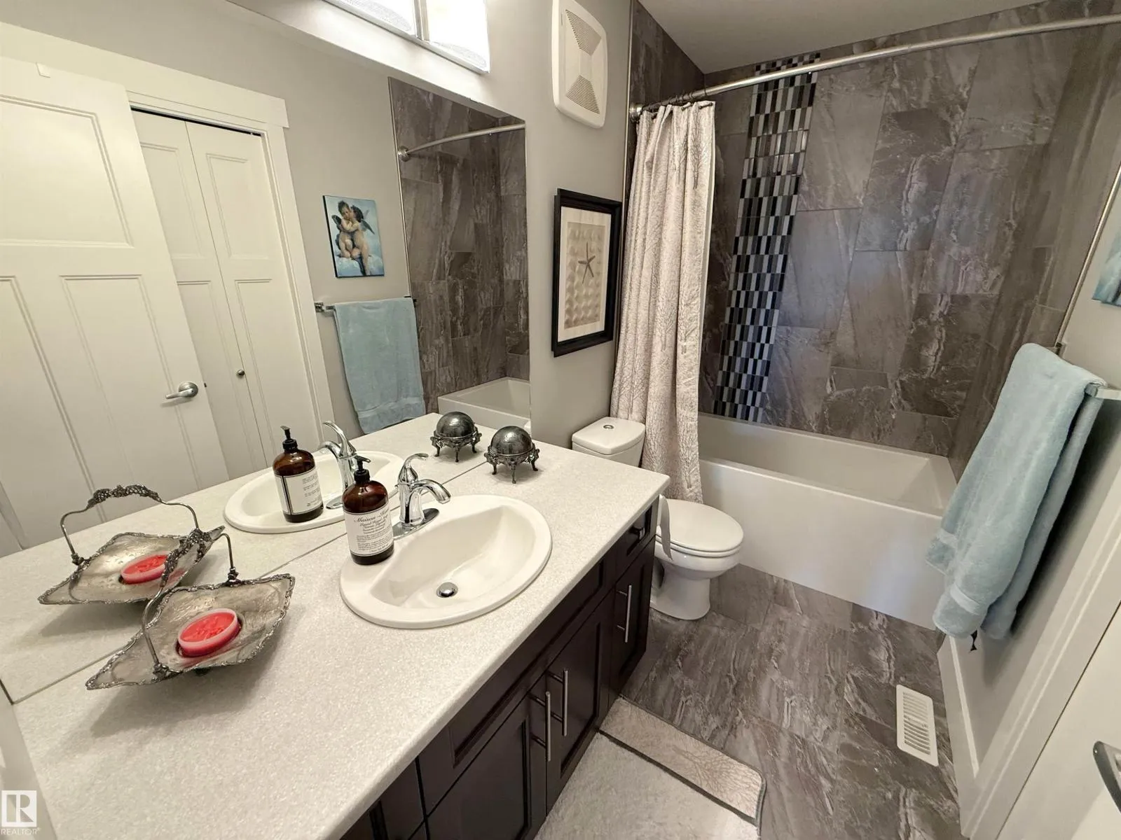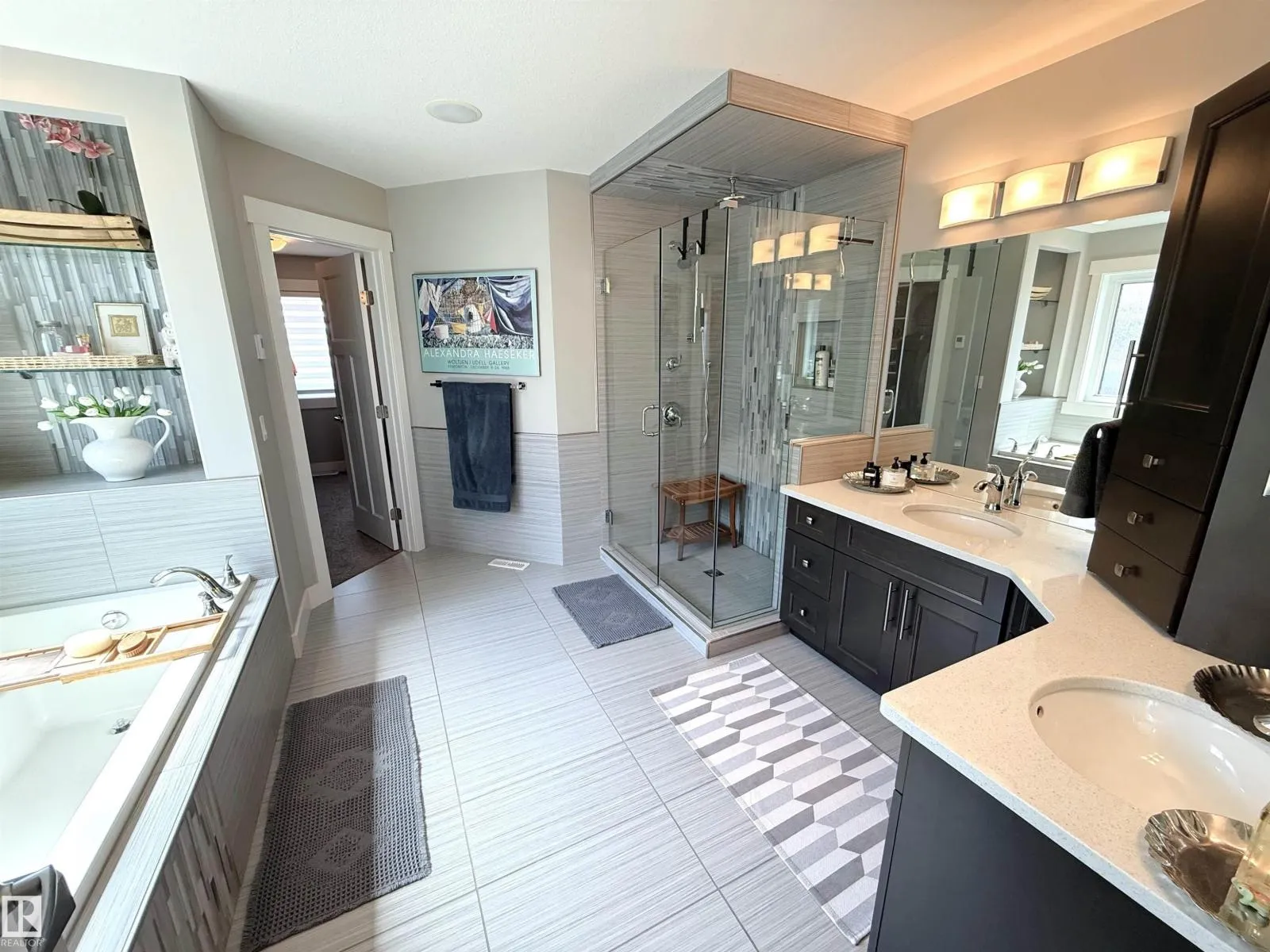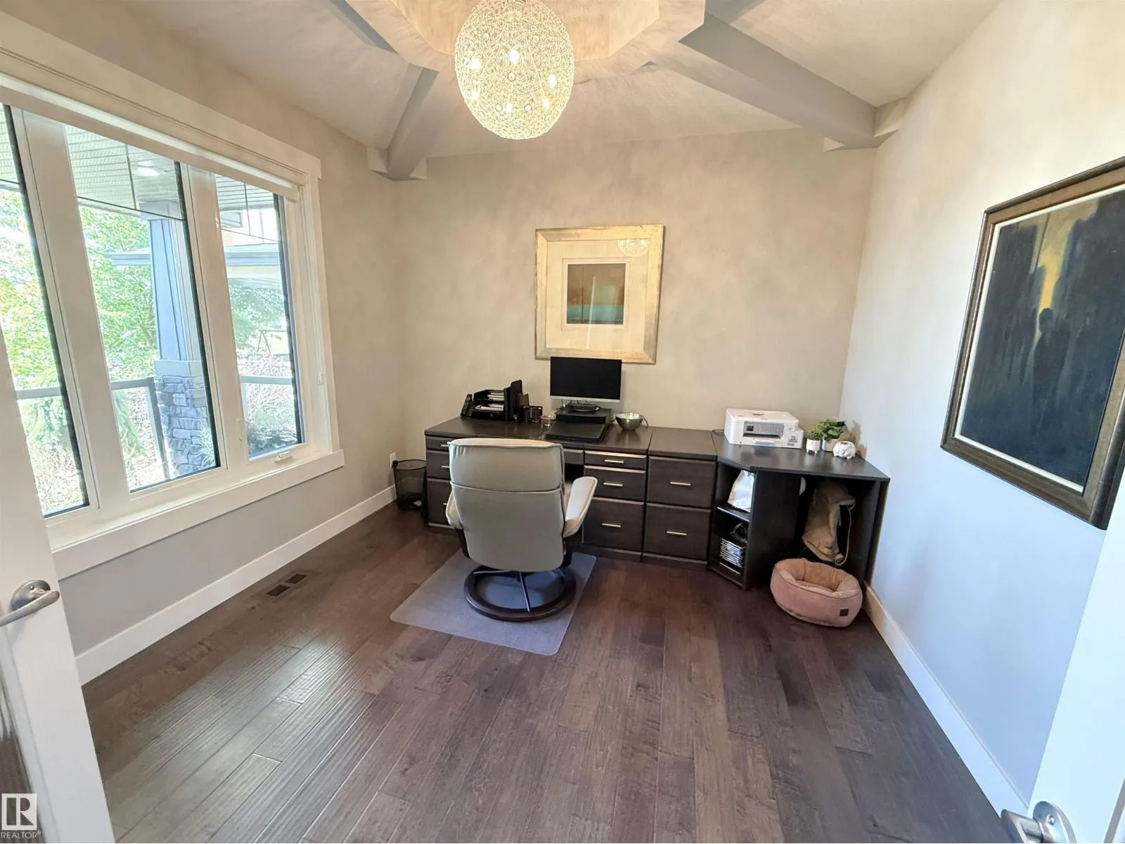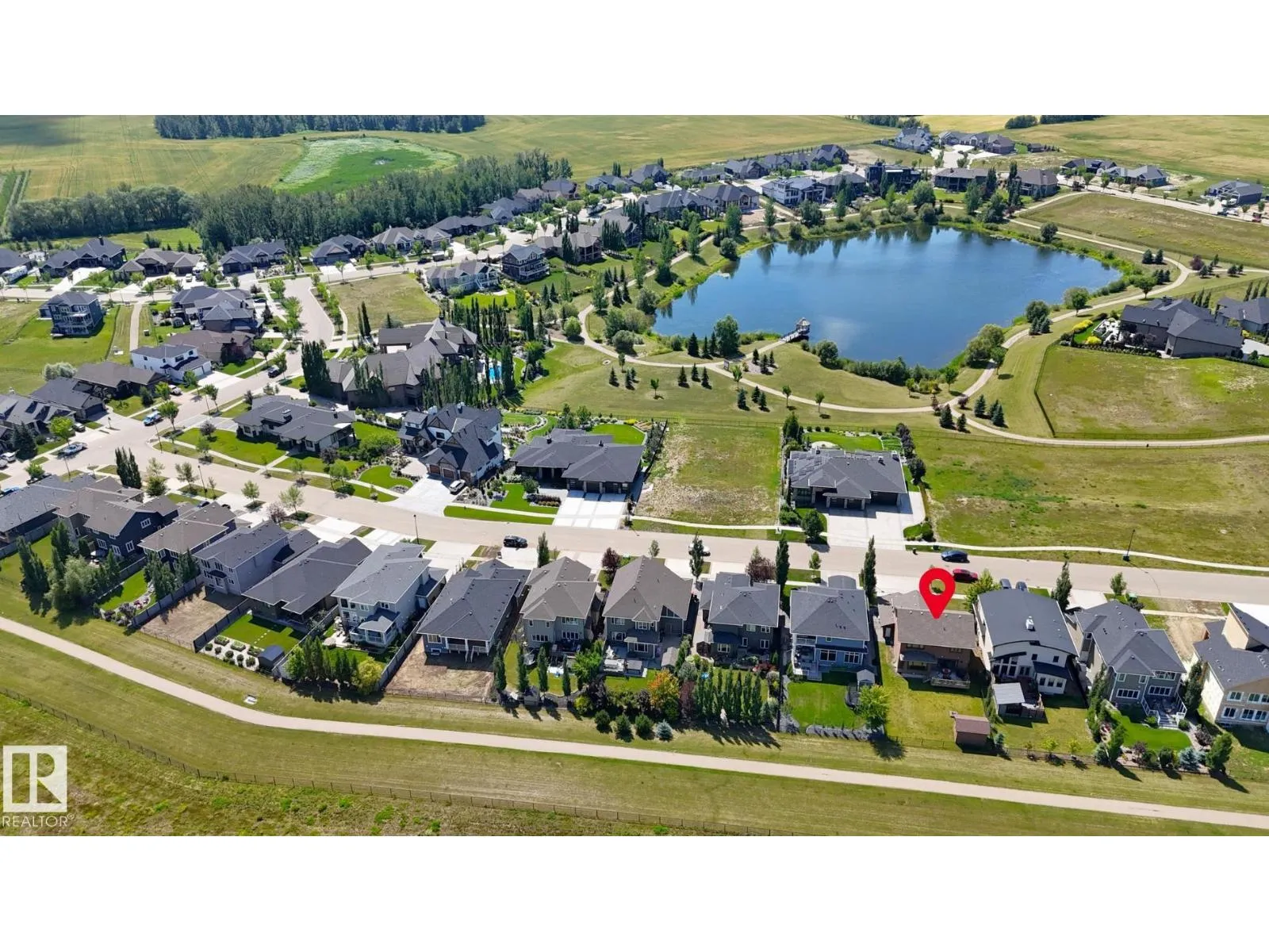 Former Rococo show home; beautiful 2014-built 2-storey with attached triple garage (30Wx26L, heated, AC, water, retractable screen door, high flow exhaust fan) backing onto green space in Genesis On The Lakes. This 2,435 sq ft (plus full basement) home features central AC, in floor heat, hardwood flooring and a fantastic open layout. On the main: bright front office, 2-pc powder room, living room w/ gas fireplace & built-in shelving, dining room with deck access and gourmet kitchen with eat-up island, granite counters, floor-to-ceiling cabinets and walk-through pantry to mudroom. Upstairs: top floor laundry, bonus room, 2 full bathrooms and 3 bedrooms including ownerâs suite with luxurious 5-pc ensuite & walk-in closet. Fully finished basement with 2 additional bedrooms, 3-pc bathroom & family room. Fenced, landscaped yard with deck, storage shed and exterior gemstone lighting. Fantastic location near pond, walking trails and easy access to Highways 779 & 628. Must see! (id:27476)