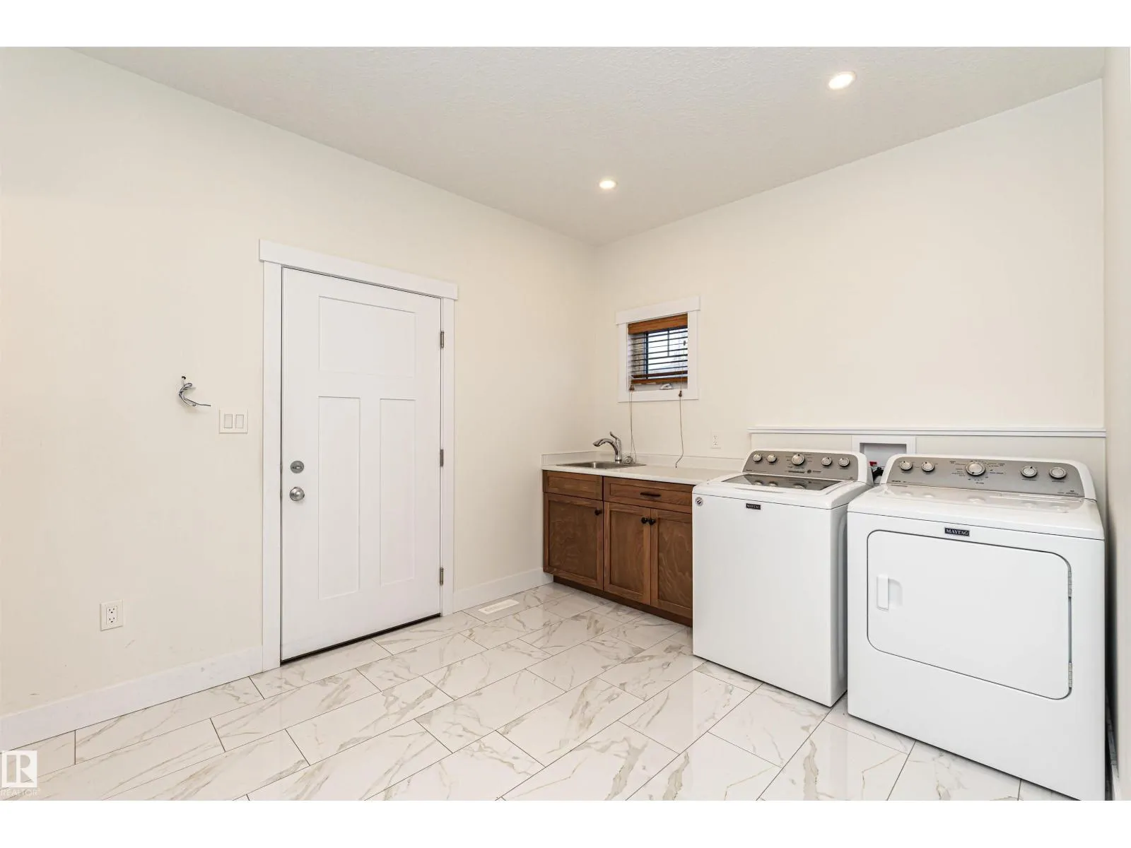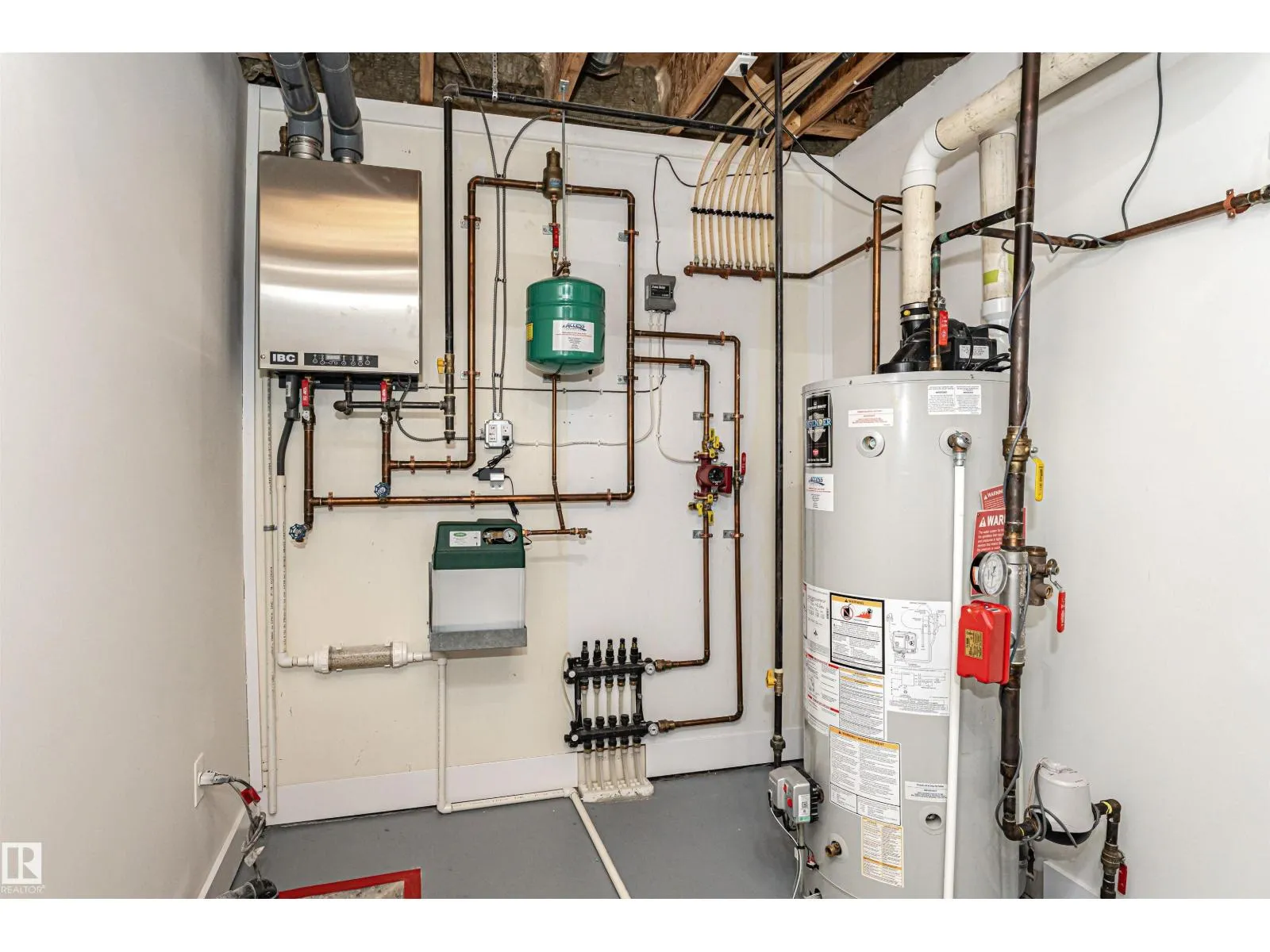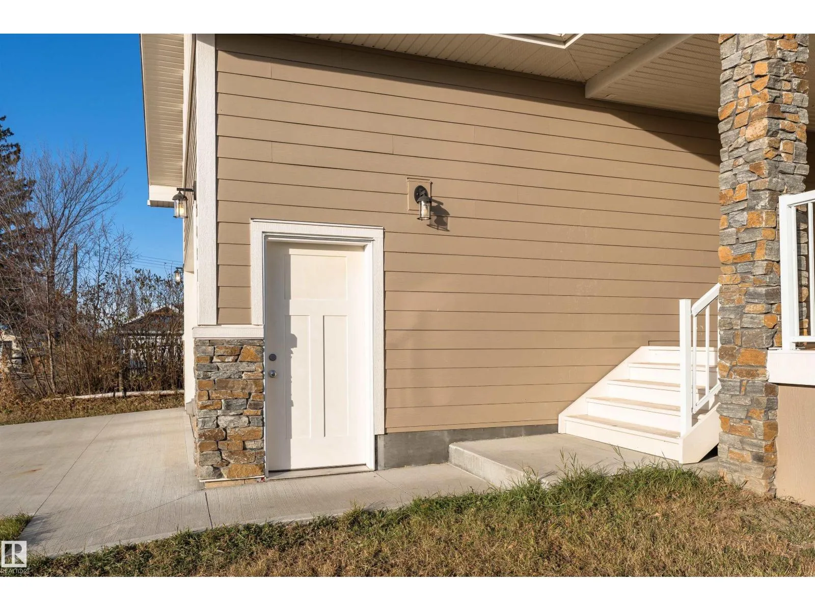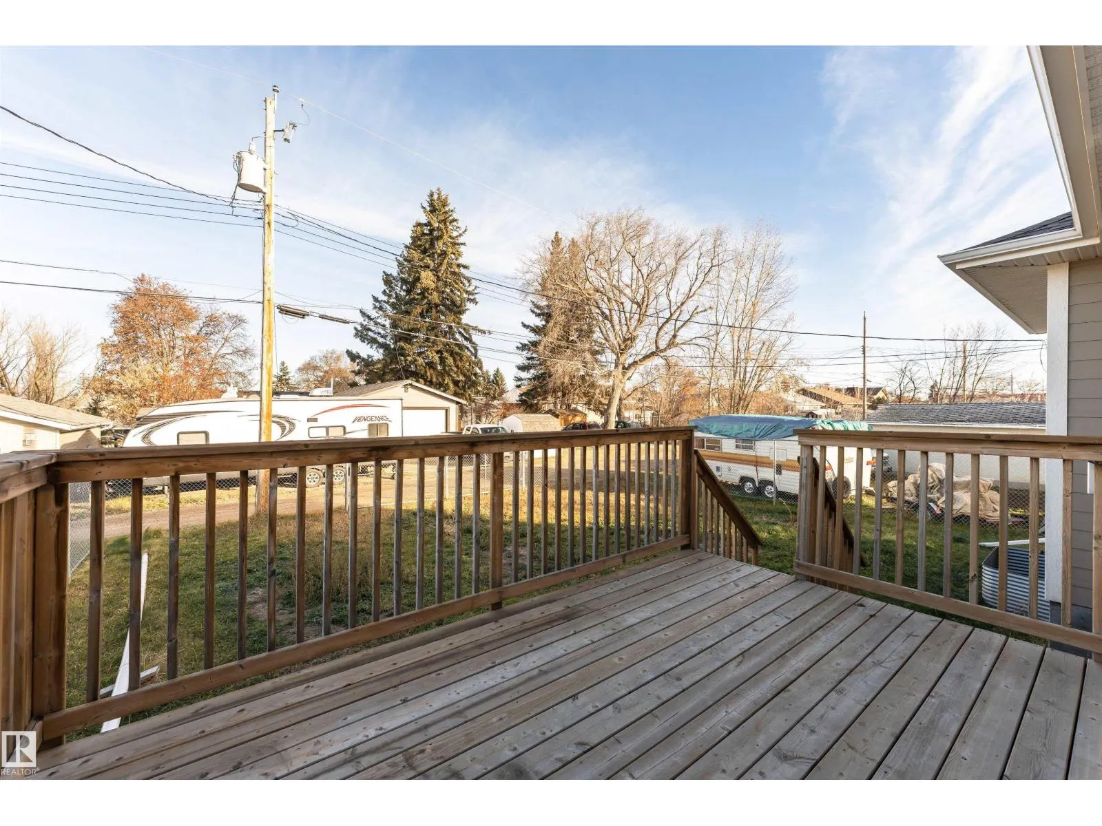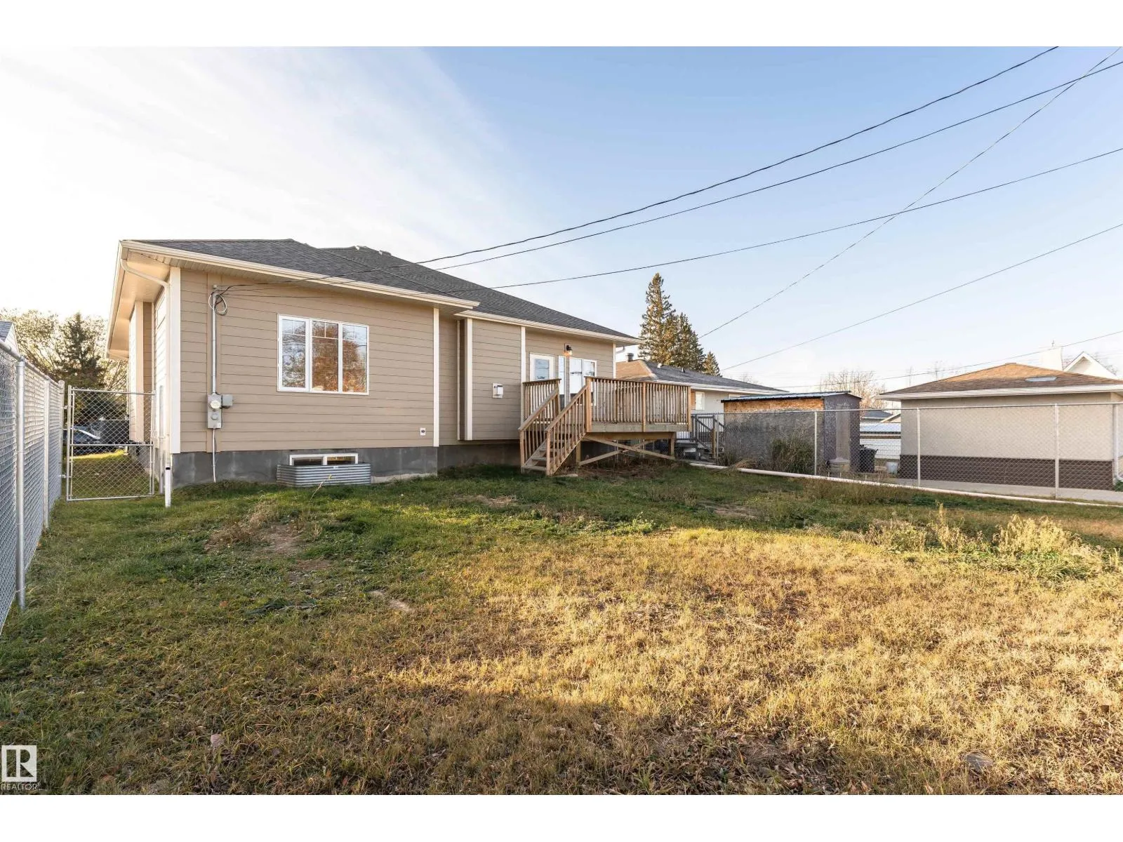 Pleased to present this 1566 sqft, 3 bed plus den fully finished bungalow in the heart of Stony Plain. All the bells and whistles on this one including hardwood floors, maple cabinets, quartz countertops, dark stainless, a/c, heated oversized garage, in-floor heat, Hardie-board siding, fire sprinkler system and wheel chair lift included. Main floor features kitchen with large island, dining with garden door to deck, living room with gas f/p, den and primary bedroom with walk-in and 4 piece ensuite/jetted tub/shower. Main floor is also host to 2nd bedroom, 4 piece bathroom and huge laundry room/garage entrance area. Downstairs you will find massive family/rec room complete with pool table (incl) and a huge 3rd bedroom along with yet another 4 piece bathroom. The attached garage is oversized and extra high, plenty of room for a car lift. It also has a wheel chair lift for easy access to the house. The yard is fenced and there is back ally access. Some photos virtually staged. (id:27476)