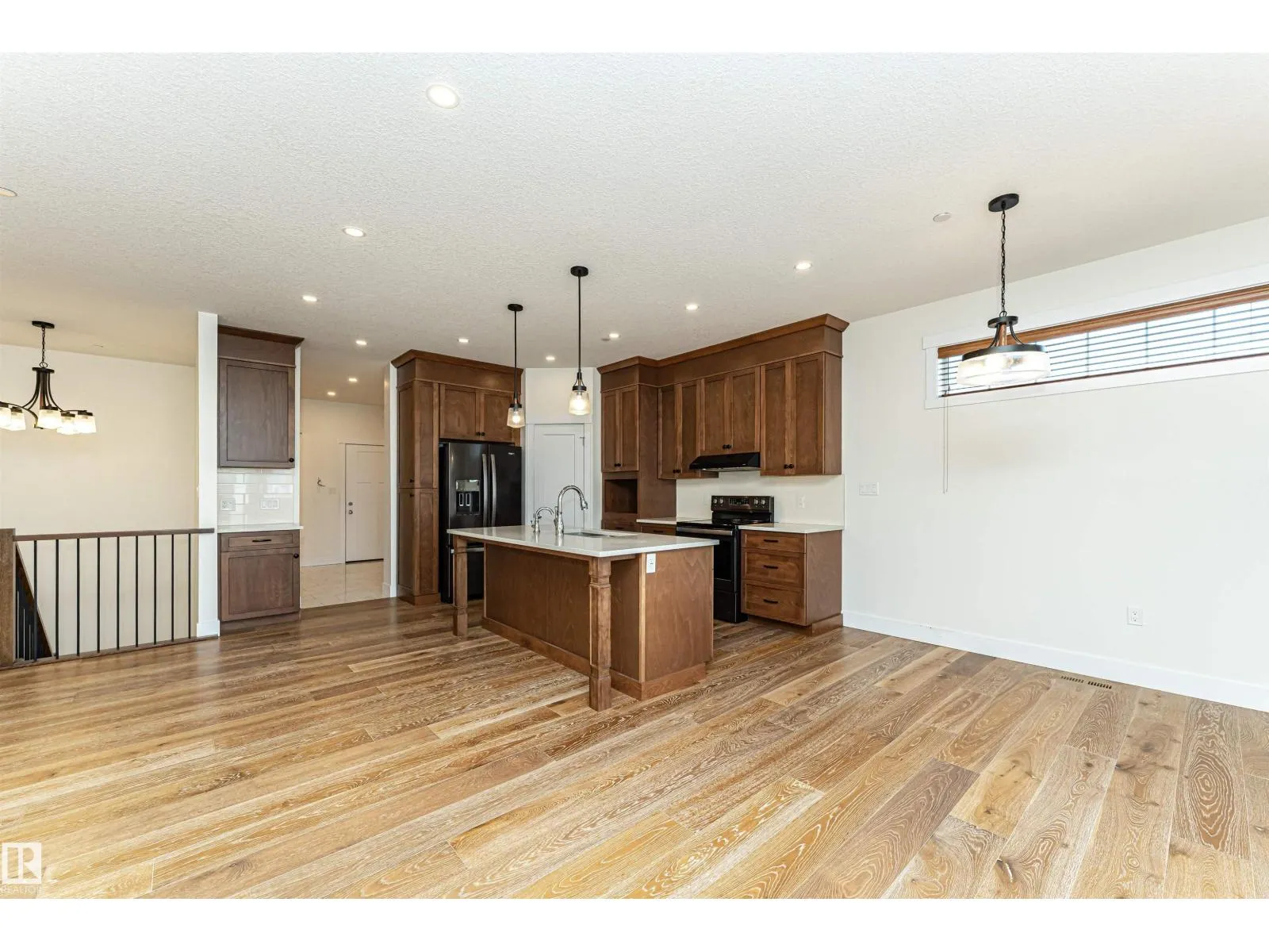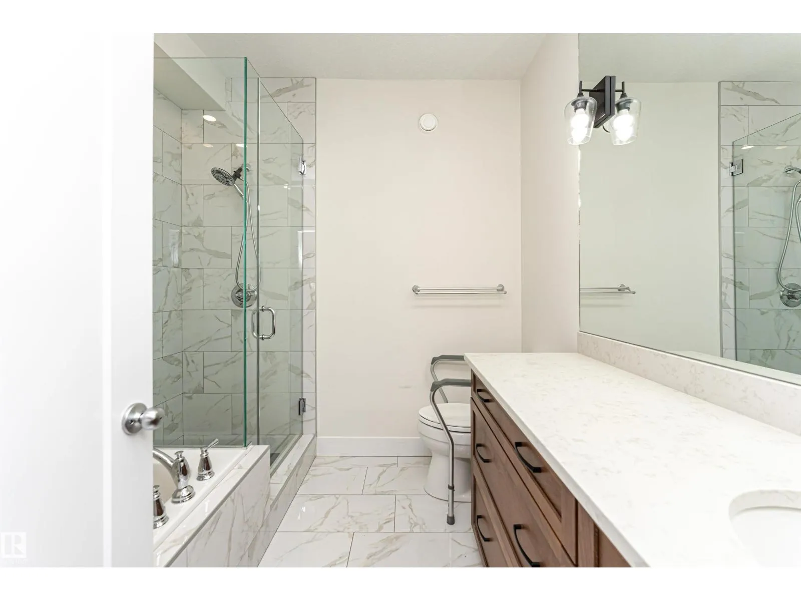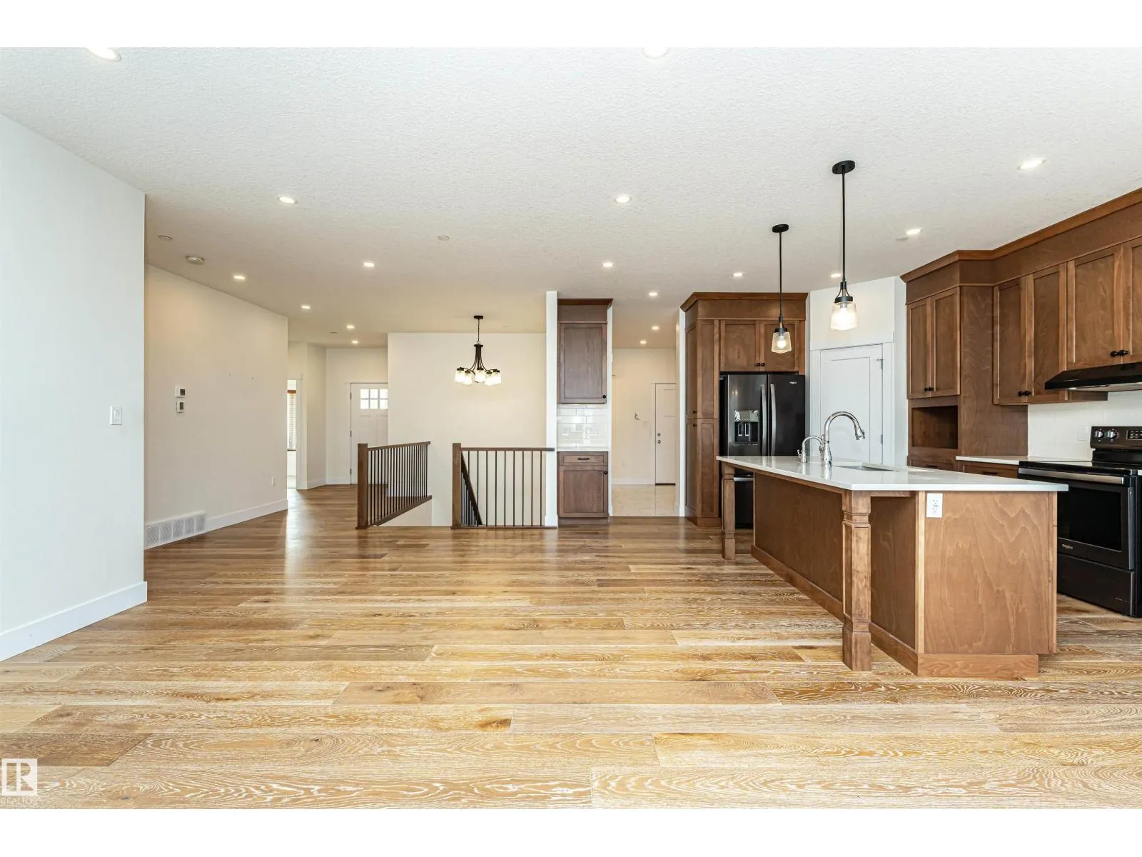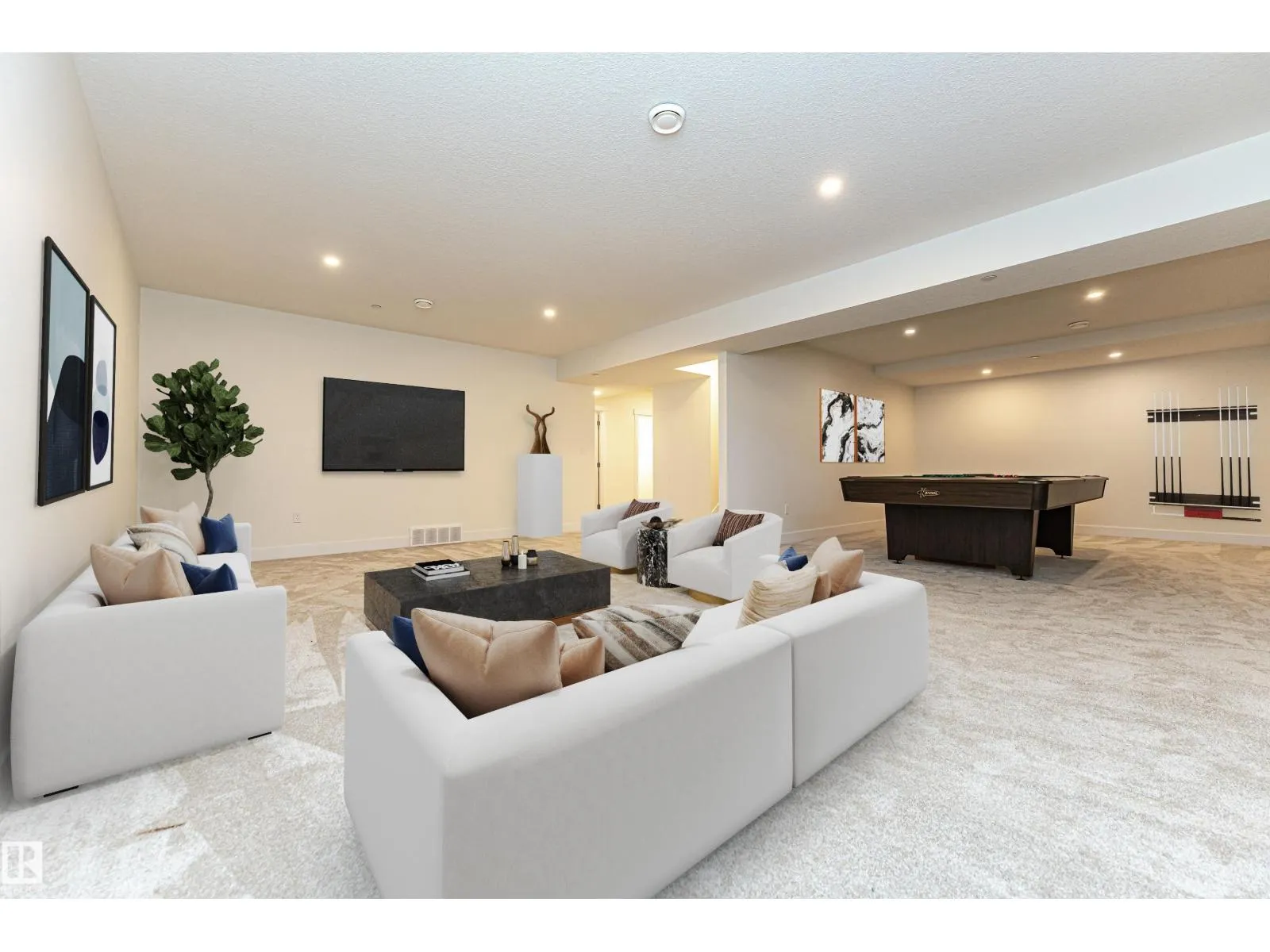 Pleased to present this 1566 sqft, 3 bed plus den fully finished bungalow in the heart of Stony Plain. All the bells and whistles on this one including hardwood floors, maple cabinets, quartz countertops, dark stainless, a/c, heated oversized garage, in-floor heat, Hardie-board siding, fire sprinkler system and wheel chair lift included. Main floor features kitchen with large island, dining with garden door to deck, living room with gas f/p, den and primary bedroom with walk-in and 4 piece ensuite/jetted tub/shower. Main floor is also host to 2nd bedroom, 4 piece bathroom and huge laundry room/garage entrance area. Downstairs you will find massive family/rec room complete with pool table (incl) and a huge 3rd bedroom along with yet another 4 piece bathroom. The attached garage is oversized and extra high, plenty of room for a car lift. It also has a wheel chair lift for easy access to the house. The yard is fenced and there is back ally access. Some photos virtually staged. (id:27476)