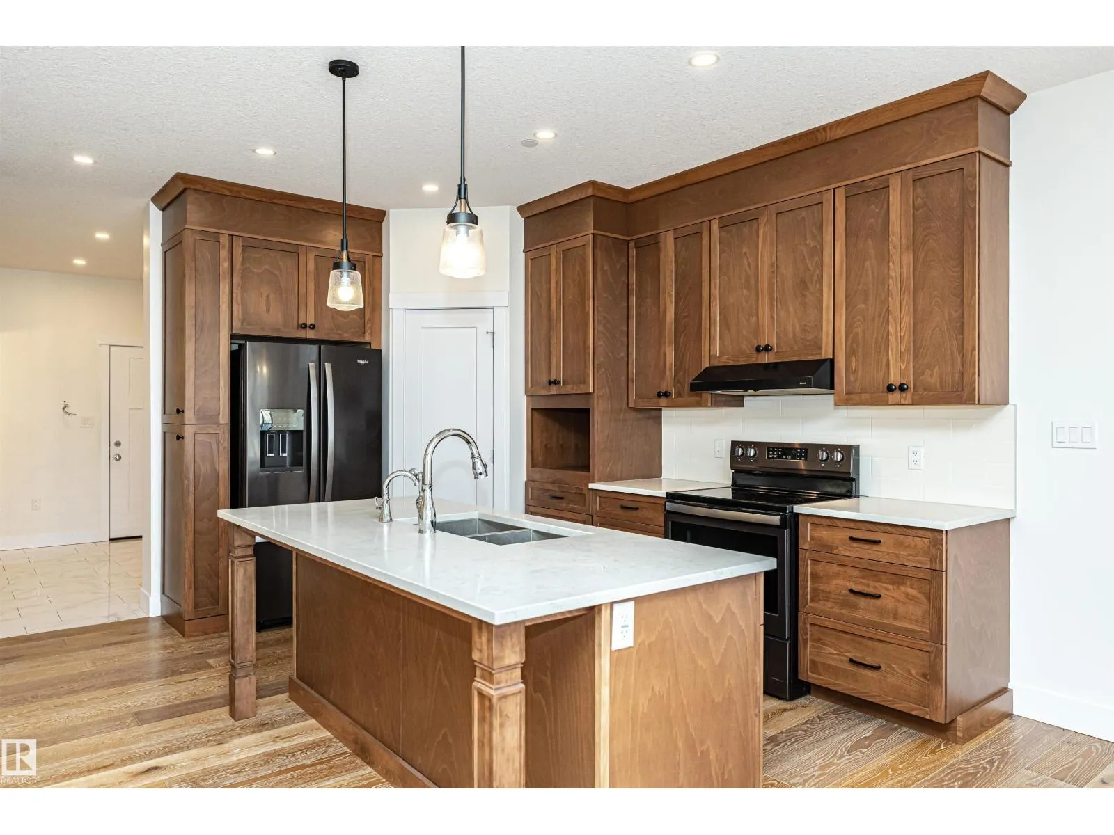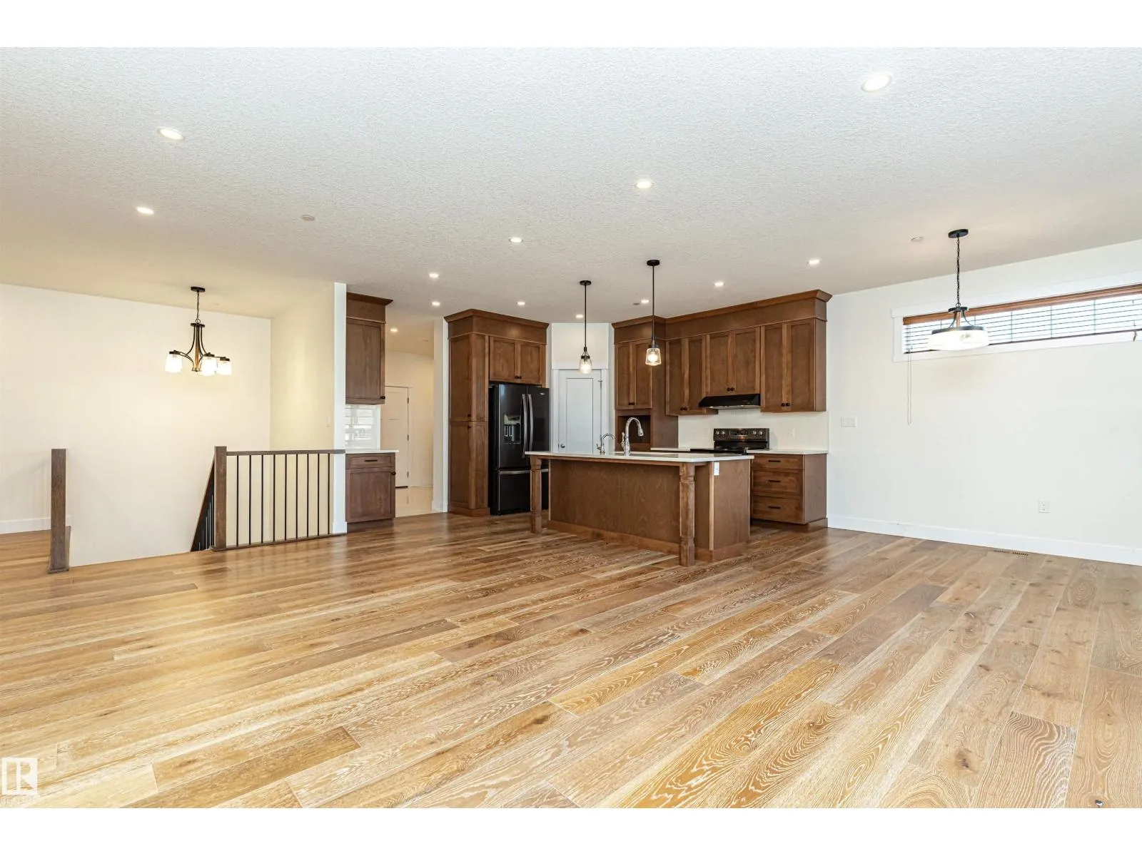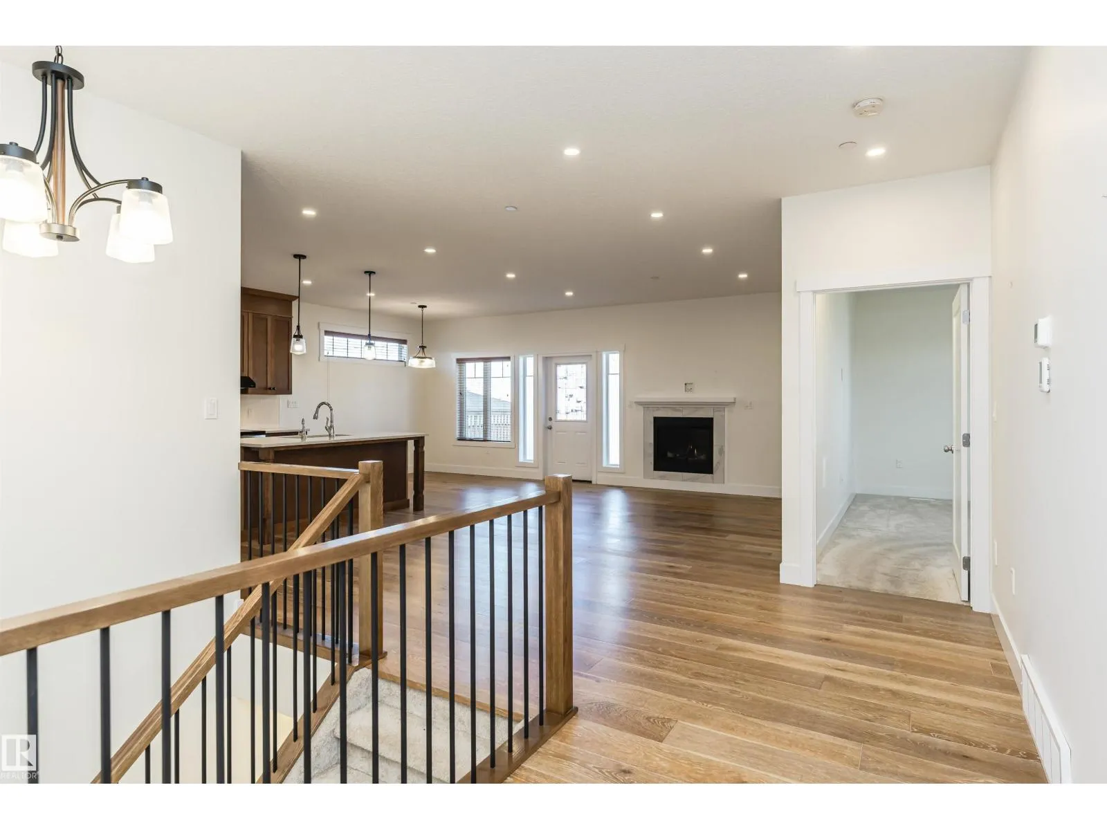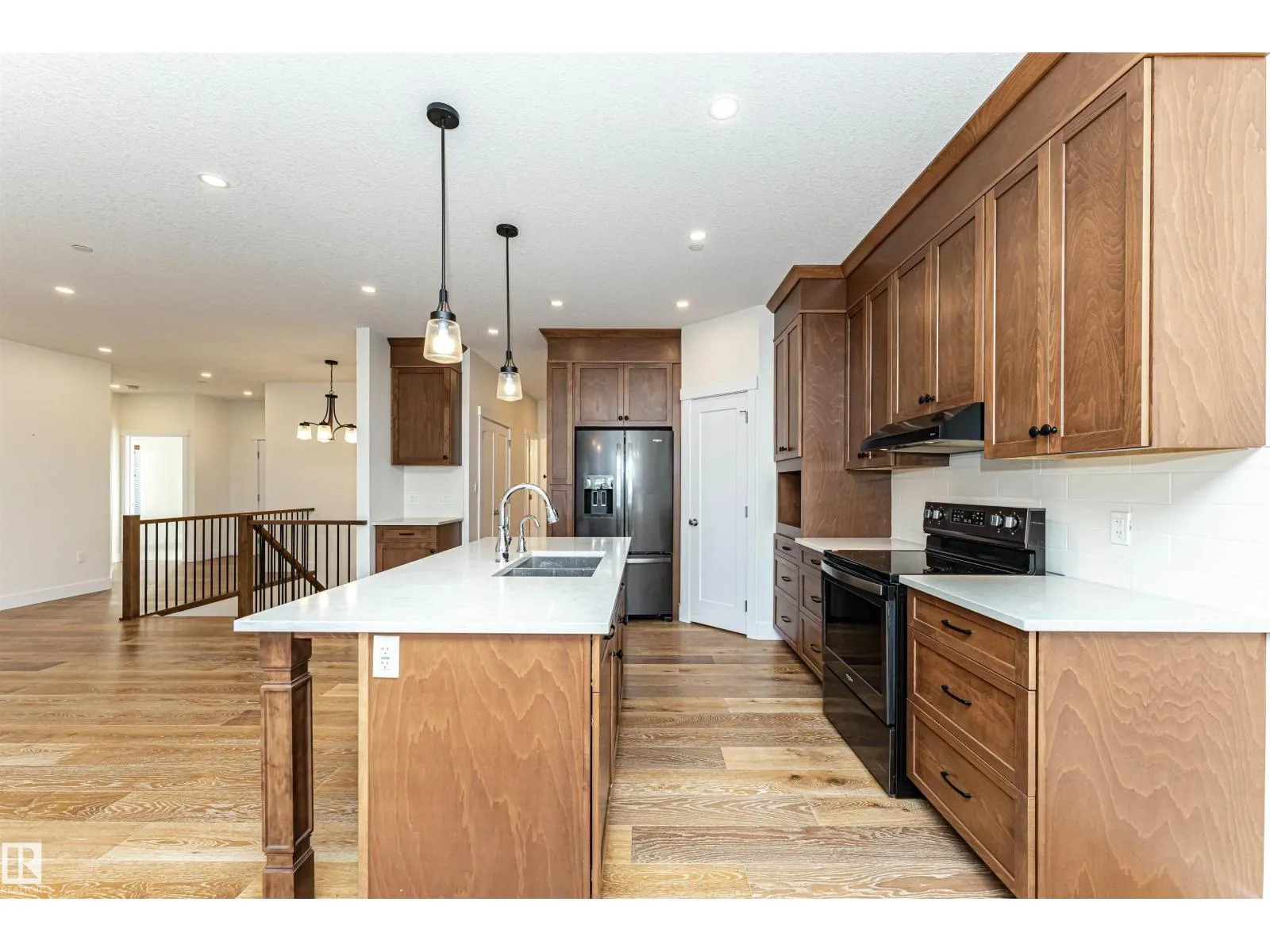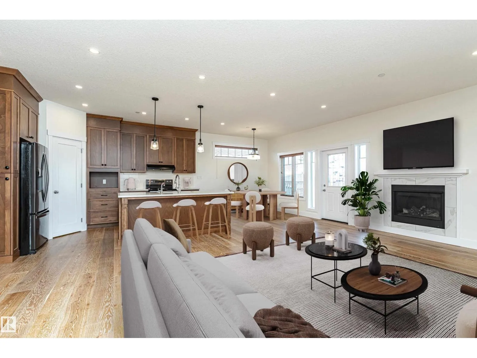 Pleased to present this 1566 sqft, 3 bed plus den fully finished bungalow in the heart of Stony Plain. All the bells and whistles on this one including hardwood floors, maple cabinets, quartz countertops, dark stainless, a/c, heated oversized garage, in-floor heat, Hardie-board siding, fire sprinkler system and wheel chair lift included. Main floor features kitchen with large island, dining with garden door to deck, living room with gas f/p, den and primary bedroom with walk-in and 4 piece ensuite/jetted tub/shower. Main floor is also host to 2nd bedroom, 4 piece bathroom and huge laundry room/garage entrance area. Downstairs you will find massive family/rec room complete with pool table (incl) and a huge 3rd bedroom along with yet another 4 piece bathroom. The attached garage is oversized and extra high, plenty of room for a car lift. It also has a wheel chair lift for easy access to the house. The yard is fenced and there is back ally access. Some photos virtually staged. (id:27476)