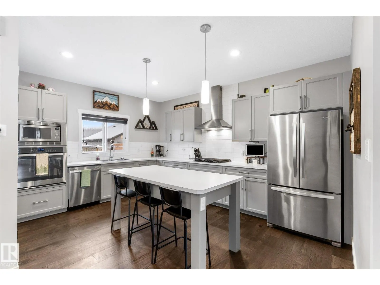 Welcome to 26 Brickyard Drive, a beautifully kept 2-storey home in one of Stony Plainâs most convenient and family-friendly neighbourhoods! Step inside to an inviting open-concept main floor featuring 9-ft ceilings, a cozy electric fireplace, 2 piece bathroom & plenty of natural light. The modern kitchen and dining area flow effortlessly together, creating a bright and welcoming space for everyday living and entertaining. Upstairs, youâll find three spacious bedrooms, including a primary suite with a walk-in closet & 5-piece ensuite with soaker tub and tiled shower, plus a full 4-piece main bath & the convenience of upstairs laundry. Enjoy year-round comfort with central air conditioning, and take advantage of the brand-new 24x20 double detached garage and fully landscaped yard which is perfect for relaxing or hosting guests outdoors. Ideally located near schools, parks, shopping, restaurants, and Stony Plainâs charming downtown, this home offers the perfect blend of modern comfort and small-town living. (id:27476)