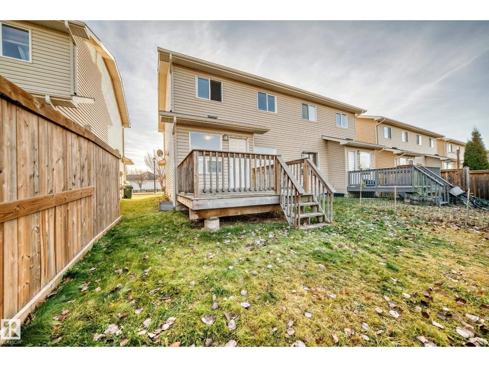 Affordable half duplex in the desirable community of Graybriar, Stony Plain. This 2-storey bare land condo offers 3 spacious bedrooms and a south facing front that fills the home with natural light. Enjoy a private back deck overlooking a peaceful green belt, perfect for relaxing or entertaining. The unfinished basement provides excellent potential to create a men den, game room or extra living space to suit your lifestyle. Low condo fees of just $ 78 cover snow removal and landscaping in the common areas. (id:27476)