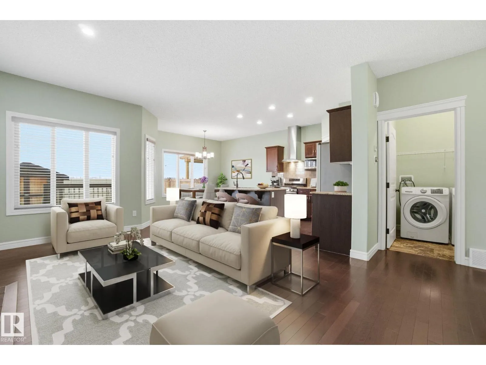 Feel at home the moment you walk in the door of this fully finished 2 storey in Stony Plain's Southcreek subdivision. NO REAR NEIGHBOURS! Large open floorplan with big living room with tons of natural light. Kitchen has a corner pantry and a nice island for people to congregate around. Dining area is perfect for hosting family and friends. MAIN FLOOR LAUNDRY! Head upstairs and you'll find a great bonus room; ideal for watching a movie! Large master suite with vaulted ceilings, a large walk in closet and 4pc ensuite. 2 more bedrooms are great for kids, guests or a home office. Basement is fully developed with a large rec room and another bathroom. Central A/C. Double attached garage keeps the snow off the vehicles! West facing backyard is fully landscaped and even has extra storage with a shed. Farm field behind gives you plenty of views. Quiet cul-de-sac with great neighbours! (id:27476)