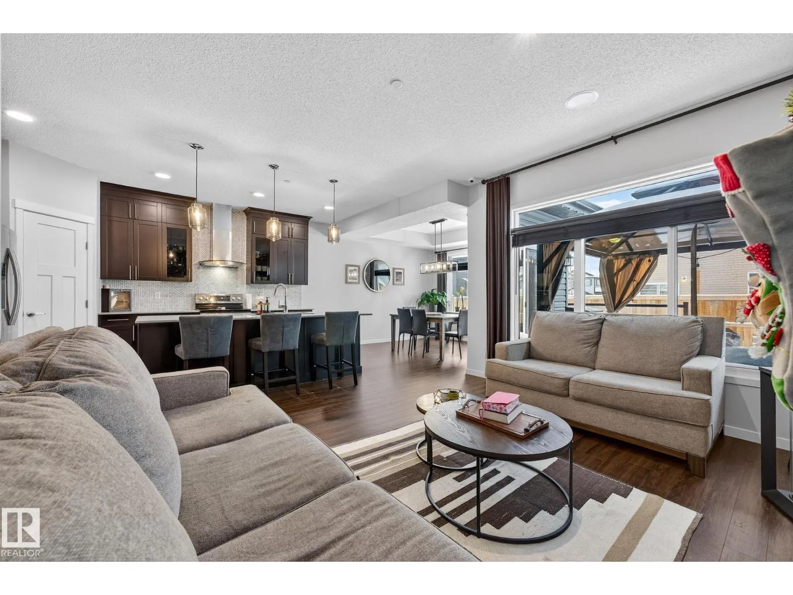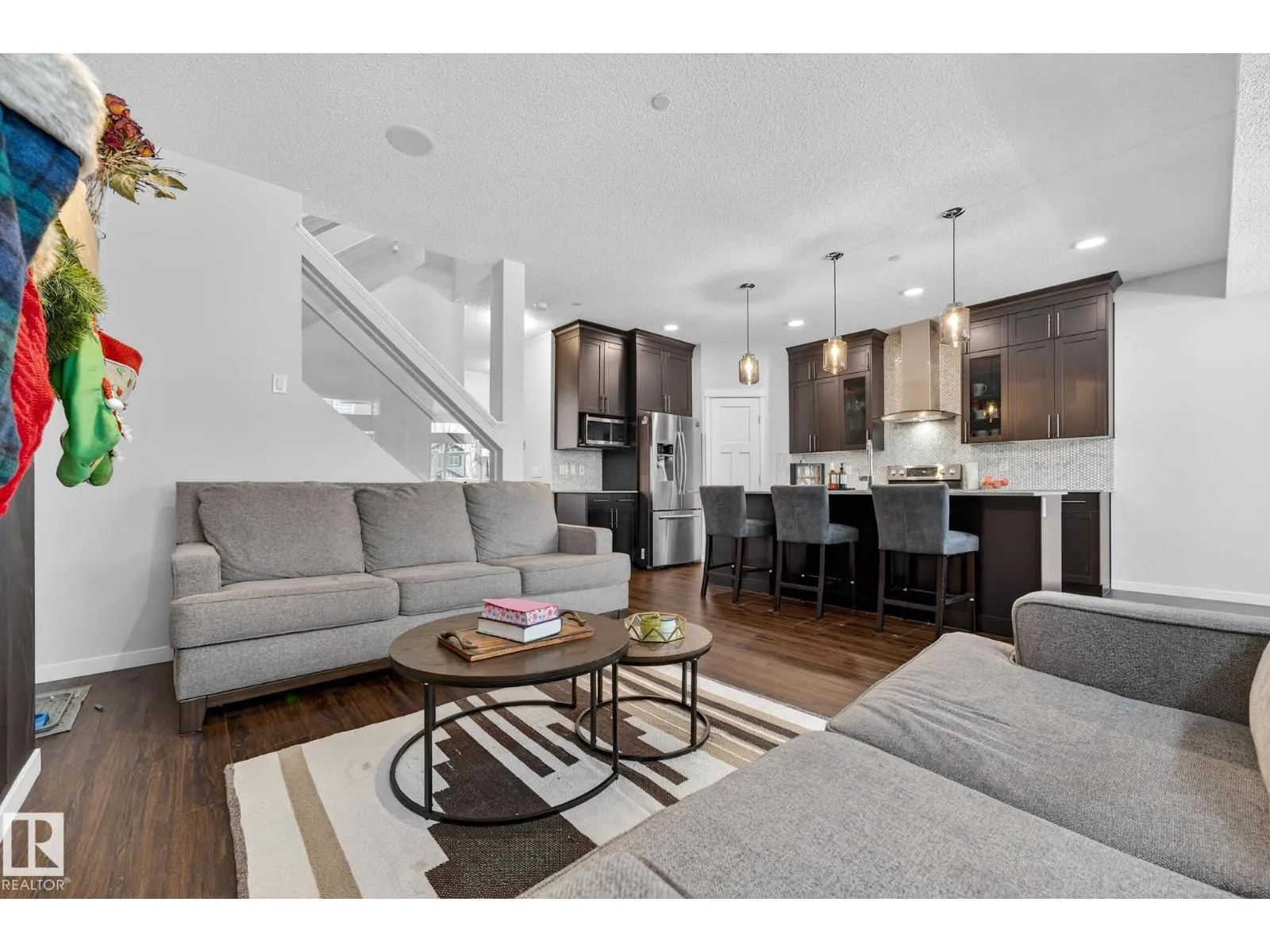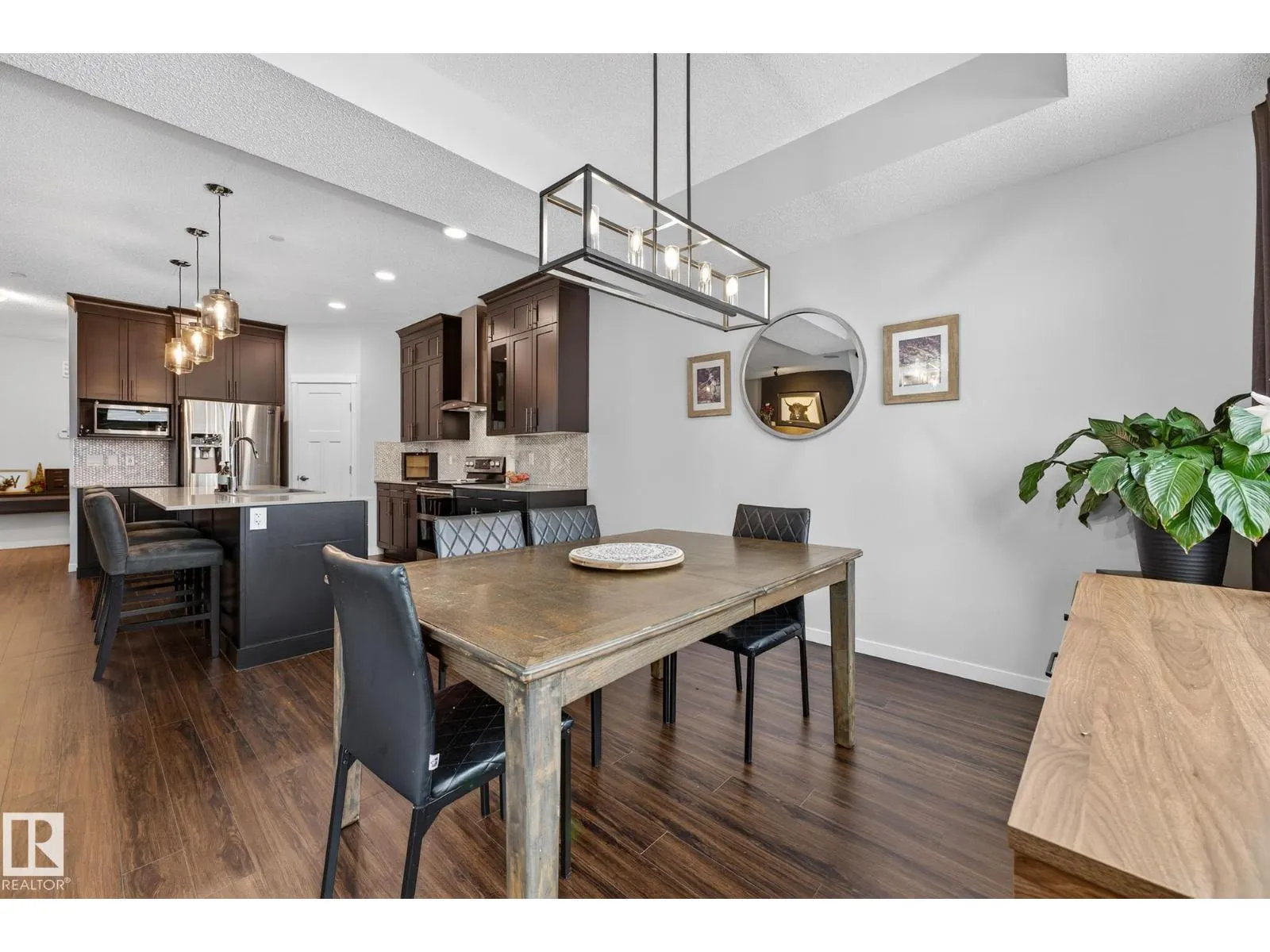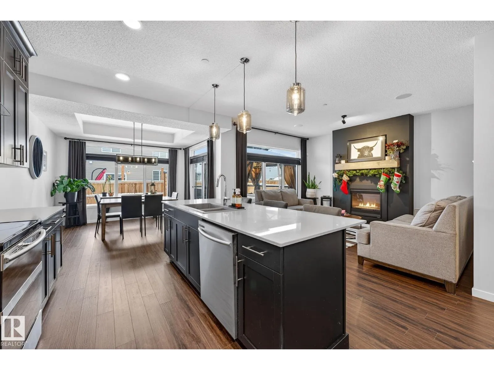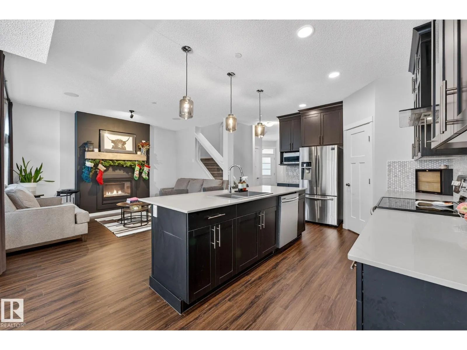 Step into style and comfort in this beautifully upgraded 1800sqft home! The main floor impresses with 9â ceilings, LVP flooring throughout, and a warm, inviting great room featuring a gas fireplace and custom feature wall. The designer kitchen steals the show with ceiling-height cabinets, glass accents, quartz countertops, full-height tile backsplash, a large island, Silgranit sink, and a spacious corner pantry. The bright dining nook opens directly to the deck for easy indoor-outdoor living. Upstairs, the bonus room with coffered ceiling is perfect for movie nights or family hangouts. The primary suite feels like a private retreat with its walk-in closet and spa-inspired 5-piece ensuite complete with double sinks, glass-enclosed shower, and luxurious soaker tub. Two additional bedrooms and convenient upstairs laundry complete the level. With upgraded appliances, built in speakers, blinds, drapes, A/C & in floor heat in garage already included, this home delivers comfort, style, and value from day one!!!! (id:27476)