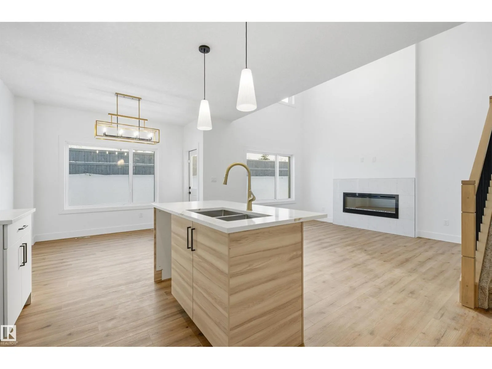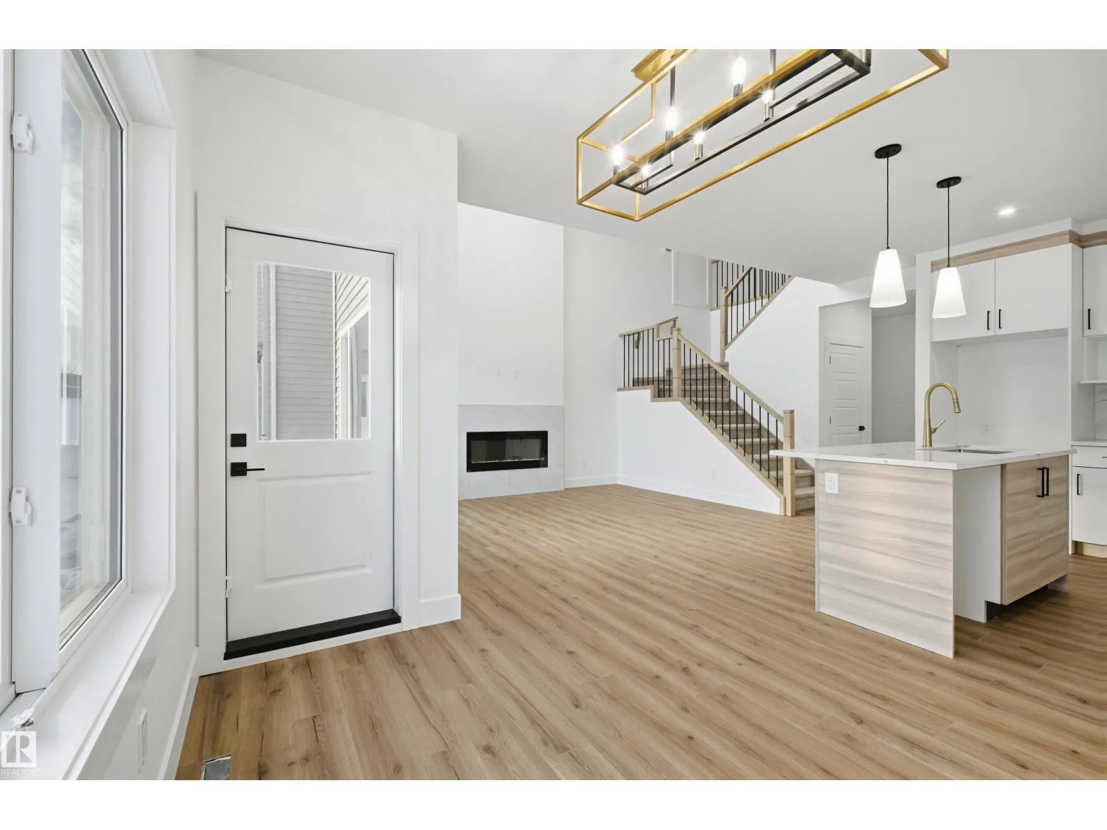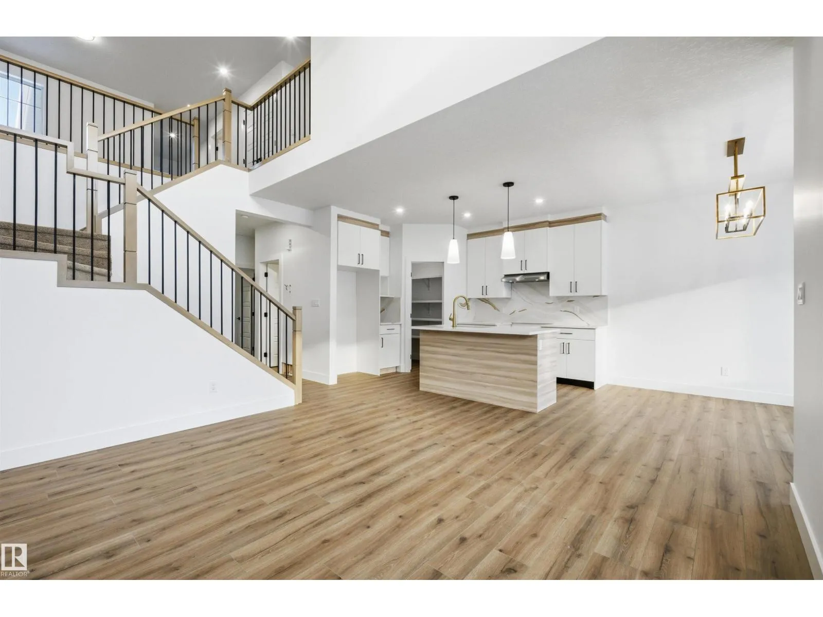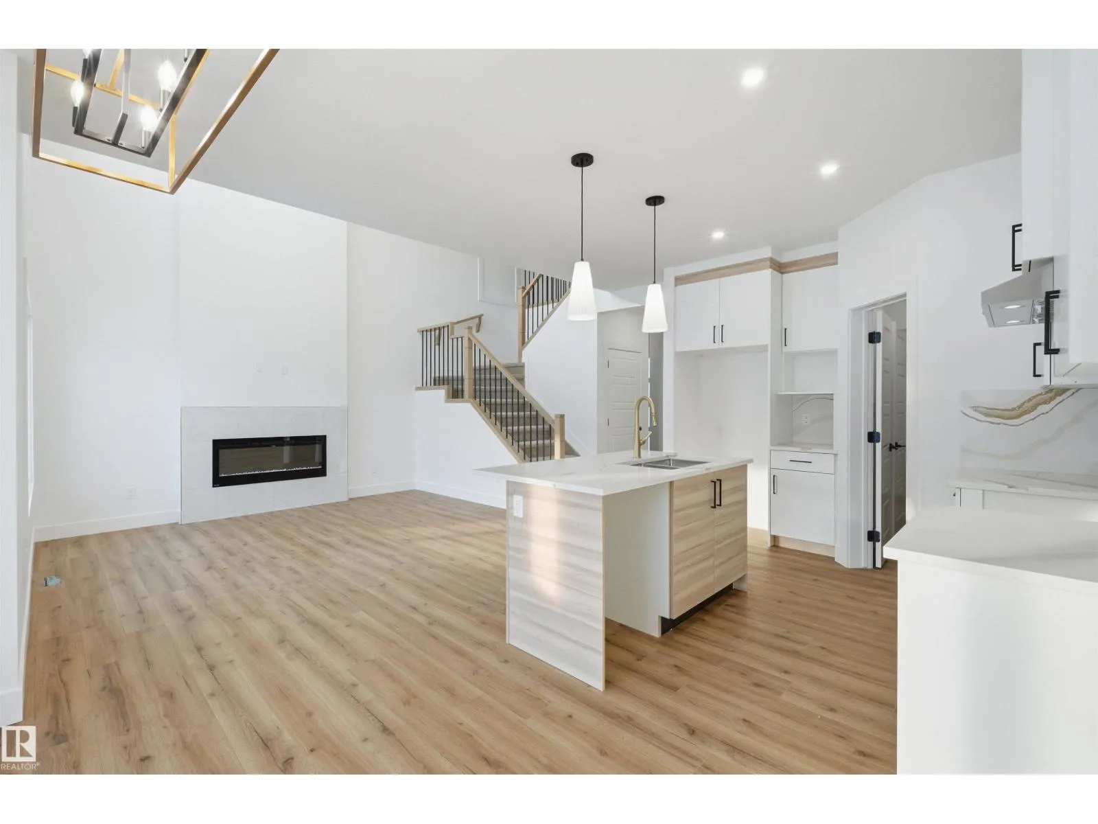 This brand new 3-bed, 3-bath two-storey offers over 1850 sq ft of modern design with upscale finishes at an entry-level price. Highlights include 9â ceilings, a main floor den, upstairs family room, and a walk-through pantry with solid shelving and microwave outlet. The kitchen impresses with quartz island, wood and white finishes, and absolutely stunning custom lighting. Luxury vinyl flooring flows through the main living areas, complemented by an electric fireplace and a soaring two-storey living room with a stylish wood handrail and black metal spindles. Enjoy two primary suites, upstairs laundry, built-in closet organizers, spacious bedrooms, and a separate side entrance. Located in Silverstoneâa welcoming community with trails, schools, and small-town charm with city conveniences. (id:27476)