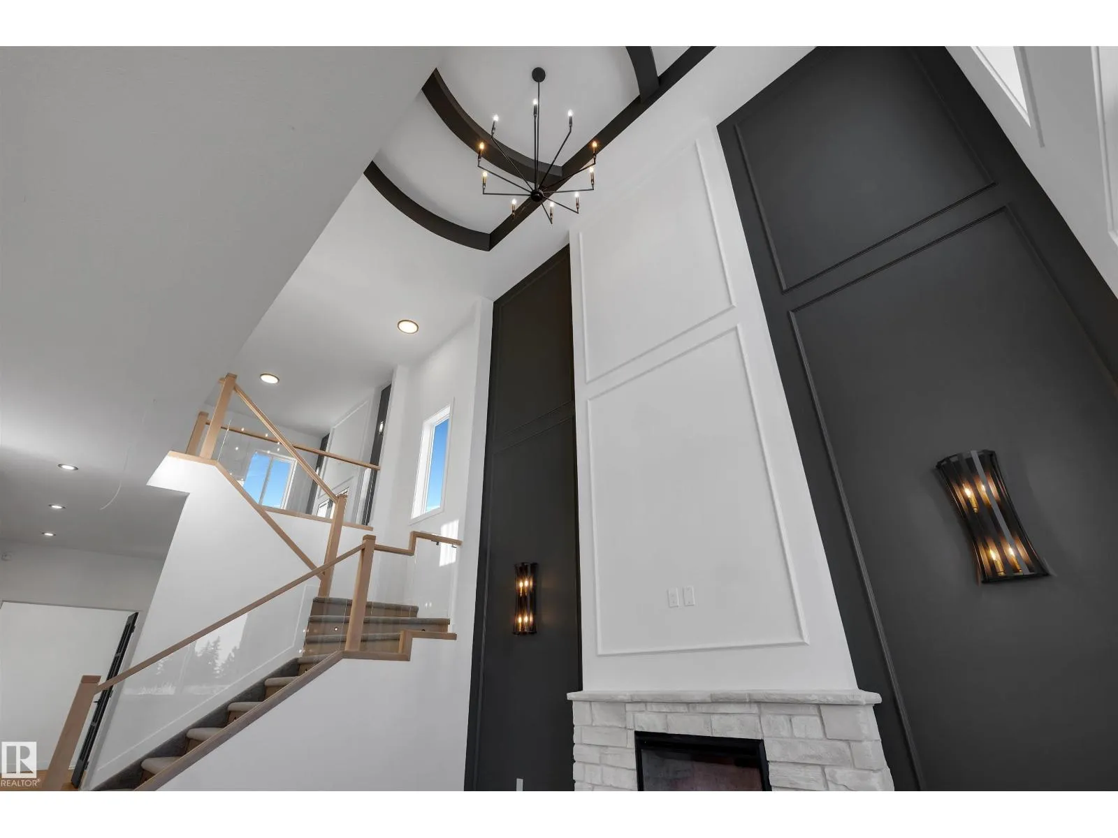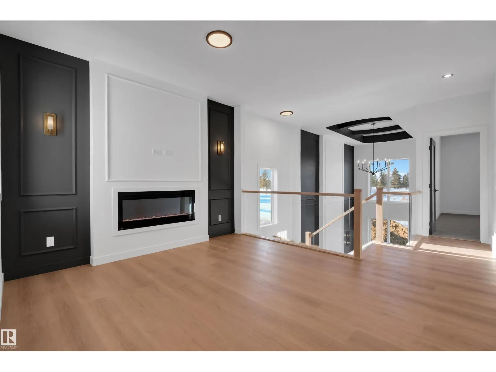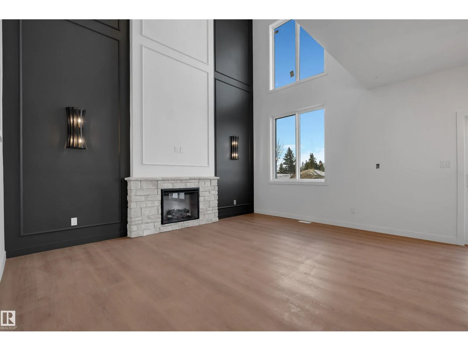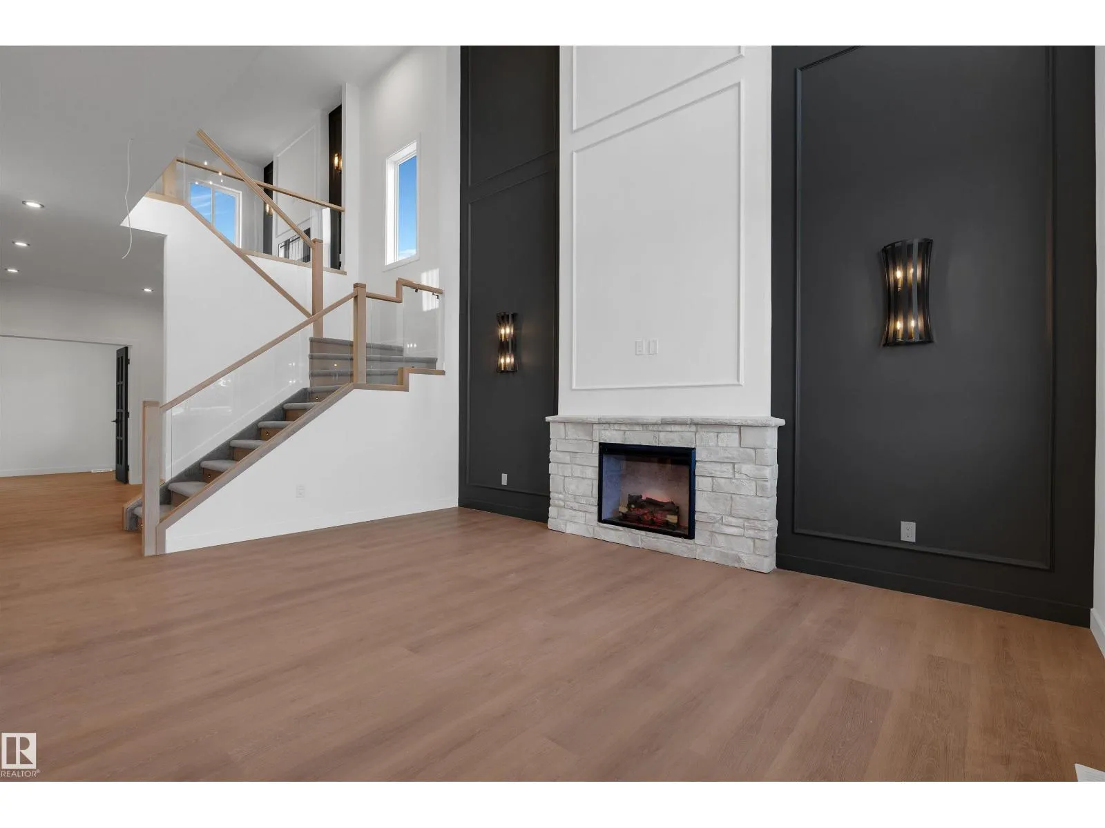 Experience upscale living in this stunning modern duplex featuring an impressive open-to-below living room with a striking feature wall and fireplace, flooded with natural light. The sleek kitchen is equipped with built-in stainless steel appliances, a large central island, and a pantry—perfect for everyday living and entertaining. A main-floor bedroom and full bathroom offer added convenience and flexibility.Upstairs, enjoy a spacious bonus room with fireplace, ideal for a family lounge or home office. The luxurious primary suite features a spa-inspired 5-piece ensuite and a walk-in closet with custom MDF shelving. Two additional well-sized bedrooms share a common bathroom, along with a dedicated laundry room. A separate side entrance leads to the unfinished basement, offering excellent future suite potential. Combining modern design, comfort, and versatility, this home is ideal for families, professionals, or investors. (id:27476)