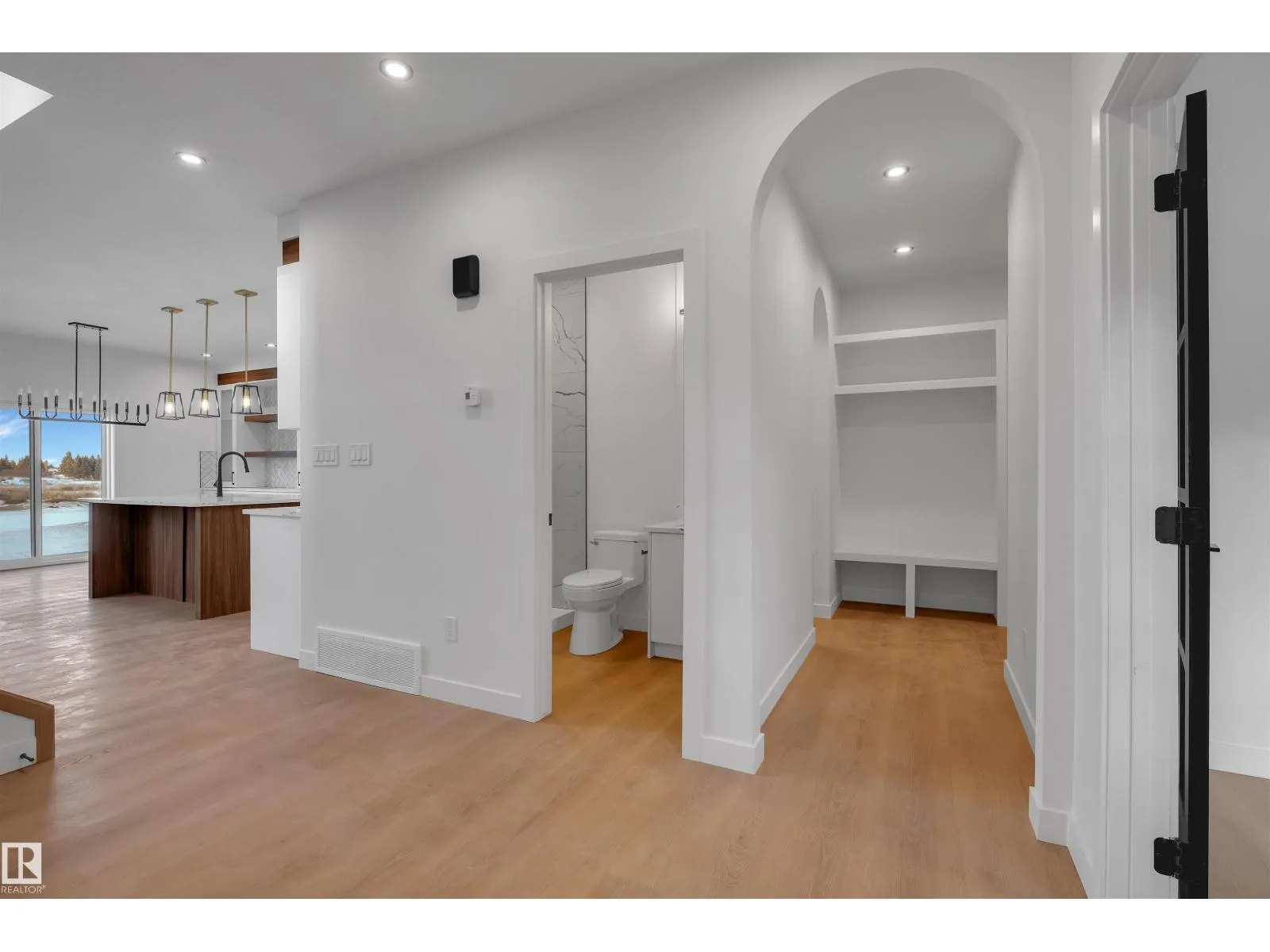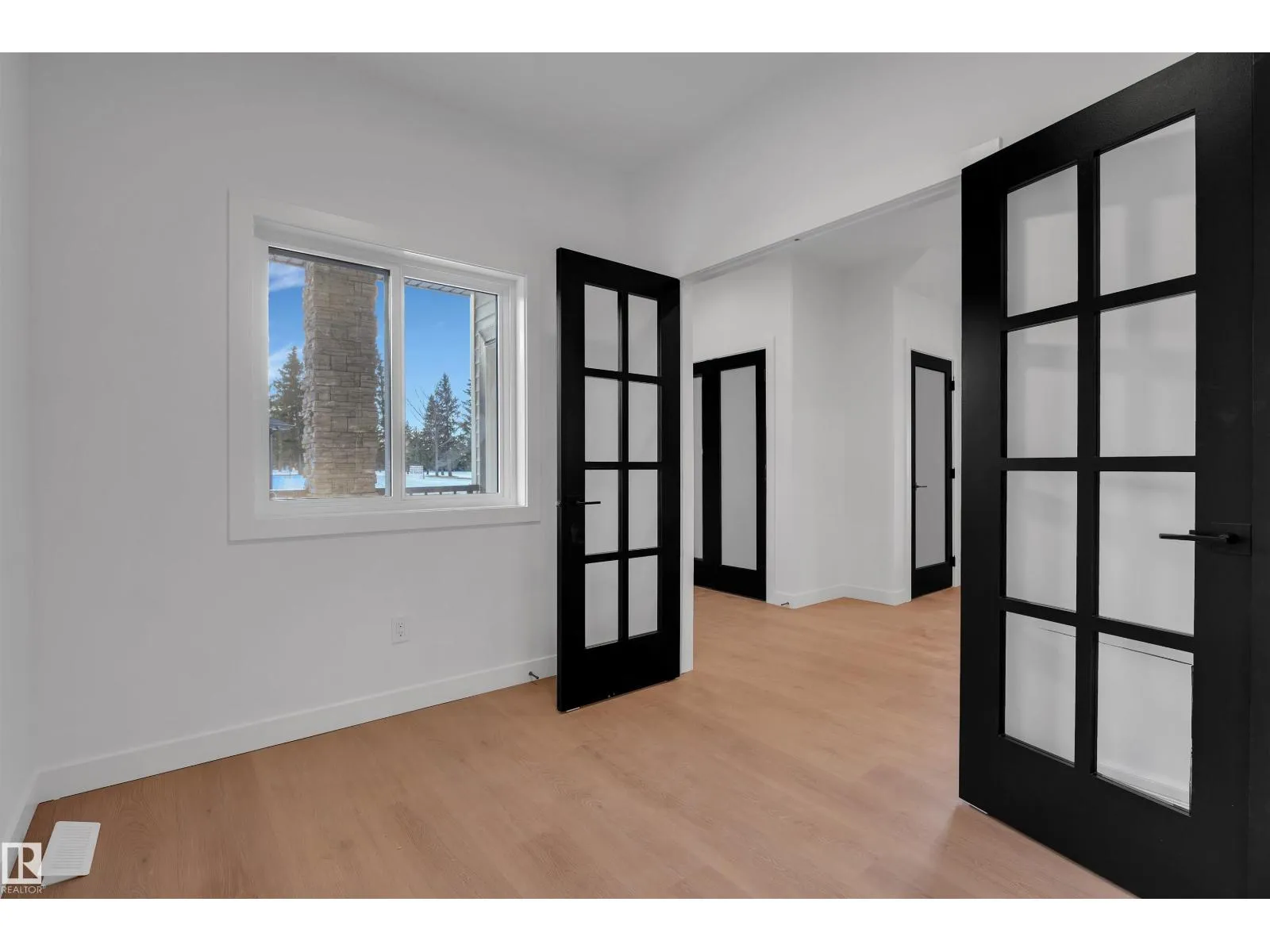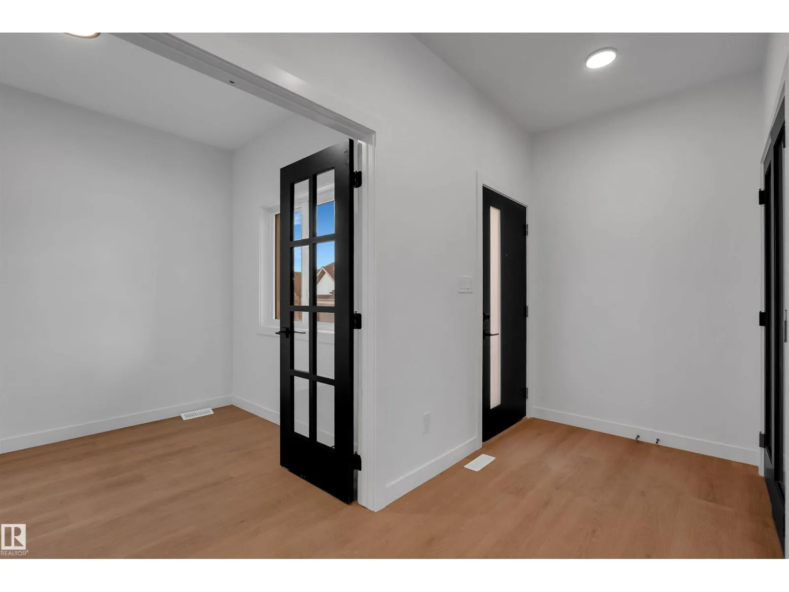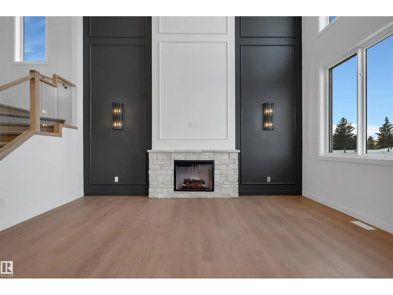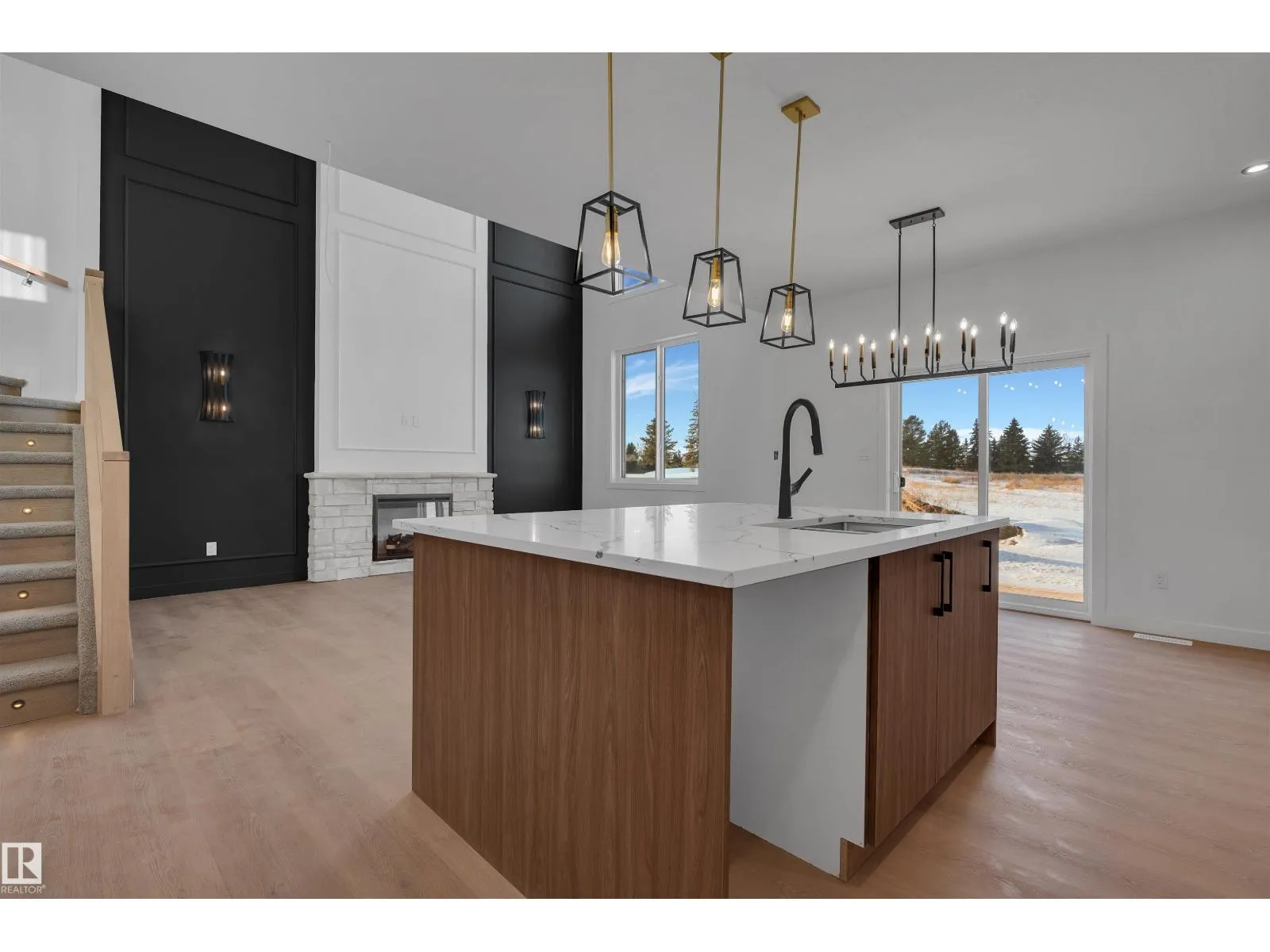 Experience upscale living in this stunning modern duplex featuring an impressive open-to-below living room with a striking feature wall and fireplace, flooded with natural light. The sleek kitchen is equipped with built-in stainless steel appliances, a large central island, and a pantry—perfect for everyday living and entertaining. A main-floor bedroom and full bathroom offer added convenience and flexibility.Upstairs, enjoy a spacious bonus room with fireplace, ideal for a family lounge or home office. The luxurious primary suite features a spa-inspired 5-piece ensuite and a walk-in closet with custom MDF shelving. Two additional well-sized bedrooms share a common bathroom, along with a dedicated laundry room. A separate side entrance leads to the unfinished basement, offering excellent future suite potential. Combining modern design, comfort, and versatility, this home is ideal for families, professionals, or investors. (id:27476)