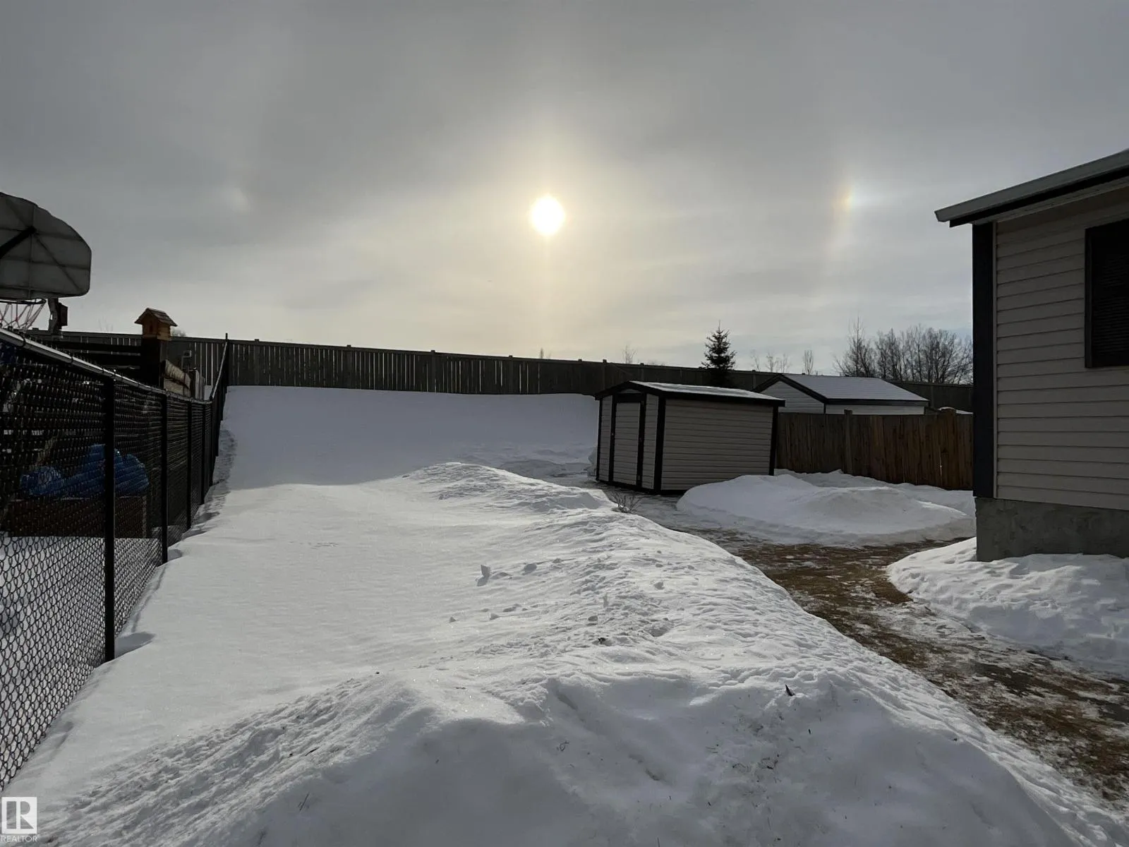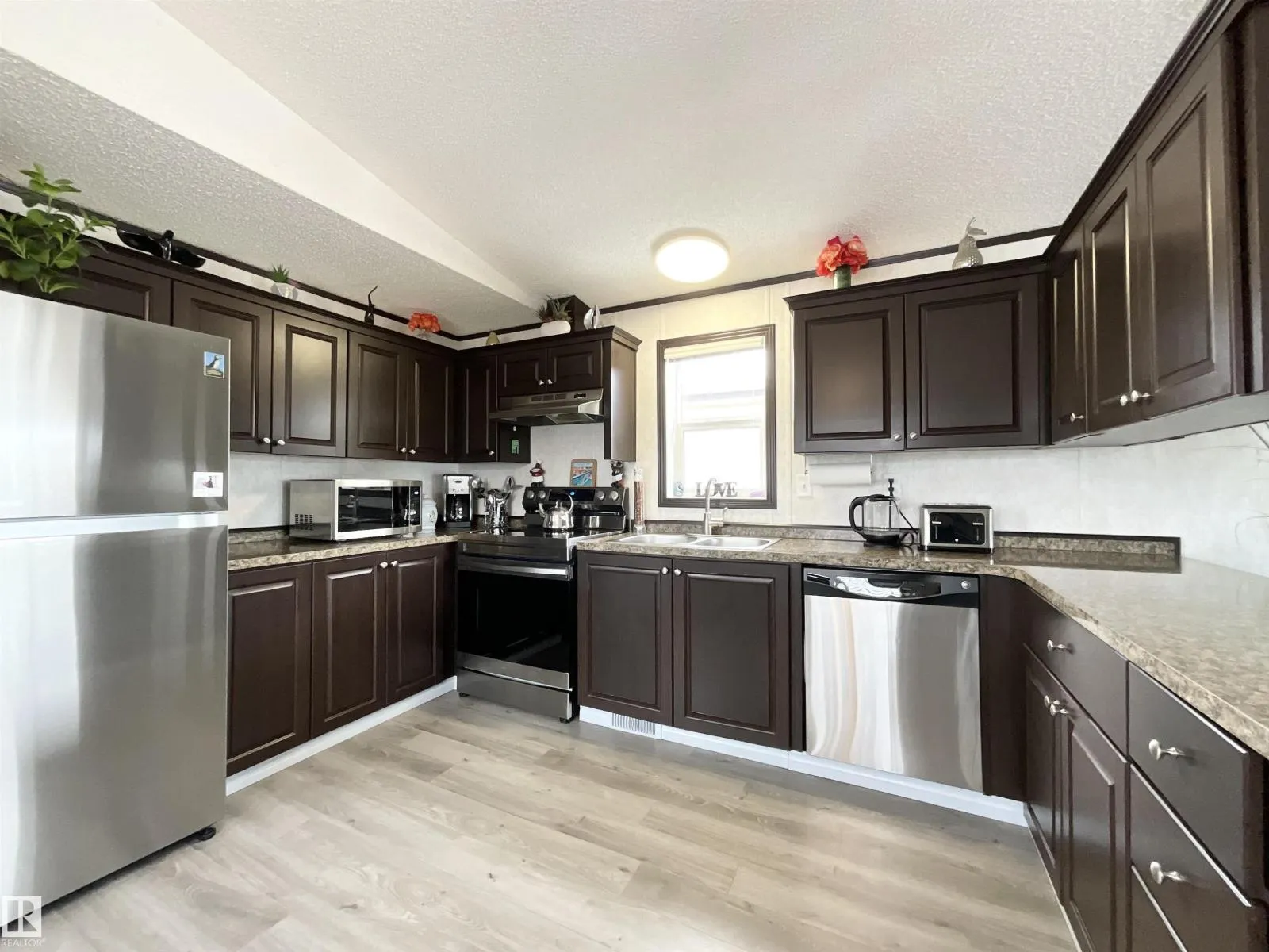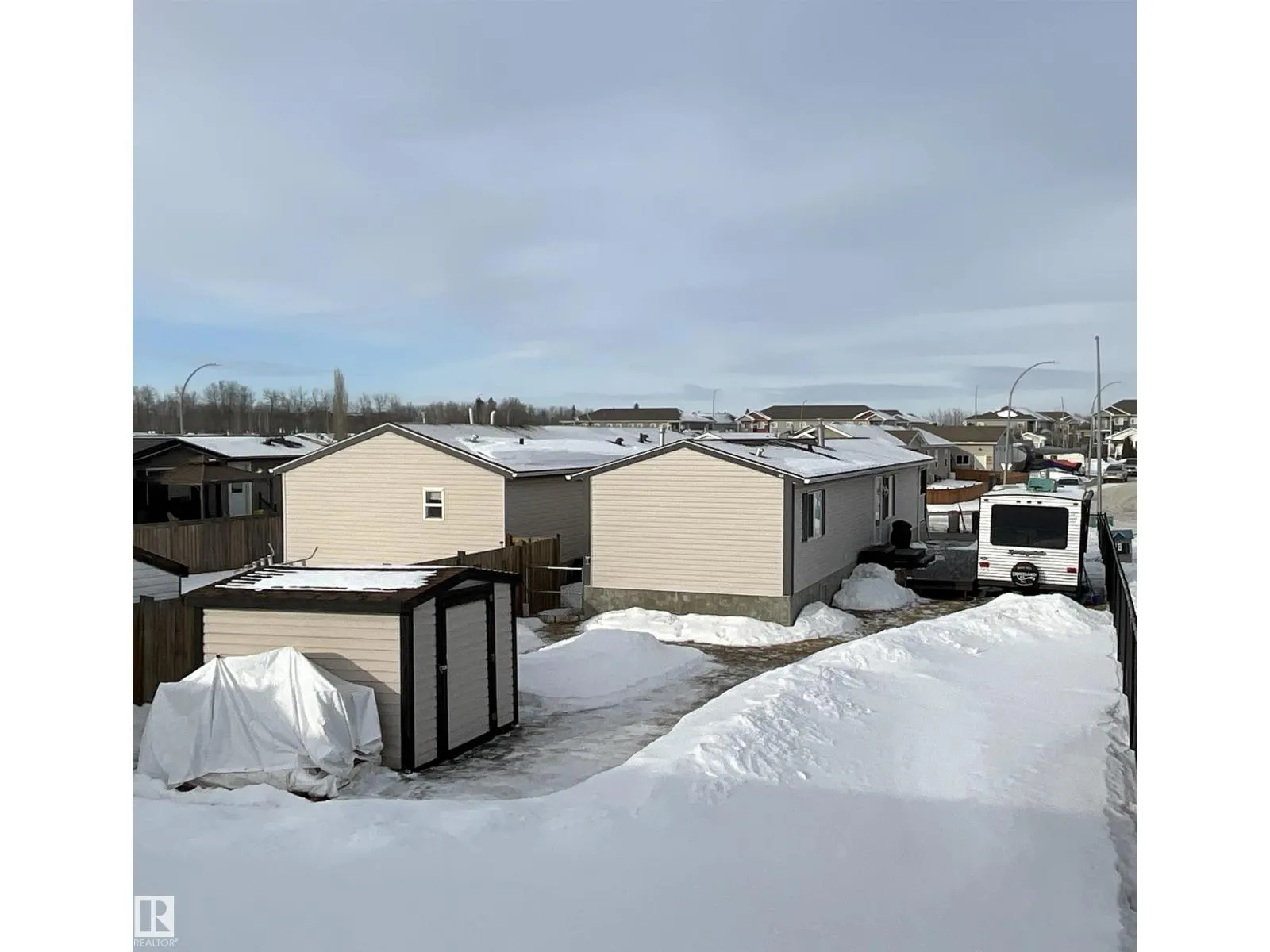 Welcome home to this immaculately maintained bungalow, located on a quiet street in the growing community of Stony Plain. There are ZERO lot fees or condo fees; you own the land! This property resides on a massive 600 square meter lot with a fully fenced backyard, and a huge paved driveway with space for multiple vehicles and an RV. The yard provides plenty of room for future additions, a potential garage, and an abundance of space for children and dogs to play. Upgrades over the past 2 years include: Fence, luxury vinyl flooring, lighting, blinds, fan, stove, fridge, sink, toilet, and front door. The kitchen is large, bright, and has ample cupboard space, while the bathroom is clean and modern. A tremendous location, just down the road from the Stony Plain Golf Course, daycares, grocery stores, and restaurants. If you are an individual, couple, or small family looking for a house with a giant yard to call your own, you won't find better value than this gem. (id:27476)