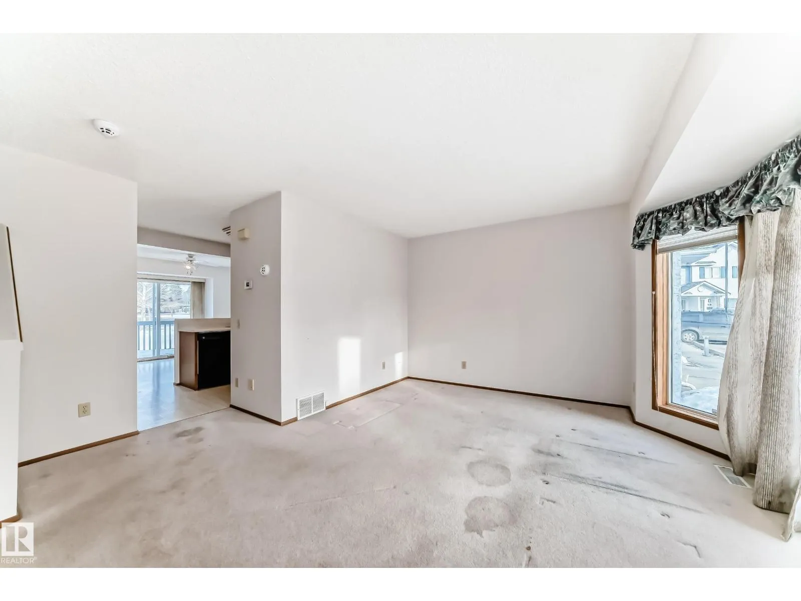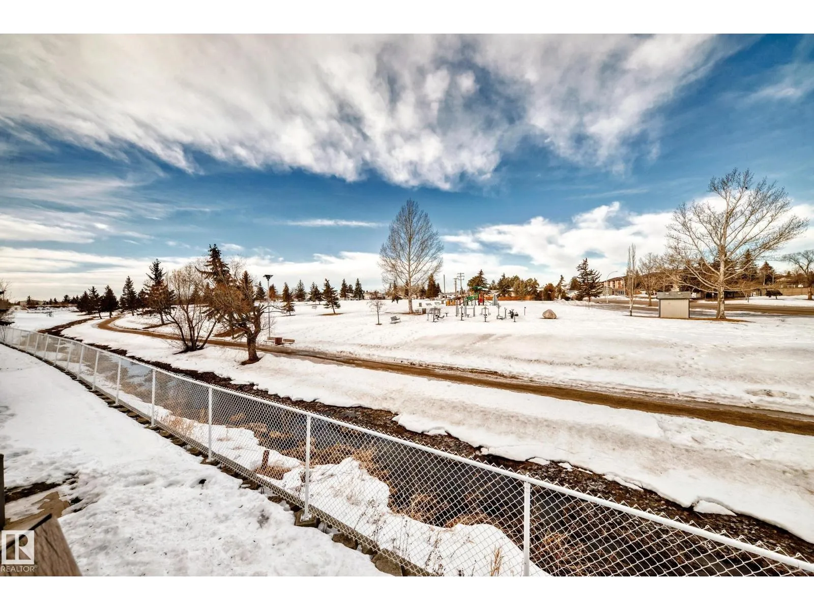 Affordable townhouse living with an unbeatable location! This 2-storey condo offers 1,126 sq. ft. of functional living space with 3 bedrooms and 2 bathrooms, plus a full, unfinished basement ready for your personal touch. Perfect for first-time buyers, investors, or those looking to build equity by doing a few updates. Enjoy peaceful views from your back deck overlooking a park and green space, providing privacy and a quiet setting. This home has a large eat in kitchen, cozy living room and central air conditioning. With two assigned outdoor parking stalls, convenience is built in. Low condo fees make this an even more attractive option. Situated directly across from a school and just minutes from Highway 16A for an easy commute to Edmonton, this home is also close to shopping amenities and the future Costco development. With parks, schools, and everyday conveniences at your doorstep, this well-located townhouse is a fantastic opportunity at an affordable price point. (id:27476)
