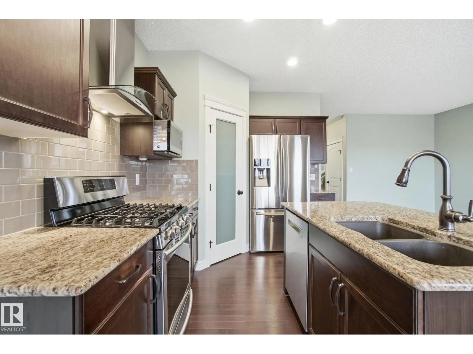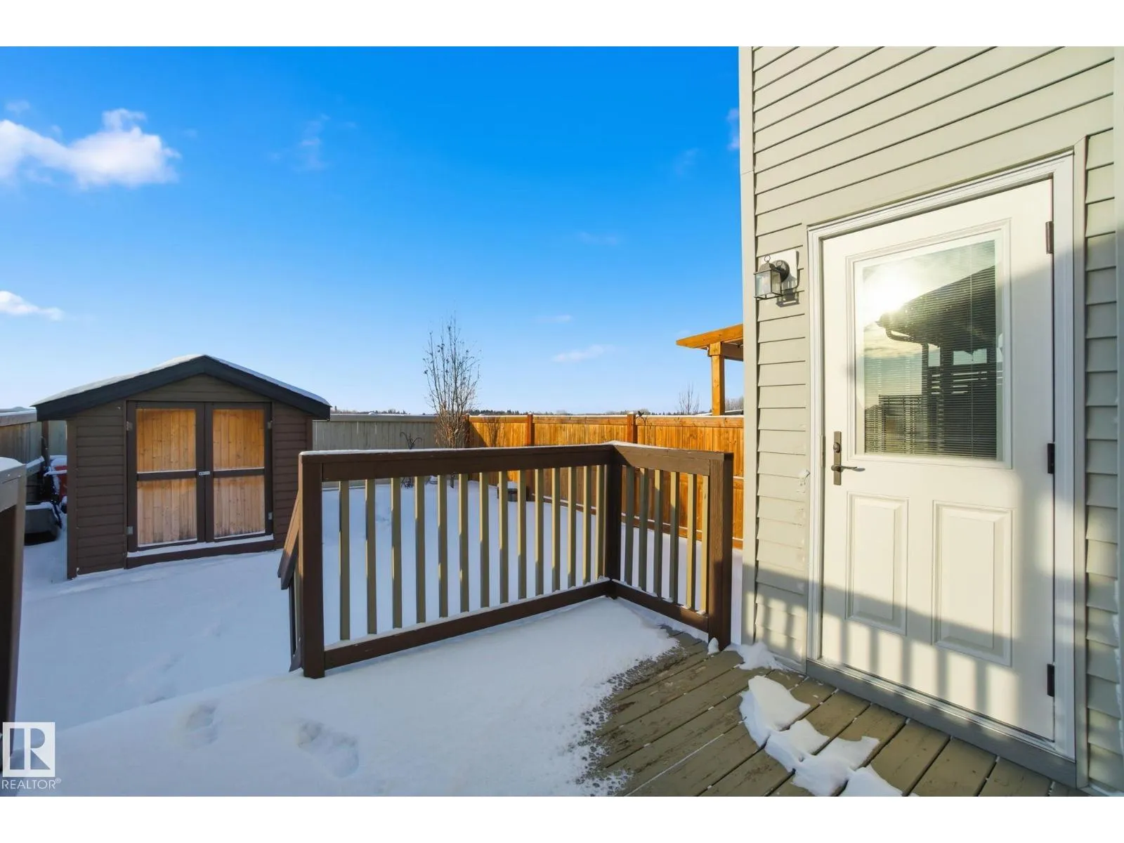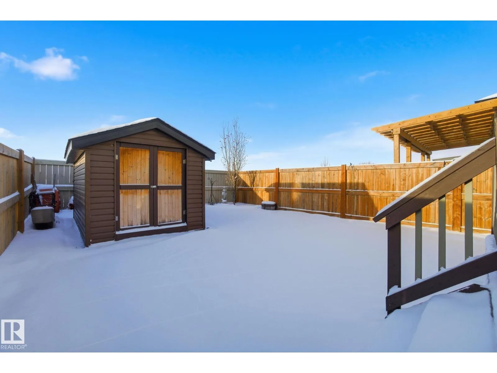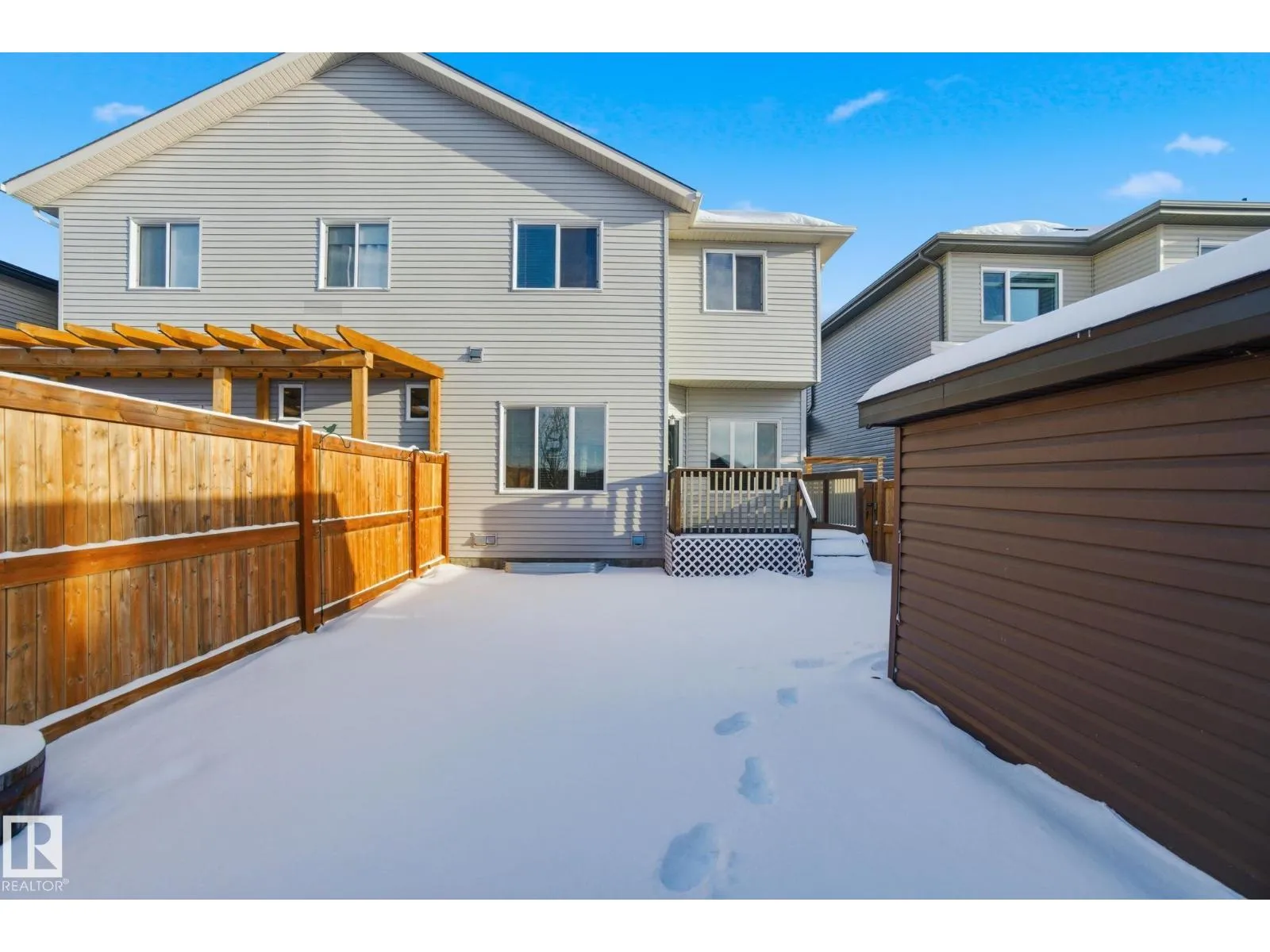 Feel at home the moment you walk in the door of this fully finished 2 storey in Stony Plain's Southcreek subdivision. NO REAR NEIGHBOURS! Large open floorplan with big living room with tons of natural light. Kitchen has a corner pantry and a nice island for people to congregate around. Dining area is perfect for hosting family and friends. MAIN FLOOR LAUNDRY! Head upstairs and you'll find a great bonus room; ideal for watching a movie! Large master suite with vaulted ceilings, a large walk in closet and 4pc ensuite. 2 more bedrooms are great for kids, guests or a home office. Basement is fully developed with a large rec room and another bathroom. Central A/C. Double attached garage keeps the snow off the vehicles! West facing backyard is fully landscaped and even has extra storage with a shed. Farm field behind gives you plenty of views. Quiet cul-de-sac with great neighbours! (id:27476)