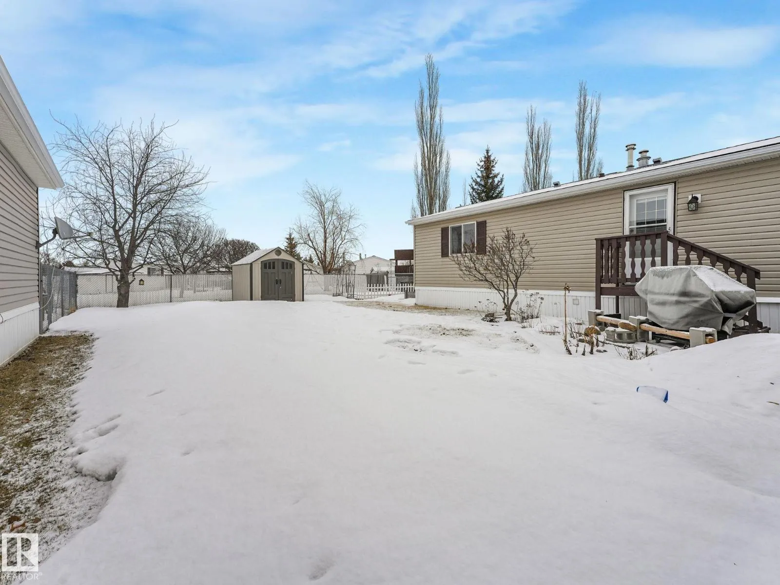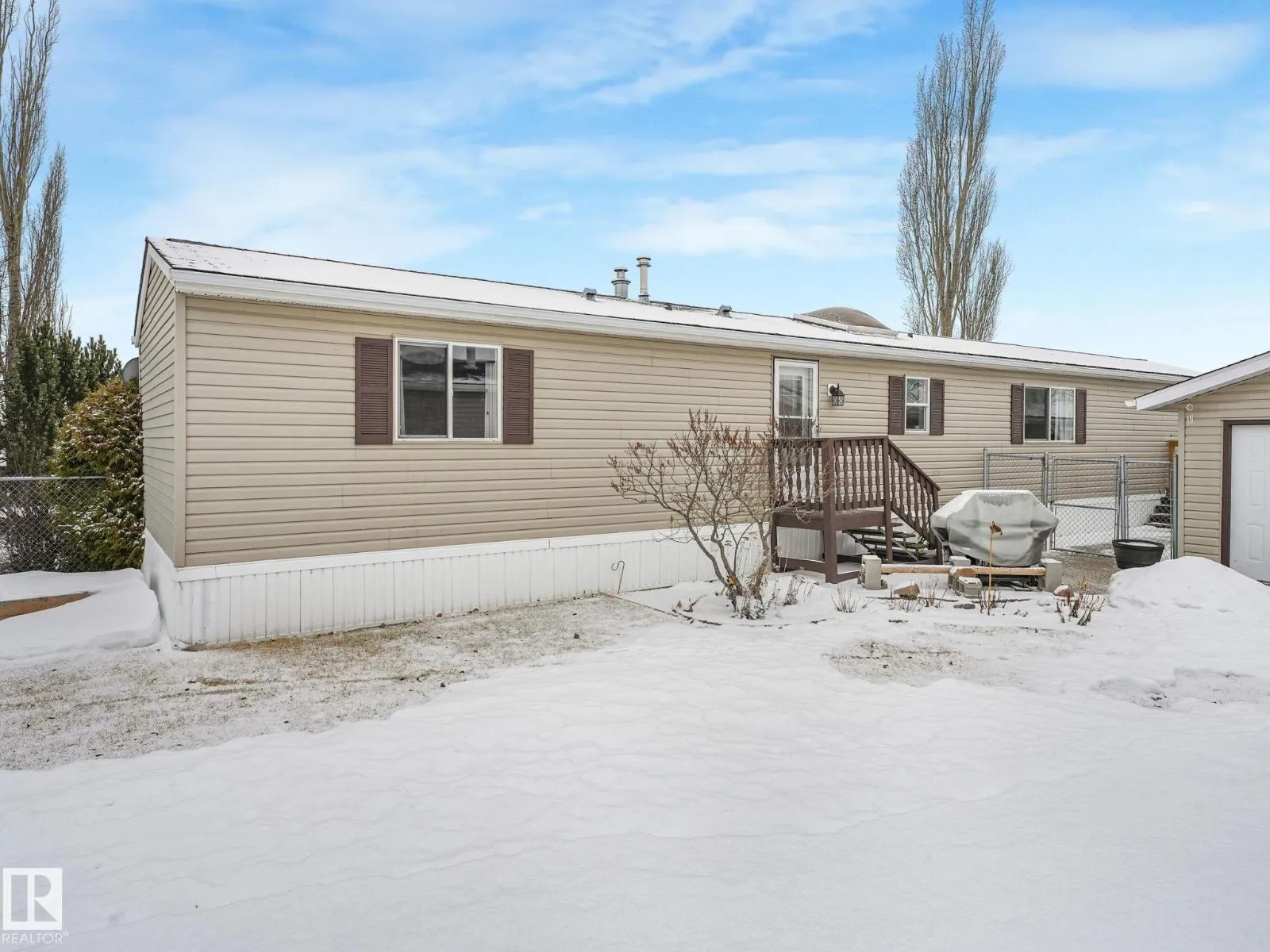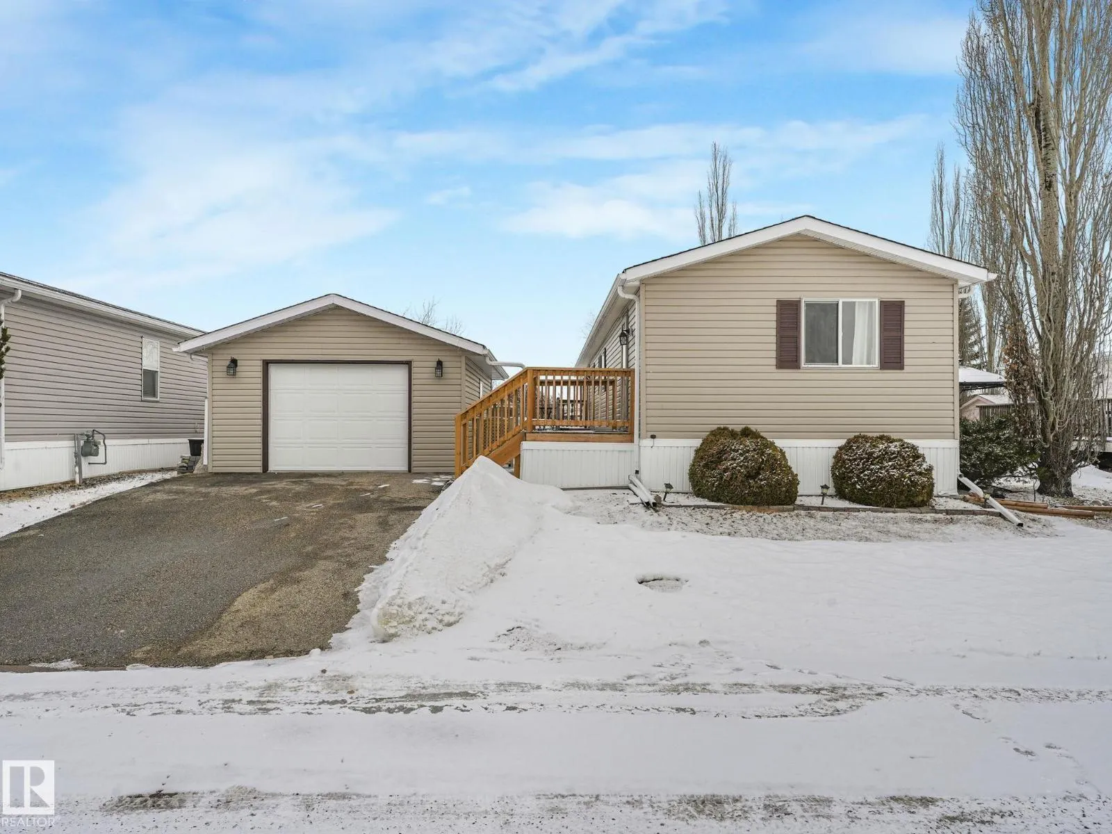 **Welcome to in Meridian Meadows!** Nestled in the sought-after Meridian Meadows Community, this charming 3-bedroom, 2-bathroom manufactured home offers incredible value in a quiet, well-kept neighborhood brimming with friendly vibes. Enjoy a spacious lot featuring a large fenced backyard with a dedicated garden area â perfect for kids, pets, and weekend barbeques. A nearby dog park adds even more outdoor enjoyment. Inside, discover almost all brand-new kitchen appliances and a clever Jack and Jill 2-piece bathroom connecting the bedrooms. A convenient second door provides direct backyard access for effortless indoor-outdoor living. Garage parking adds practical convenience for everyday life. This community is perfectly positioned. Still living in a small town feel with easy access to amenities in both Spruce Grove and Edmonton, making daily errands and commutes a breeze. This is an incredible opportunity and it's ready to move right in!! (id:27476)