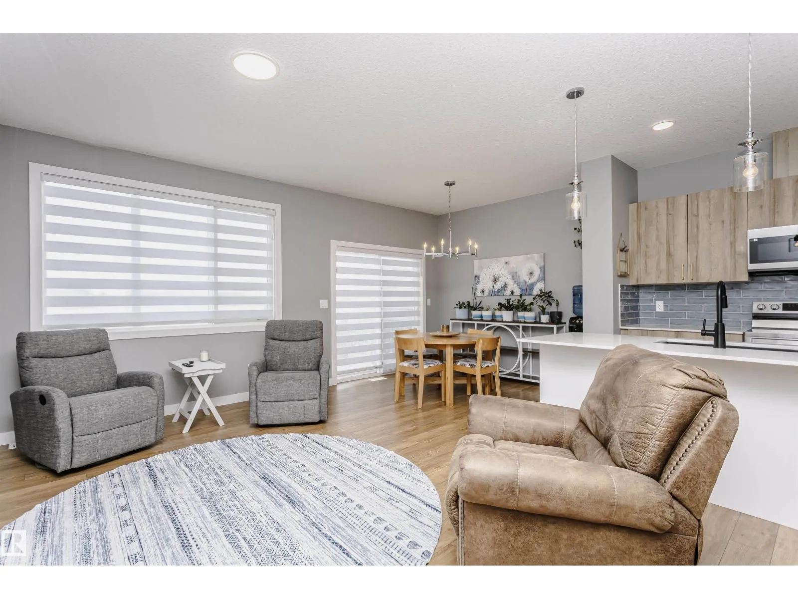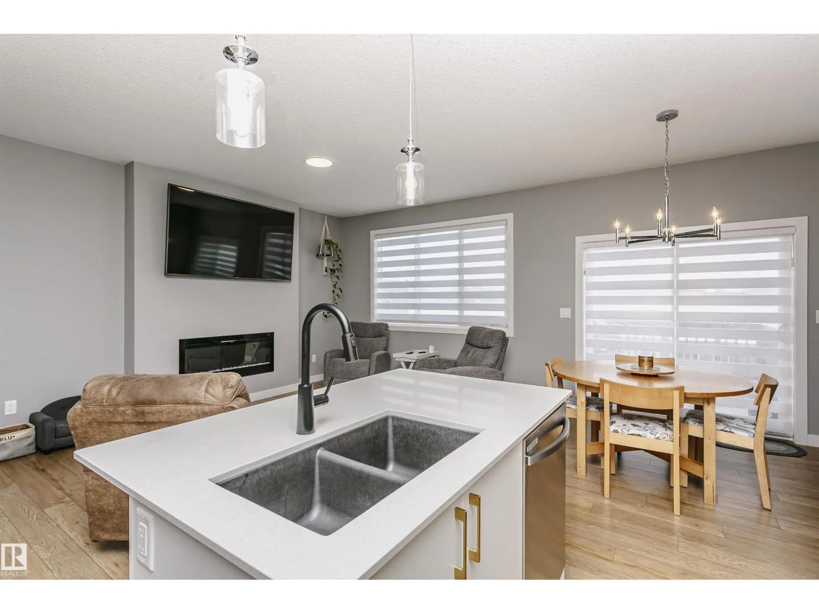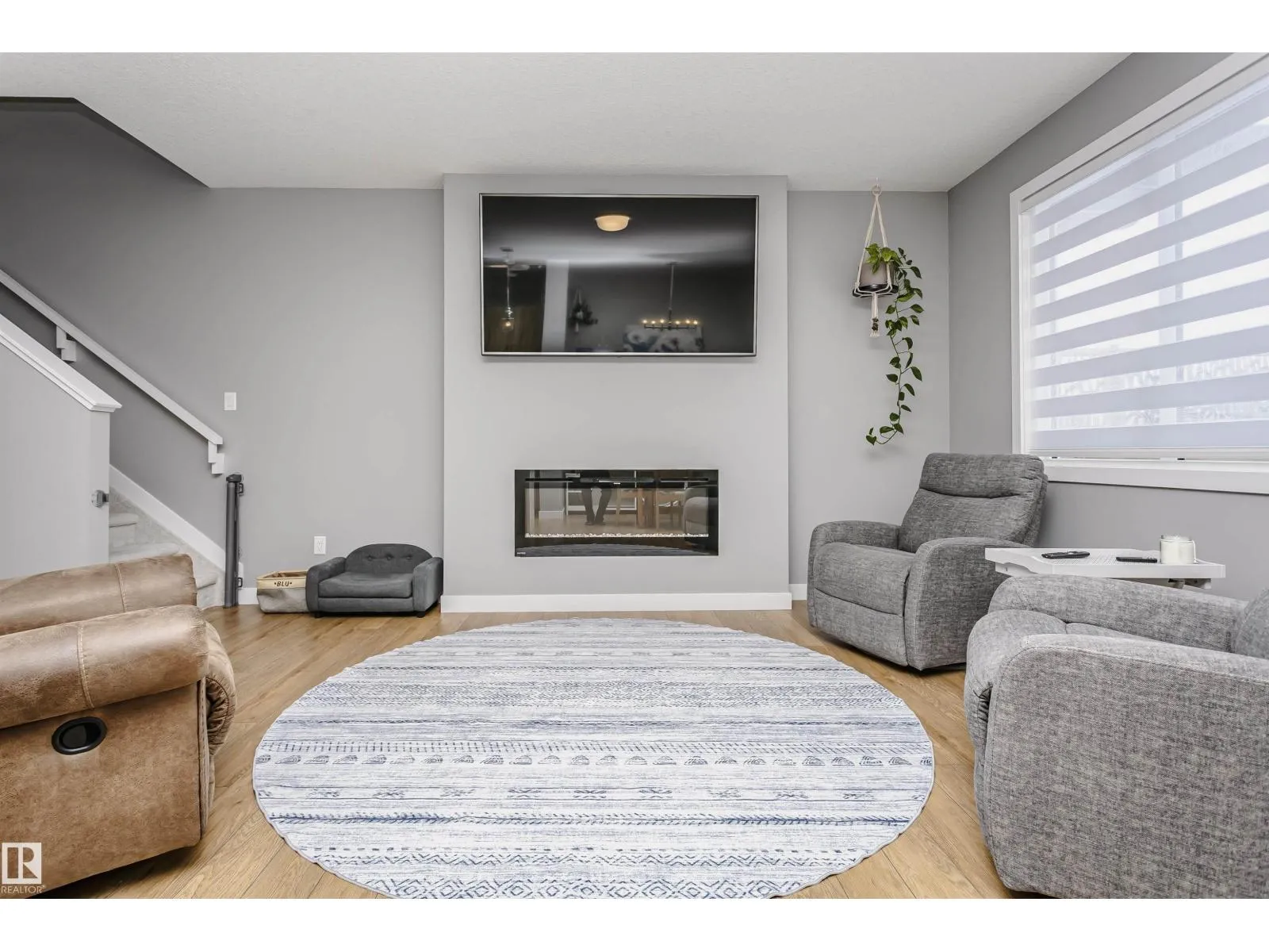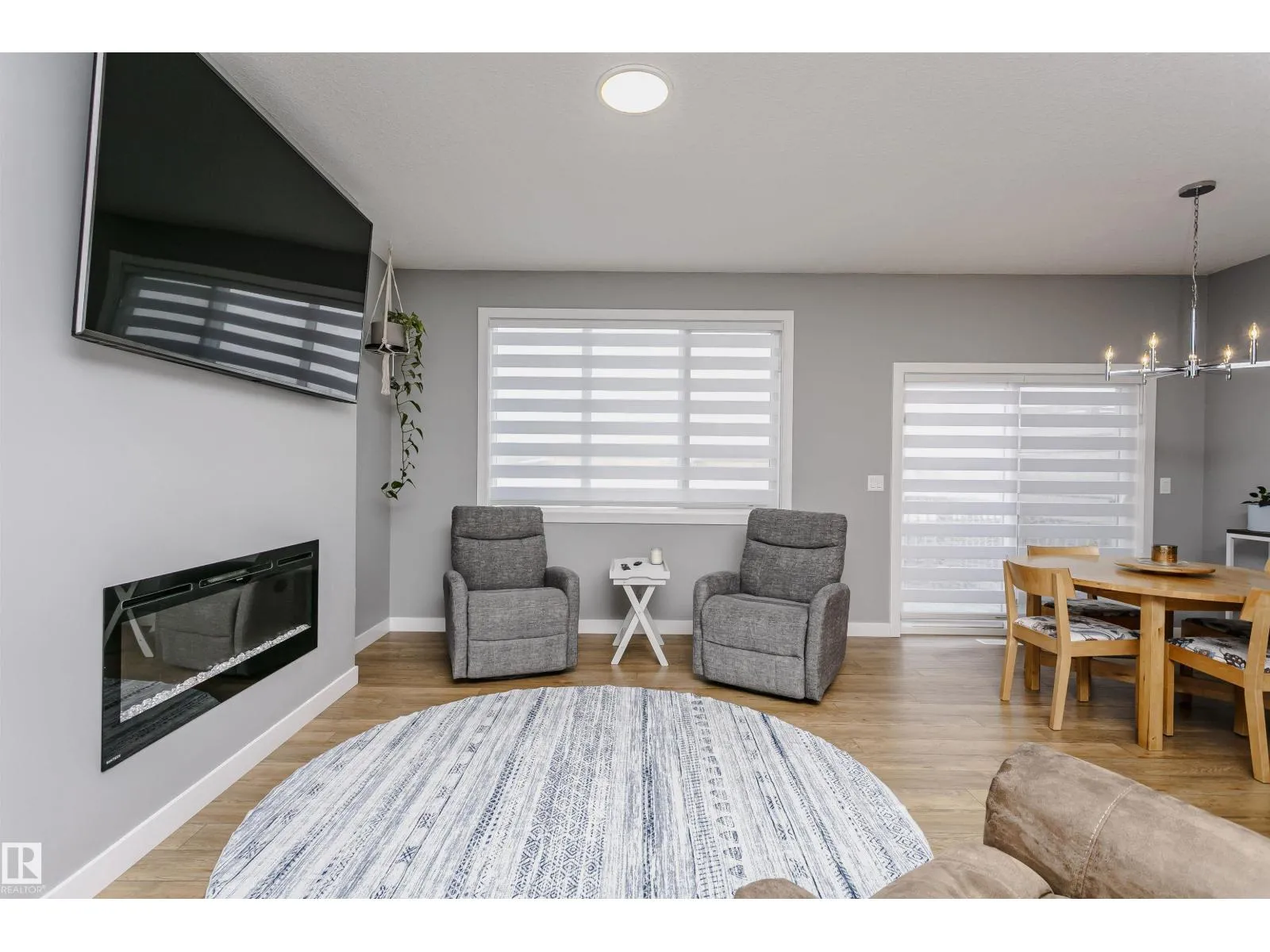 Welcome to this beautifully maintained home built by Alquinn Homes, now ready for its second owner. The bright open-concept main floor features a modern kitchen, dining area, and spacious great room, perfect for everyday living and entertaining. A cozy electric fireplace adds warmth and charm to the space. Upstairs youâll find three generously sized bedrooms, including a primary suite with a 4-piece ensuite, an additional full bathroom, and the convenience of upstairs laundry. The unfinished basement is ready for your future plansâwhether thatâs a family room, gym, or extra living space. Outside, the yard is fully landscaped so you can simply move in and enjoy. Located in a quiet neighbourhood just a short walk to everyday amenities including a gas station, convenience store, daycare, restaurants, and more. A modern, move-in ready home with room to grow! (id:27476)