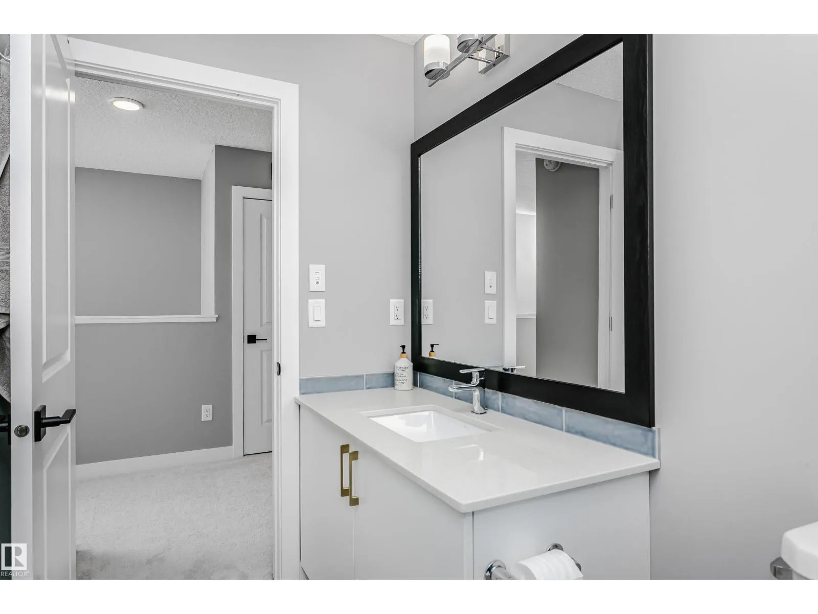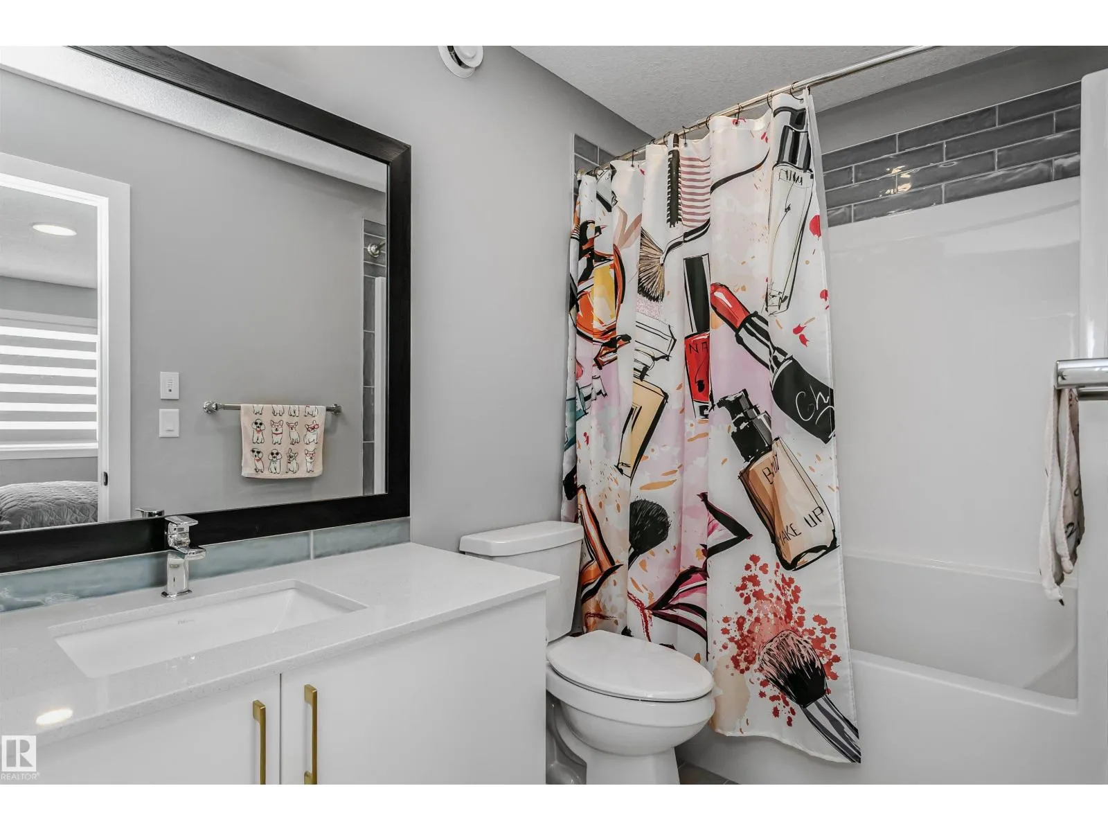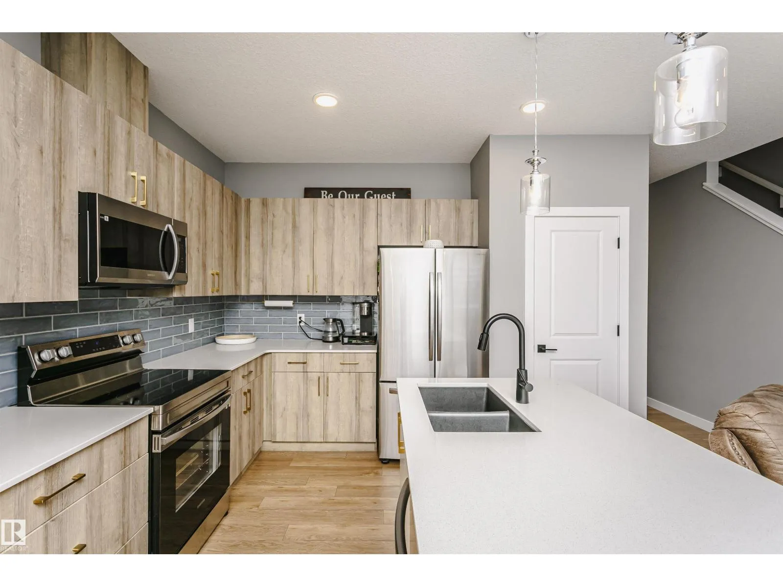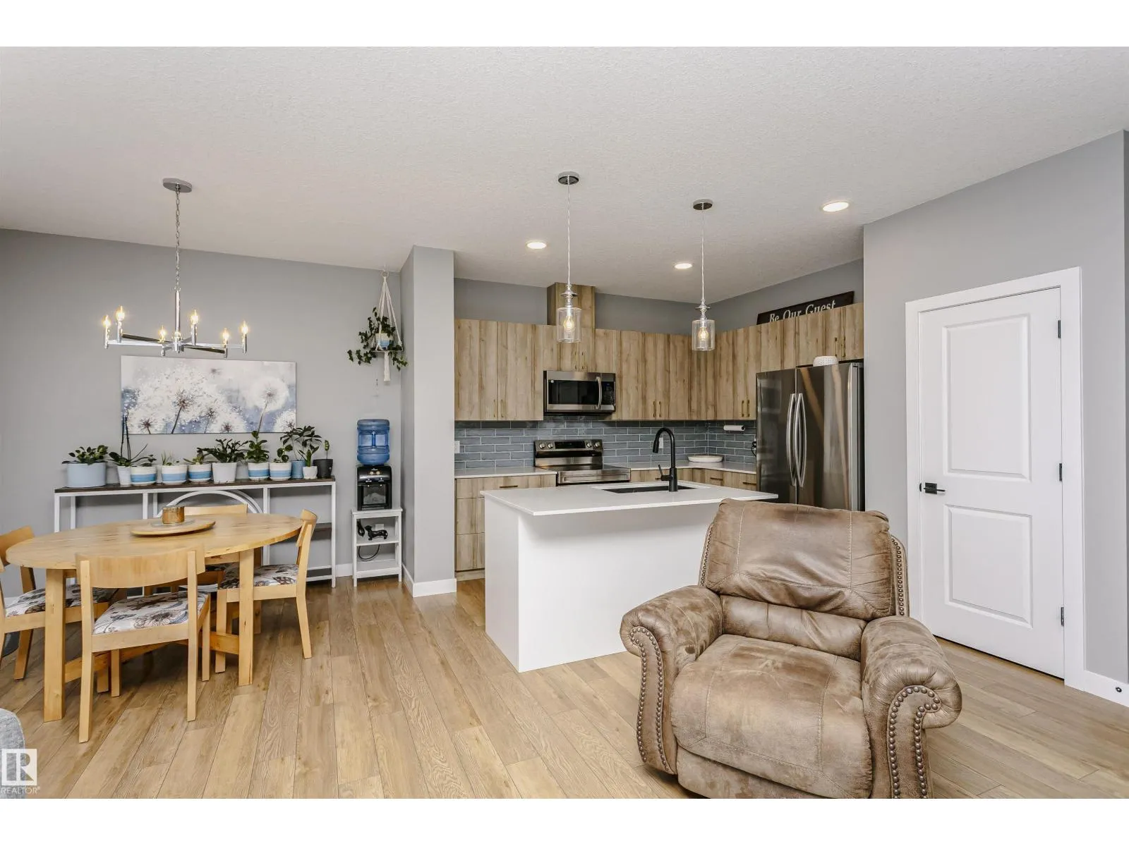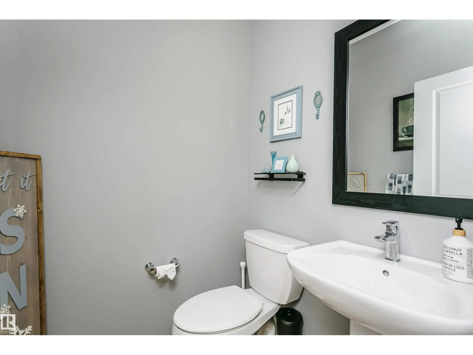Welcome to this beautifully maintained home built by Alquinn Homes, now ready for its second owner. The bright open-concept main floor features a modern kitchen, dining area, and spacious great room, perfect for everyday living and entertaining. A cozy electric fireplace adds warmth and charm to the space. Upstairs youâll find three generously sized bedrooms, including a primary suite with a 4-piece ensuite, an additional full bathroom, and the convenience of upstairs laundry. The unfinished basement is ready for your future plansâwhether thatâs a family room, gym, or extra living space. Outside, the yard is fully landscaped so you can simply move in and enjoy. Located in a quiet neighbourhood just a short walk to everyday amenities including a gas station, convenience store, daycare, restaurants, and more. A modern, move-in ready home with room to grow! (id:27476)