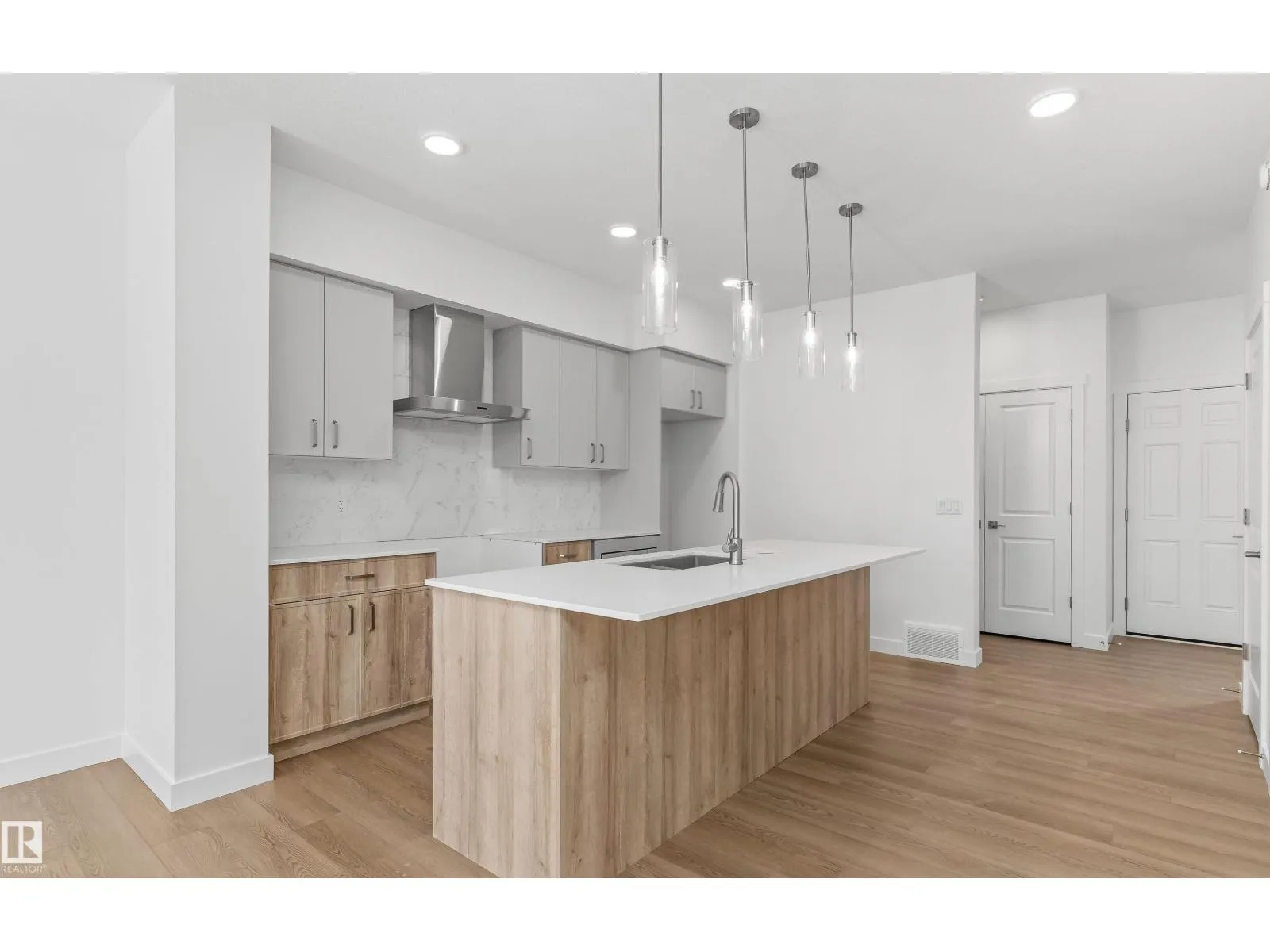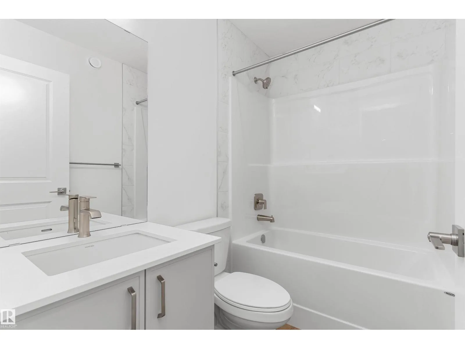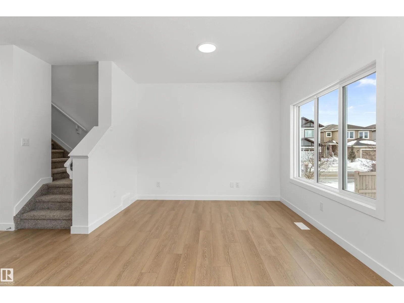 Built by Sterling Homes, this welcoming duplex in SouthCreek blends comfort, style, and everyday practicality in a peaceful Stony Plain setting. Triple pane windows and 9â ceilings enhance the bright, open main floor, where the foyer flows into a spacious living area designed for relaxed family living. The kitchen is thoughtfully finished with quartz countertops, a central island, upgraded cabinetry, chimney hood fan, built-in microwave, and full-height tile backsplashâbringing both function and modern appeal. Large rear windows and a sliding patio door fill the great room and dining area with natural light while offering views of the future backyard deck. Upstairs, the primary suite provides a private escape with a walk-in closet and ensuite featuring double sinks and a tub/shower combo. Two additional bedrooms, a full bath, upper laundry, and a versatile bonus room complete this well-designed home with space to grow. (id:27476)
