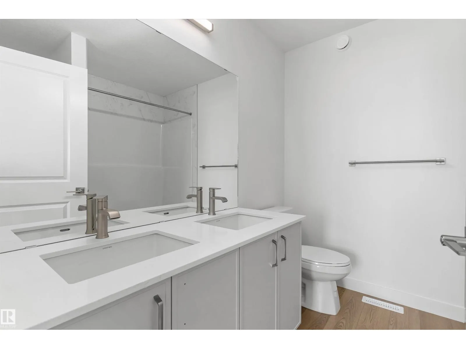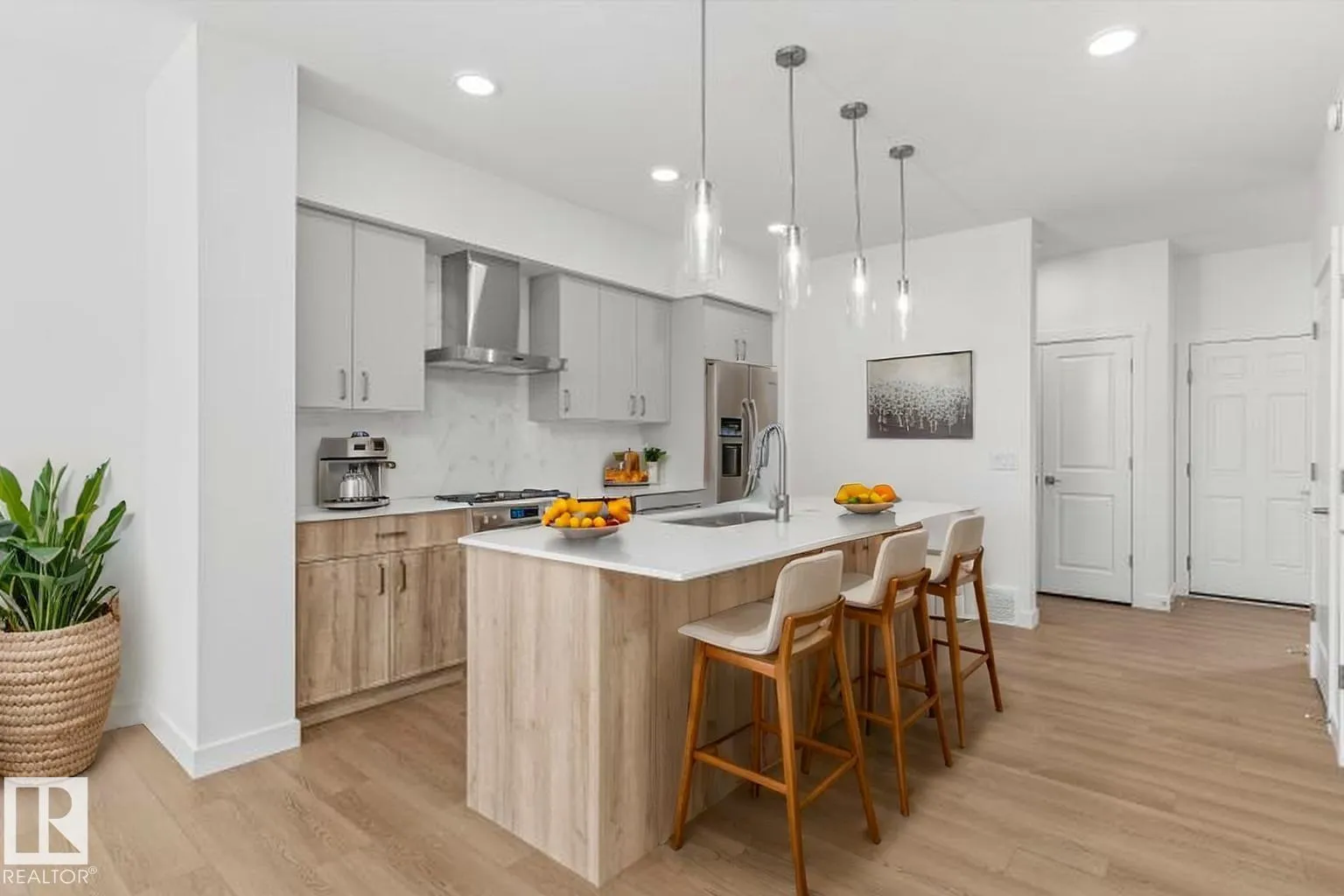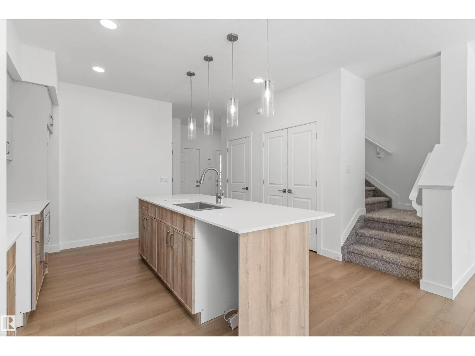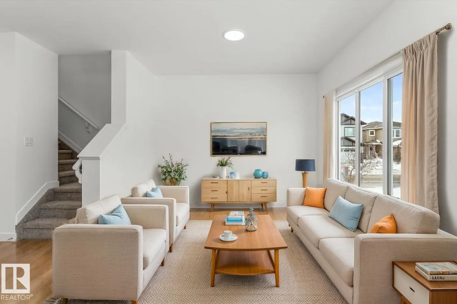 Built by Sterling Homes, this welcoming duplex in SouthCreek blends comfort, style, and everyday practicality in a peaceful Stony Plain setting. Triple pane windows and 9â ceilings enhance the bright, open main floor, where the foyer flows into a spacious living area designed for relaxed family living. The kitchen is thoughtfully finished with quartz countertops, a central island, upgraded cabinetry, chimney hood fan, built-in microwave, and full-height tile backsplashâbringing both function and modern appeal. Large rear windows and a sliding patio door fill the great room and dining area with natural light while offering views of the future backyard deck. Upstairs, the primary suite provides a private escape with a walk-in closet and ensuite featuring double sinks and a tub/shower combo. Two additional bedrooms, a full bath, upper laundry, and a versatile bonus room complete this well-designed home with space to grow. (id:27476)