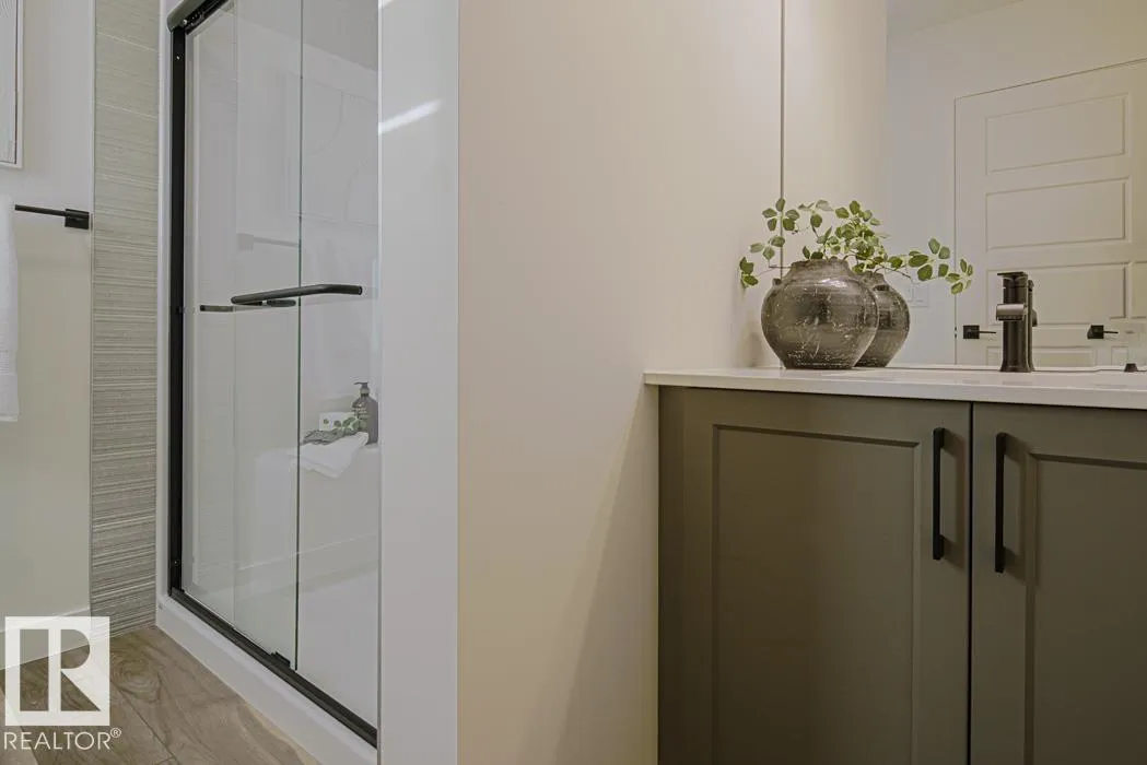Built by Sterling Homes, this bright duplex in SouthCreek blends modern comfort with the peaceful, open feel that draws people to Stony Plain. Triple pane windows and 9â ceilings create an airy main floor, while warm luxury vinyl plank flooring unifies the living spaces. The front foyer flows into a welcoming great room centered around an electric fireplaceâperfect for cozy evenings. The kitchen is thoughtfully designed with quartz countertops, upgraded cabinetry, a corner pantry, chimney hood fan, and a large island that naturally becomes the heart of gatherings. Expansive rear windows and a patio door fill the home with natural light and overlook the future deck and backyard. Upstairs, a versatile bonus room adds flexibility, while the primary suite features a walk-in closet and private ensuite. Two additional bedrooms, a full bath, upper laundry, double attached garage with drain, side entrance, and basement rough-ins complete this well-rounded home. (id:27476)