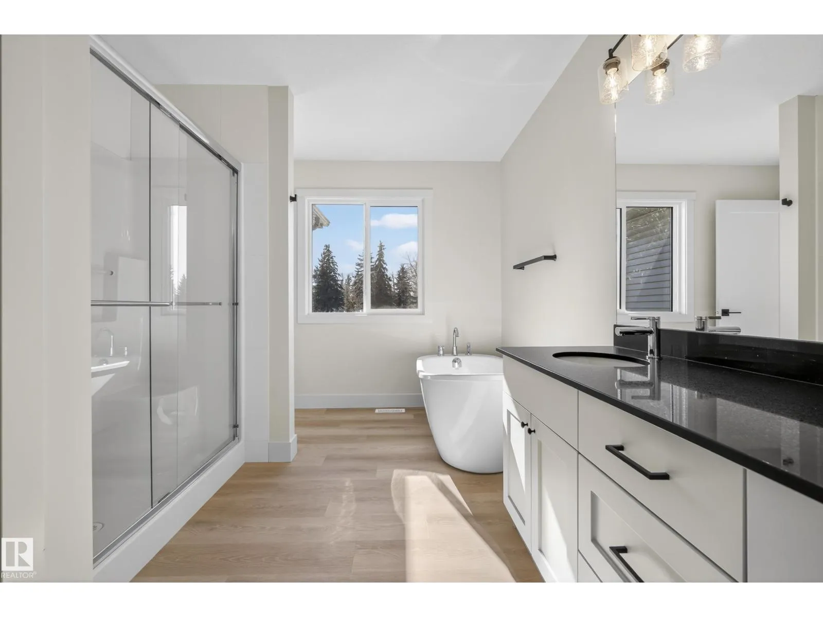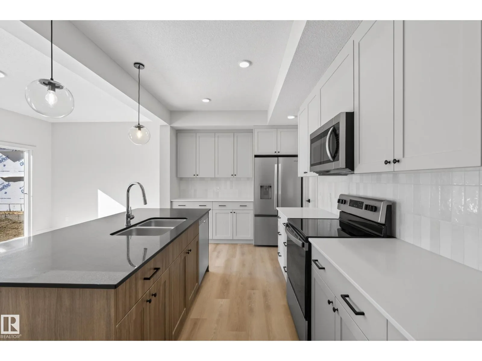 Built by ATTESA Home this beautifully designed 3-bedroom home backing directly onto the Stony Plain Golf Course in the sought-after Fairways community of Stony Plain. Offering nearly 1,900 sq. ft. of bright, open-concept living, this home features modern finishes and large windows that bring in plenty of natural light while showcasing peaceful golf course views. The main floor offers a spacious living area with a cozy fireplace, perfect for relaxing or entertaining, along with a functional layout that flows seamlessly into the dining and kitchen spaces. Upstairs, the primary suite features a spa-inspired ensuite complete with a soaker tub, glass shower, double sinks, and a walk-in closet. Two additional bedrooms and upstairs laundry provide convenience and flexibility for family living or a home office. The unfinished basement with a separate side entrance offers excellent potential for future development. A double attached garage completes this well-appointed home in a prime golf courseâbacking location. (id:27476)