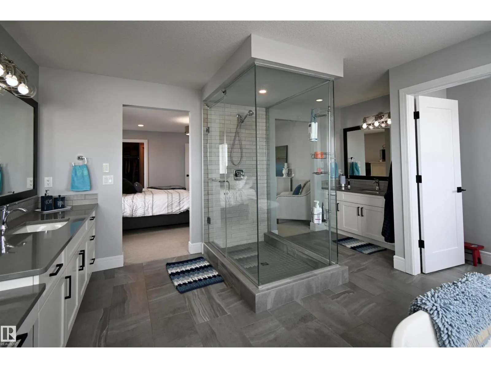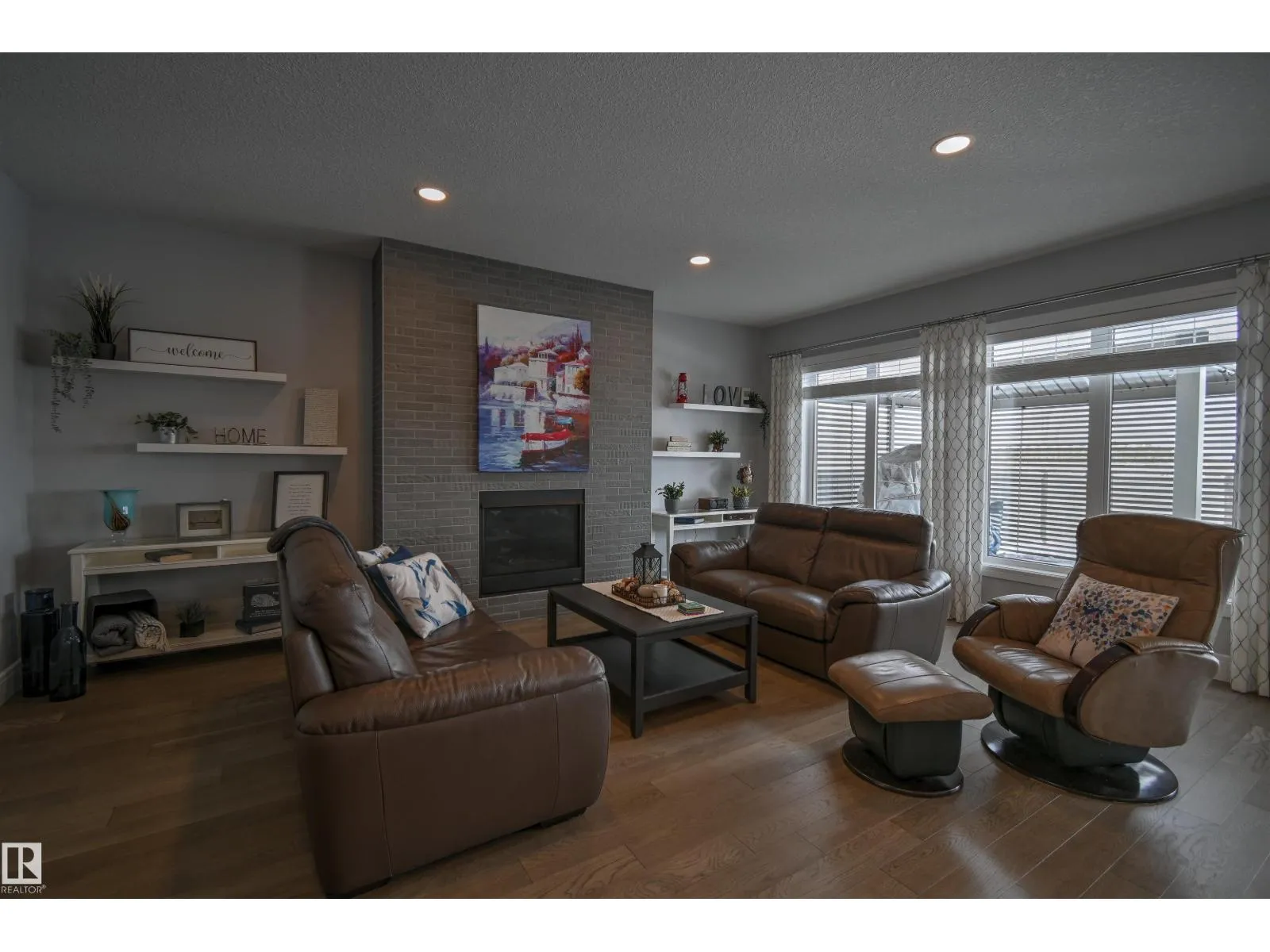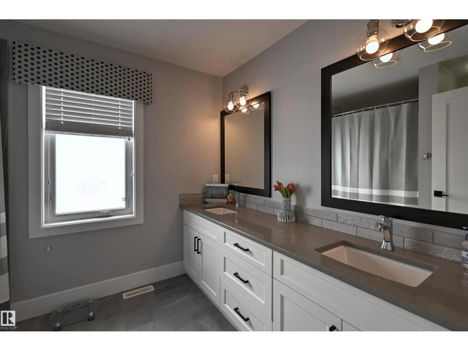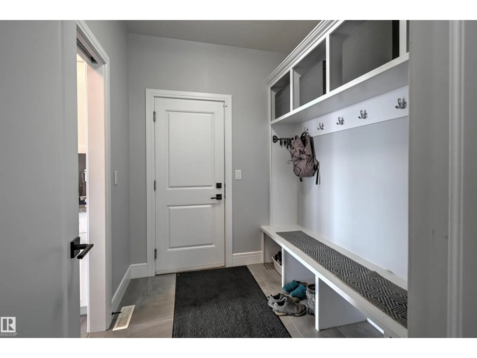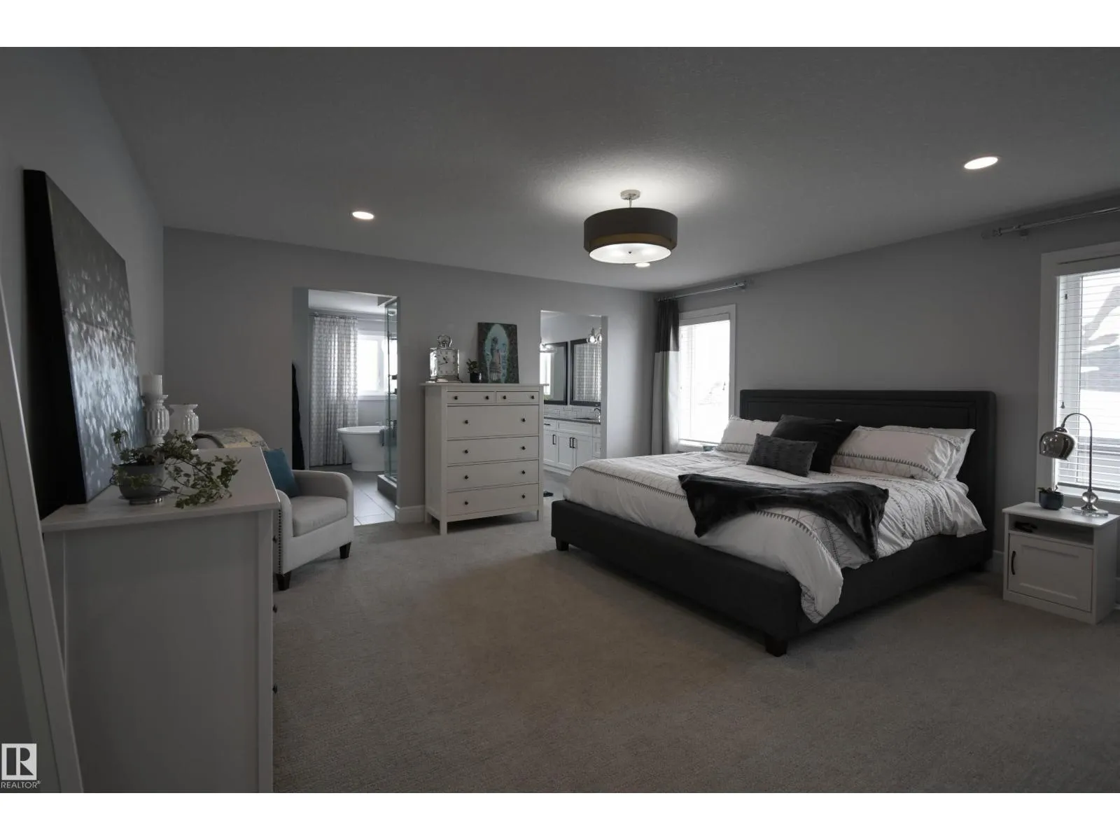 Welcome to Genesis Lake, an exceptional residence combining luxury, function and thoughtful upgrades. This home features a four-car heated garage with convenient pass-through to a private backyard, professionally landscaped beds with concrete curbing, and a composite deck with gazebo for summer entertaining. Inside, enjoy 9-foot ceilings, 8-foot doors, engineered hardwood, central A/C, and a front office overlooking the patio. The gourmet kitchen offers white cabinetry to the ceiling, a massive island, stainless hood, and chevron tile backsplash. Adjoining dining with coffered ceiling opens to a generous eating area. A walk-through pantry,with butler/coffee bar lead to a mudroom with custom shelving. A tiled dog wash with glass door and abundant storage add everyday convenience. Upstairs, a vaulted bonus room, spacious bedrooms with views, and a primary suite with laundry access and a luxurious 5-piece ensuite complete the home. The basement is fully finish & solar power and LED lighting (id:27476)